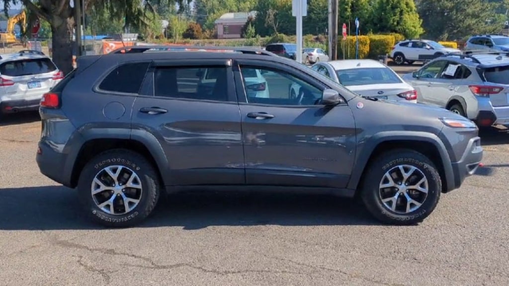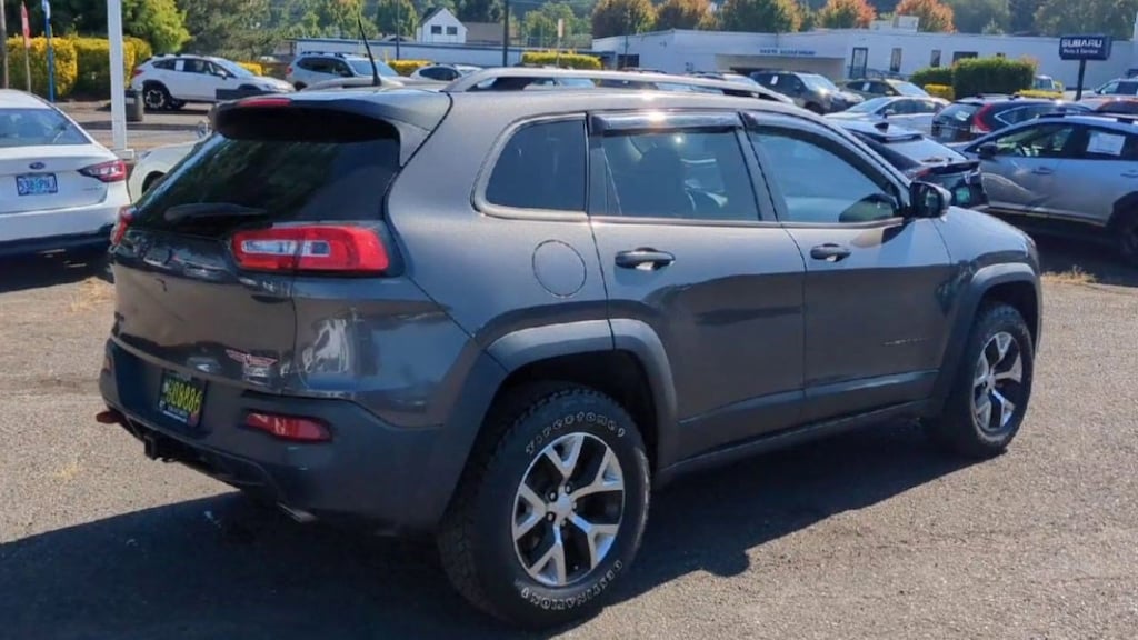 1 Year Trial (Registration Required), 17 x 7.5 Aluminum Wheels, 4-Wheel Disc Brakes, 5-Year SiriusXM Traffic Service, 5-Year SiriusXM Travel Link Service, 6 Speakers, 600 Amp Maintenance Free Battery, 8.4 Touchscreen Display, ABS brakes, Air Conditioning, Alloy wheels, AM/FM radio: SiriusXM, Anti-whiplash front head restraints, Auto-Dimming Rear-View Mirror, Automatic temperature control, Auxiliary Transmission Oil Cooler, Brake assist, Cloth/Leather/Vinyl Bucket Seats, Comfort/Convenience Group, Compass, Delay-off headlights, Driver door bin, Driver vanity mirror, Dual front impact airbags, Dual front side impact airbags, Electronic Stability Control, Emergency communication system: Uconnect Access, Engine Oil Cooler, Exterior Mirrors Courtesy Lamps, Exterior Mirrors w/Supplemental Signals, Four wheel independent suspension, Front anti-roll bar, Front Bucket Seats, Front Center Armrest, Front dual zone A/C, Front fog lights, Front License Plate Bracket, Front reading lights, Fully automatic headlights, GPS Antenna Input, GPS Navigation, HD Radio, Heated door mirrors, High intensity discharge headlights: Bi-Xenon, Illuminated entry, Integrated Voice Command w/Bluetooth, Knee airbag, Leather Shift Knob, Low tire pressure warning, Manufacturers Statement of Origin, Occupant sensing airbag, Off Road Suspension, Outside temperature display, Overhead airbag, Overhead console, Panic alarm, ParkView Rear Back-Up Camera, Passenger door bin, Passenger vanity mirror, Power door mirrors, Power driver seat, Power Liftgate, Power steering, Power windows, Quick Order Package 27E, Radio data system, Radio: Uconnect 3C Nav w/8.4 Display, Radio: Uconnect 3C w/8.4 Display, Rear anti-roll bar, Rear reading lights, Rear seat center armrest, Rear side impact airbag, Rear window defroster, Rear window wiper, Remote keyless entry, Roof rack: rails only, Security Alarm, SiriusXM Satellite Radio, SiriusXM Traffic, SiriusXM Travel Link, Speed control, Speed-sensing steering, Split folding rear seat, Spoiler, Steering wheel mounted audio controls, Tachometer, Telescoping steering wheel, Tilt steering wheel, Traction control, Trip computer, Turn signal indicator mirrors, Uconnect Access, Universal Garage Door Opener, Variably intermittent wipers, Voltmeter. Granite Crystal Metallic Clearcoat 2018 Jeep Cherokee Trailhawk 4WD 9-Speed Automatic 3.2L V6