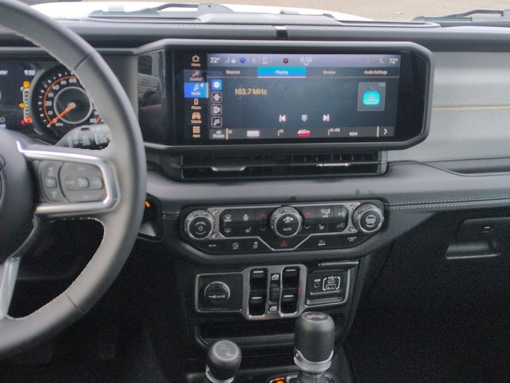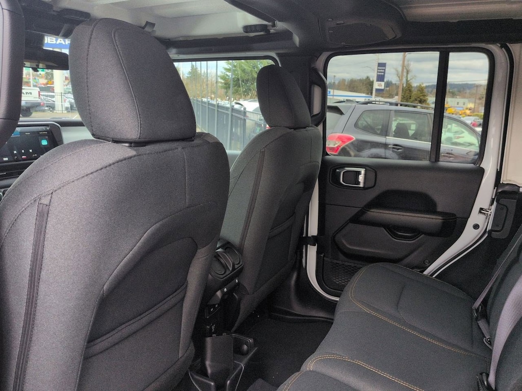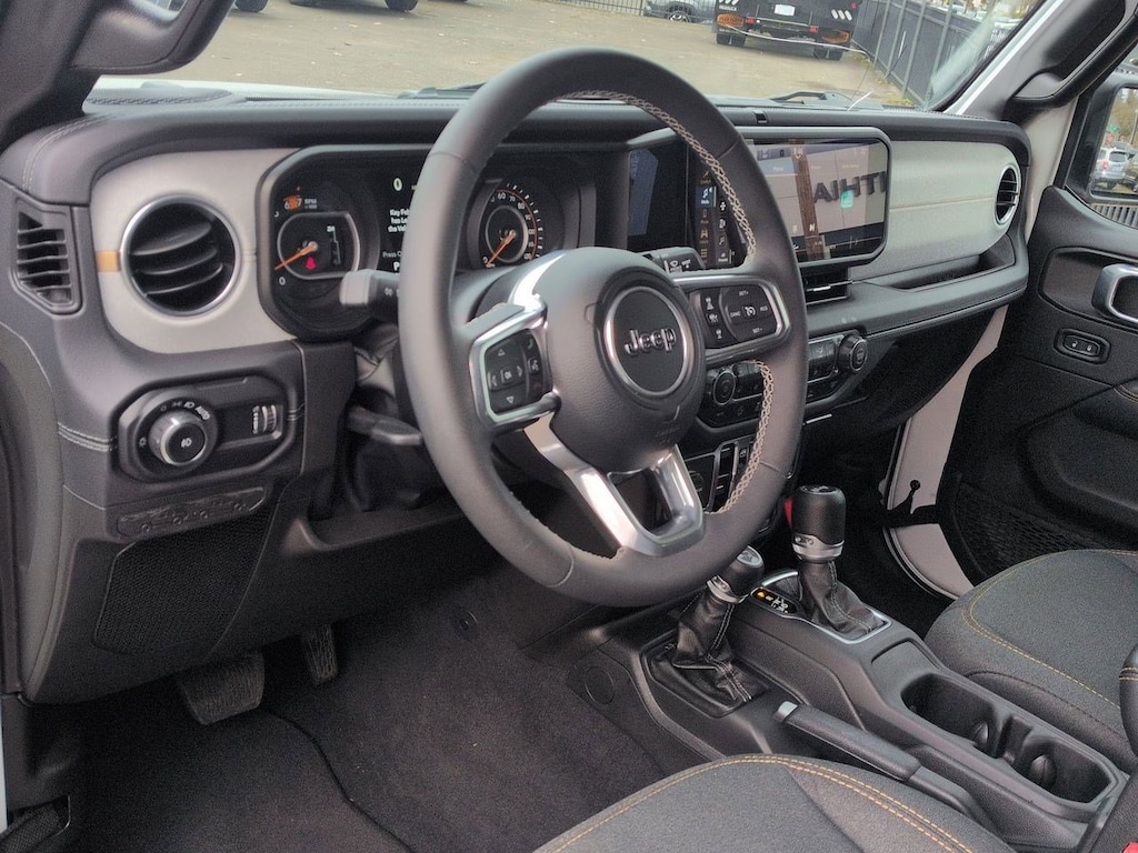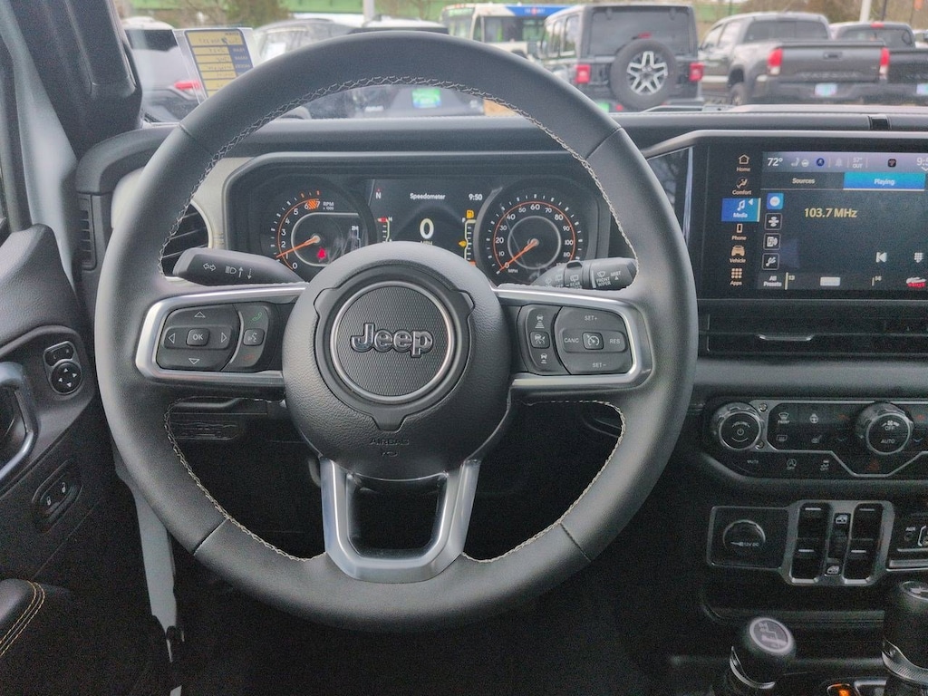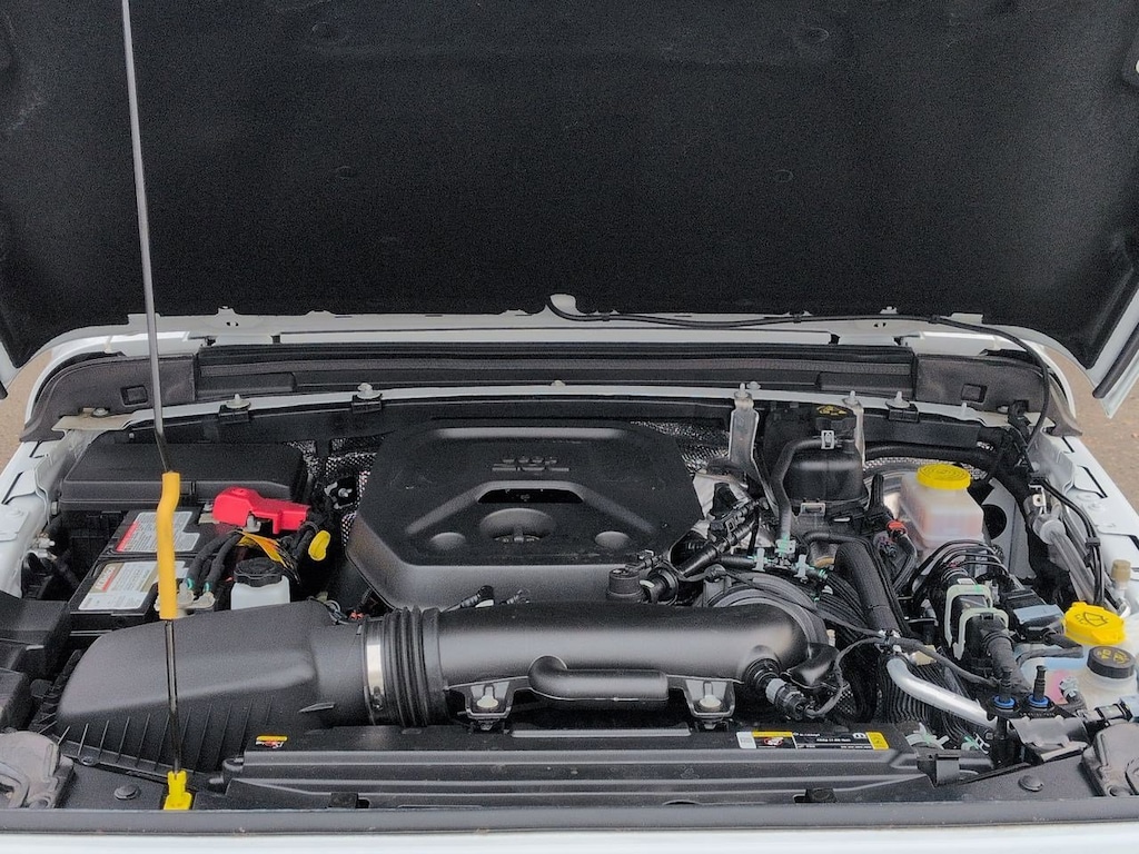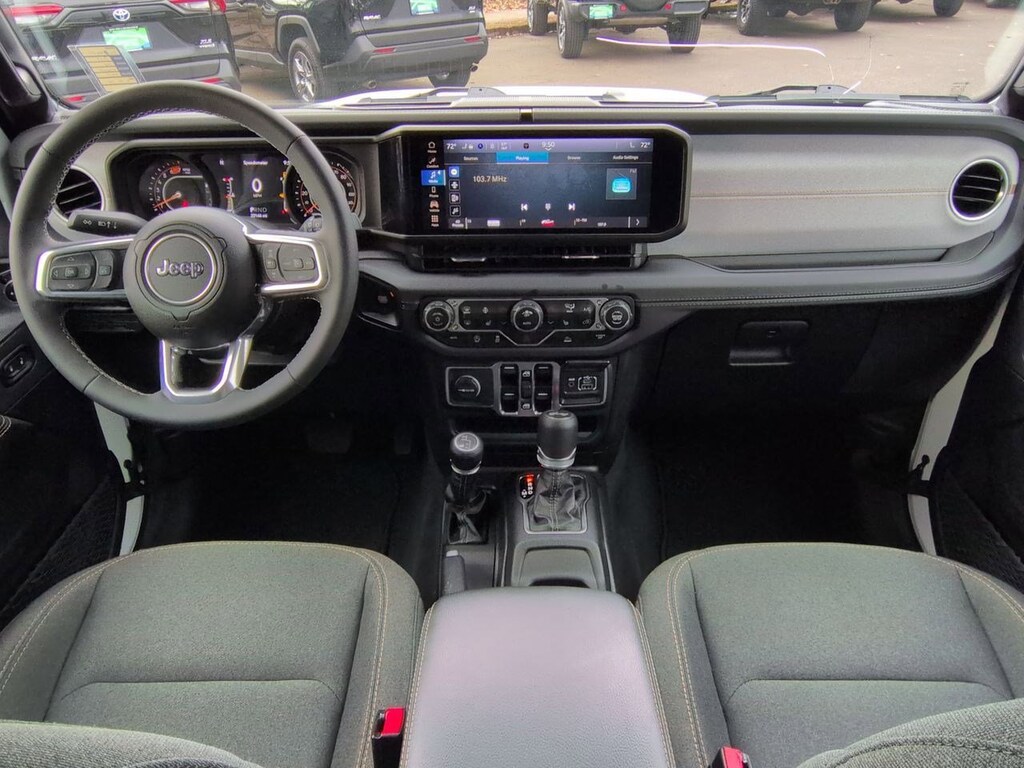 110 MPH Vehicle Max Speed Calibration, 3.45 Overall Top Gear Ratio, 4-Wheel Disc Brakes, 4G LTE Wi-Fi Hot Spot, 8 Speakers, ABS brakes, Air Conditioning, Alloy wheels, AM/FM radio: SiriusXM, Apple CarPlay, Apple CarPlay/Android Auto, Automatic temperature control, Aux Battery, Body Color 3-Piece Hard Top, Brake assist, Cloth Low-Back Bucket Seats, Compass, Connectivity - US/Canada, Delay-off headlights, Driver door bin, Driver vanity mirror, Dual front impact airbags, Dual front side impact airbags, Electronic Stability Control, Emergency communication system: Jeep Connect, Freedom Panel Storage Bag, Front anti-roll bar, Front Bucket Seats, Front Center Armrest w/Storage, Front dual zone A/C, Front fog lights, Front License Plate Bracket (DISC), Front reading lights, Fully automatic headlights, Google Android Auto, Heated door mirrors, Heated front seats, Heated steering wheel, Heavy Duty Suspension w/Gas Shocks, Illuminated entry, Integrated Center Stack Radio, Integrated roll-over protection, Low tire pressure warning, Non-Lock Fuel Cap w/o Discriminator, Occupant sensing airbag, Outside temperature display, Overhead airbag, Panic alarm, ParkView Rear Back-Up Camera, Passenger door bin, Passenger vanity mirror, Power door mirrors, Power steering, Power windows, Quick Order Package 22G Sahara, Radio data system, Radio: Uconnect 5 w/12.3 Display, Rear anti-roll bar, Rear reading lights, Rear Window Defroster, Rear Window Wiper/Washer, Remote keyless entry, Security system, Speed control, Split folding rear seat, Steering wheel mounted audio controls, Stop-Start Dual Battery System, Tachometer, Telescoping steering wheel, Tilt steering wheel, Traction control, Trip computer, Variably intermittent wipers, Voltmeter, Wheels: 18 x 7.5 Machine/Painted Gray. Bright White Clearcoat 2025 Jeep Wrangler Sahara 4WD 8-Speed Automatic 2.0L I4 DOHC