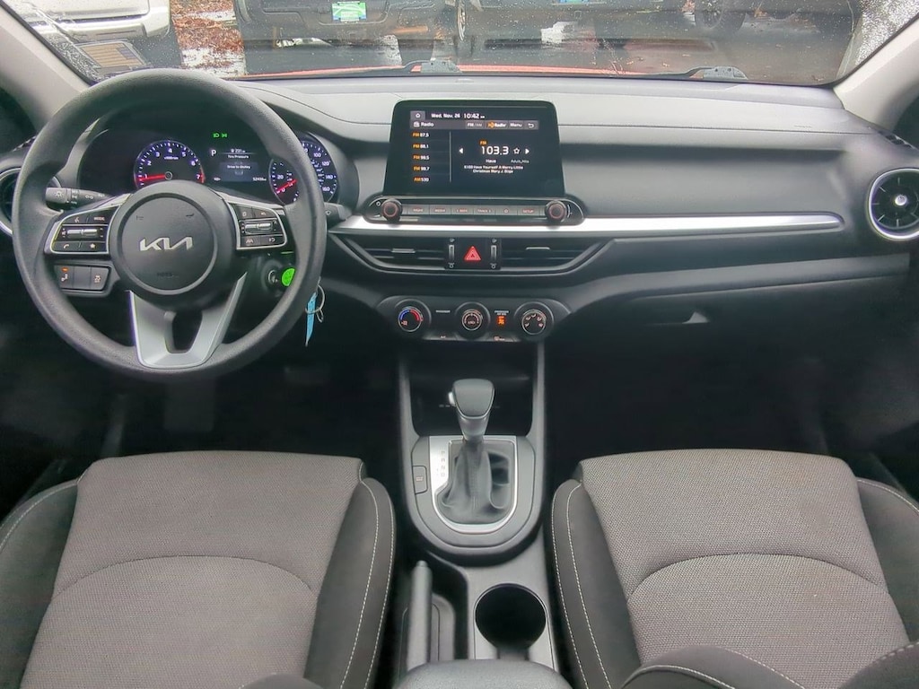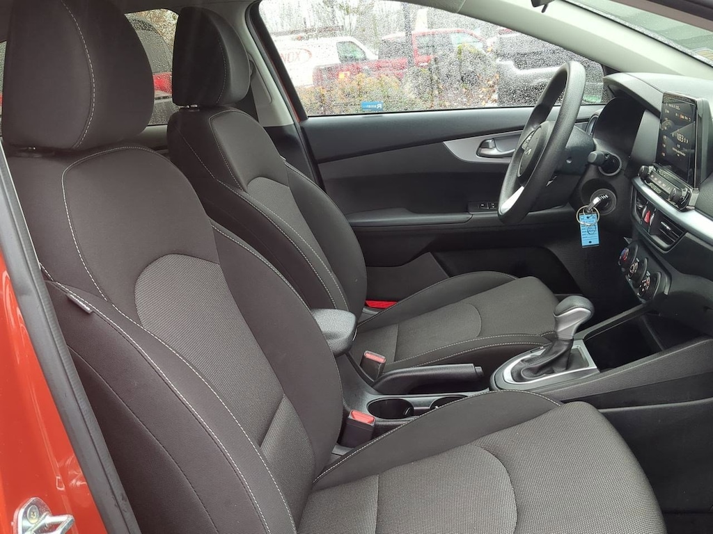 16 x 6.5J Alloy Wheels, 4 Speakers, 4-Wheel Disc Brakes, ABS brakes, Air Conditioning, Alloy wheels, AM/FM radio, Apple CarPlay & Android Auto, Auto High-beam Headlights, Blind-Spot Collision Avoidance (BCA), Brake assist, Bumpers: body-color, Cloth Seat Trim, Delay-off headlights, Driver door bin, Driver vanity mirror, Dual front impact airbags, Dual front side impact airbags, Electronic Stability Control, Exterior Parking Camera Rear, Front anti-roll bar, Front Bucket Seats, Front Center Armrest, Front reading lights, Front wheel independent suspension, Fully automatic headlights, Heated Outside Mirrors, Illuminated entry, LED Turn Signal w/Outside Mirror Indicators, Low tire pressure warning, LXS Technology Package, Occupant sensing airbag, Outside temperature display, Overhead airbag, Overhead console, Panic alarm, Passenger door bin, Passenger vanity mirror, Power door mirrors, Power steering, Power windows, Radio data system, Radio: 8 Display Audio, Rear Cross-Traffic Collision Avoidance (RCCA), Rear window defroster, Remote keyless entry, Safe Exit Warning (SEW), Security system, Speed control, Split folding rear seat, Steering wheel mounted audio controls, Tachometer, Telescoping steering wheel, Tilt steering wheel, Traction control, Trip computer, Variably intermittent wipers. Fire Orange 2023 Kia Forte LXS FWD CVT 2.0L I4 MPI