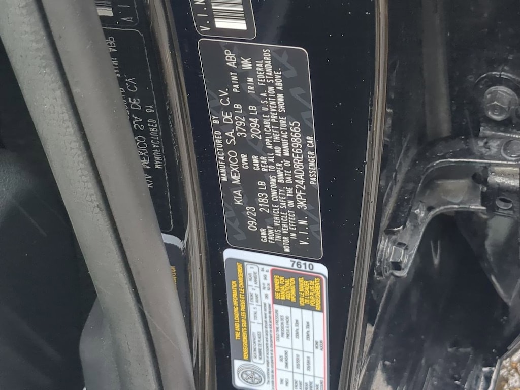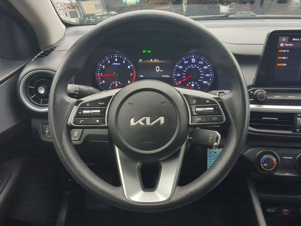 16 x 6.5J Alloy Wheels, 4 Speakers, 4-Wheel Disc Brakes, ABS brakes, Air Conditioning, Alloy wheels, AM/FM radio, Apple CarPlay & Android Auto, Auto High-beam Headlights, Brake assist, Bumpers: body-color, Cloth Seat Trim, Delay-off headlights, Driver door bin, Driver vanity mirror, Dual front impact airbags, Dual front side impact airbags, Electronic Stability Control, Exterior Parking Camera Rear, Front anti-roll bar, Front Bucket Seats, Front Center Armrest, Front reading lights, Front wheel independent suspension, Fully automatic headlights, Illuminated entry, Low tire pressure warning, Occupant sensing airbag, Outside temperature display, Overhead airbag, Overhead console, Panic alarm, Passenger door bin, Passenger vanity mirror, Power door mirrors, Power steering, Power windows, Radio data system, Radio: 8 Display Audio, Rear window defroster, Remote keyless entry, Security system, Speed control, Split folding rear seat, Steering wheel mounted audio controls, Tachometer, Telescoping steering wheel, Tilt steering wheel, Traction control, Trip computer, Variably intermittent wipers. Aurora Black Pearl 2024 Kia Forte LXS FWD CVT 2.0L I4 MPI