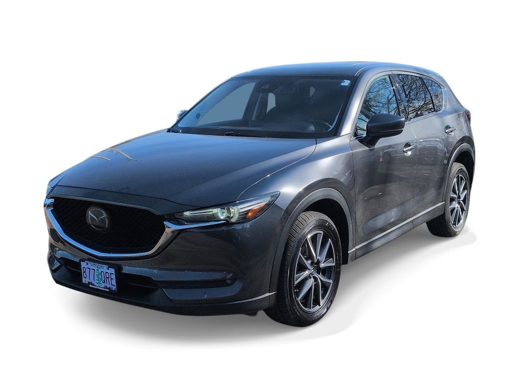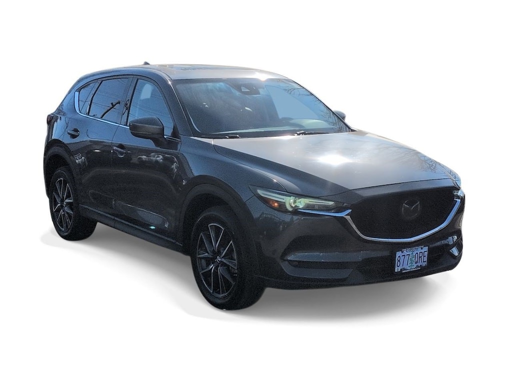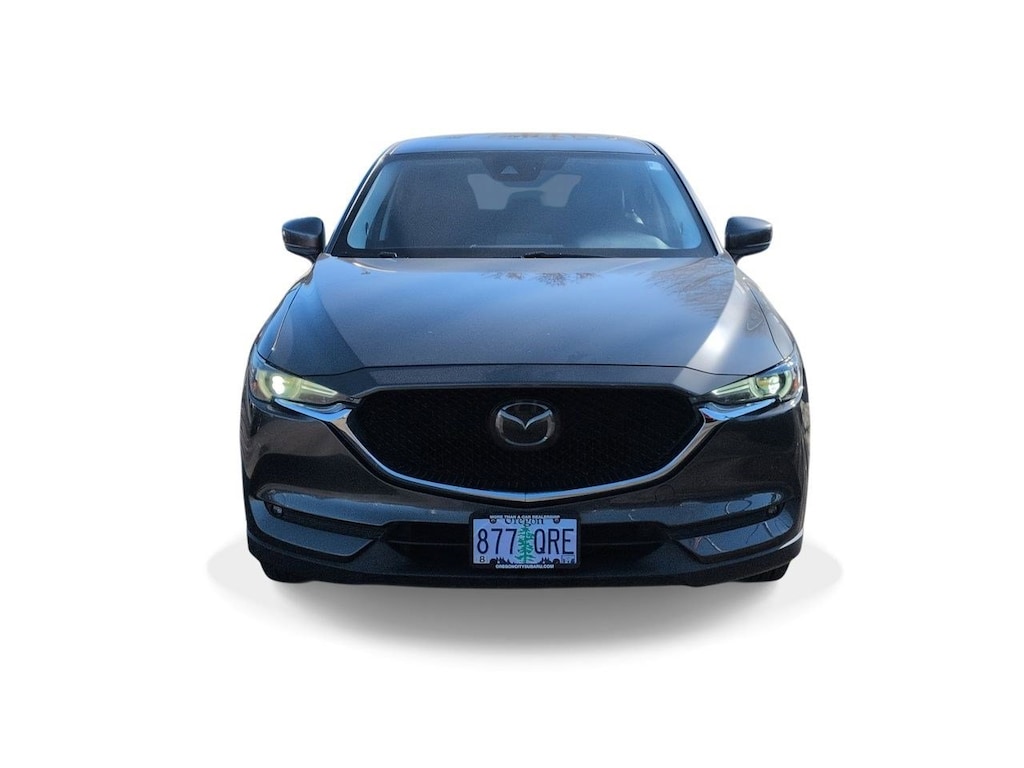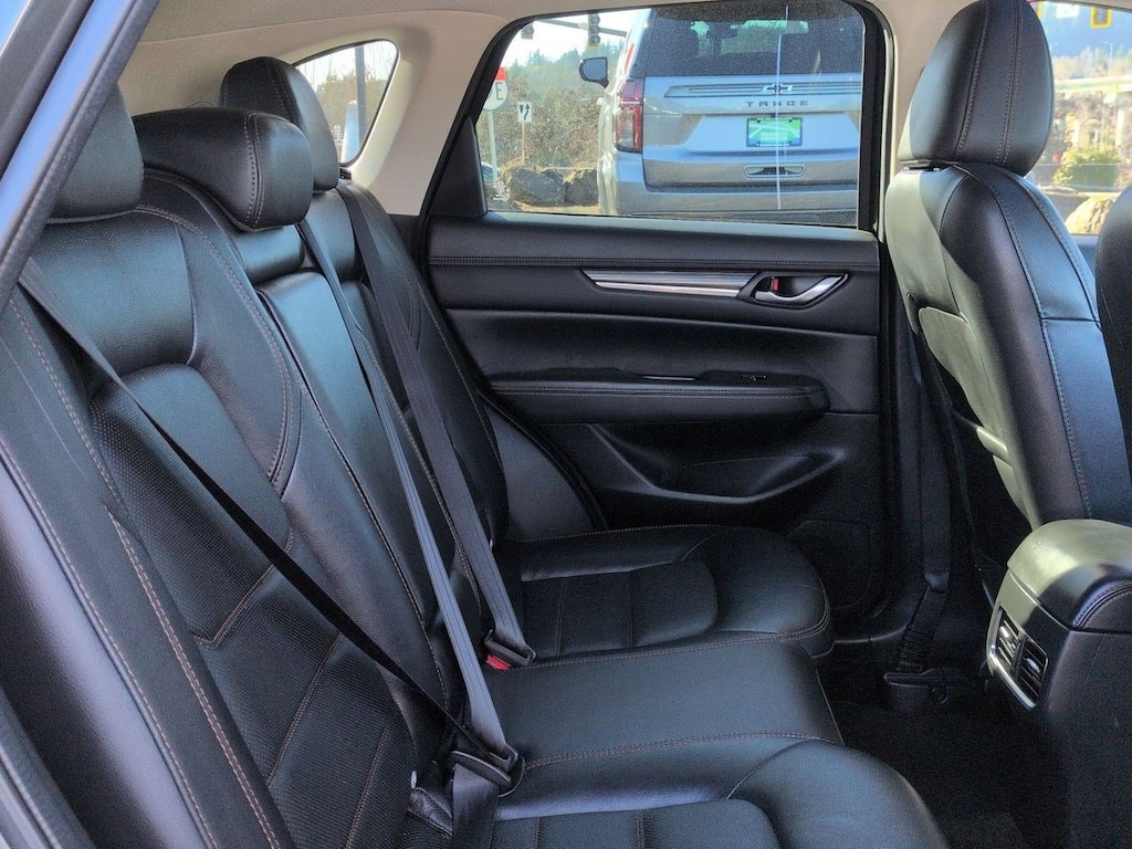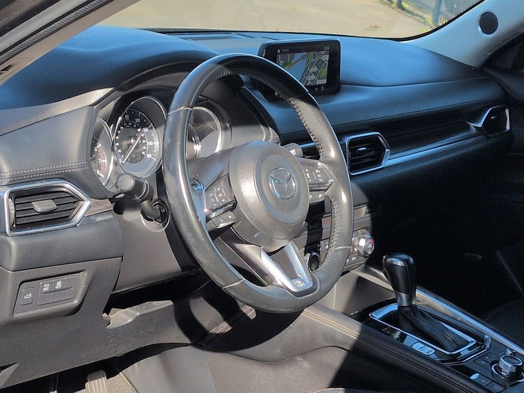 10 Speakers, 19 x 7J Aluminum Alloy Wheels, 4-Wheel Disc Brakes, 4.624 Axle Ratio, ABS brakes, Air Conditioning, Alloy wheels, AM/FM radio: SiriusXM, Auto High-beam Headlights, Auto-dimming Rear-View mirror, Automatic temperature control, Bose 10-Speaker Audio Sound System, Brake assist, Bumpers: body-color, Delay-off headlights, Driver door bin, Driver vanity mirror, Dual front impact airbags, Dual front side impact airbags, Electronic Stability Control, Emergency communication system, Exterior Parking Camera Rear, Four wheel independent suspension, Front anti-roll bar, Front Bucket Seats, Front Center Armrest, Front dual zone A/C, Front fog lights, Front reading lights, Fully automatic headlights, Garage door transmitter: HomeLink, Heated door mirrors, Heated front seats, Heated Front Sport Shape Seats, Illuminated entry, Leather Seat Trim, Leather Shift Knob, Low tire pressure warning, Machine Gray Metallic Paint, Mazda Navigation System, Memory seat, Navigation System, Occupant sensing airbag, Outside temperature display, Overhead airbag, Overhead console, Panic alarm, Passenger door bin, Passenger vanity mirror, Power door mirrors, Power driver seat, Power Liftgate, Power moonroof, Power passenger seat, Power steering, Power windows, Radio data system, Radio: AM/FM/HD Audio System, Rain sensing wipers, Rear anti-roll bar, Rear reading lights, Rear seat center armrest, Rear window defroster, Rear window wiper, Remote keyless entry, Speed control, Speed-sensing steering, Split folding rear seat, Spoiler, Steering wheel mounted audio controls, Tachometer, Telescoping steering wheel, Tilt steering wheel, Traction control, Trip computer, Turn signal indicator mirrors, Variably intermittent wipers. Machine Gray Metallic 2018 Mazda CX-5 Grand Touring AWD 6-Speed Automatic SKYACTIVî 2.5L 4-Cylinder DOHC 16V