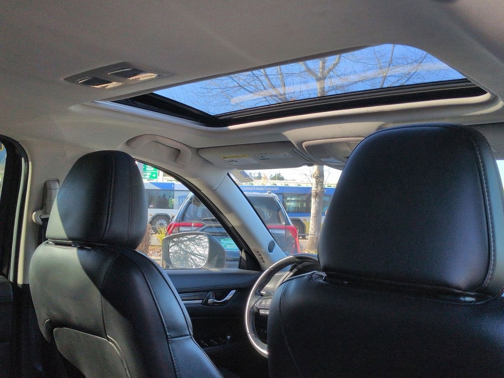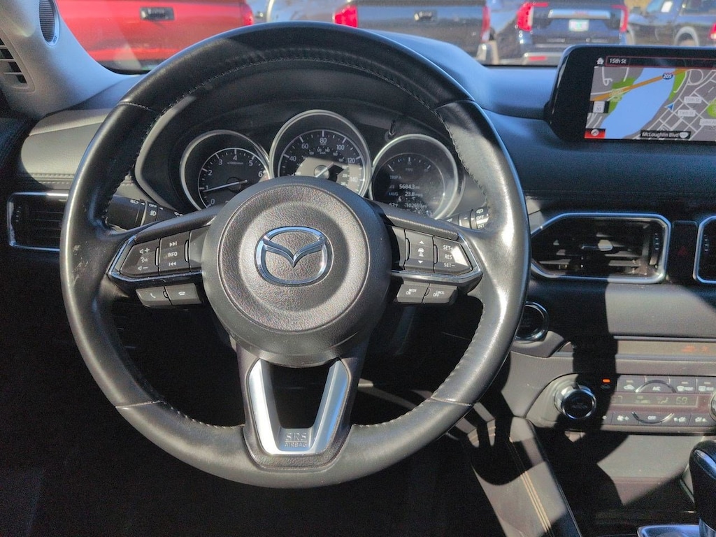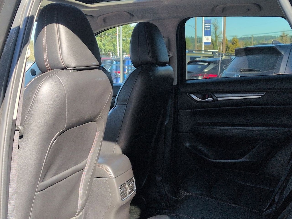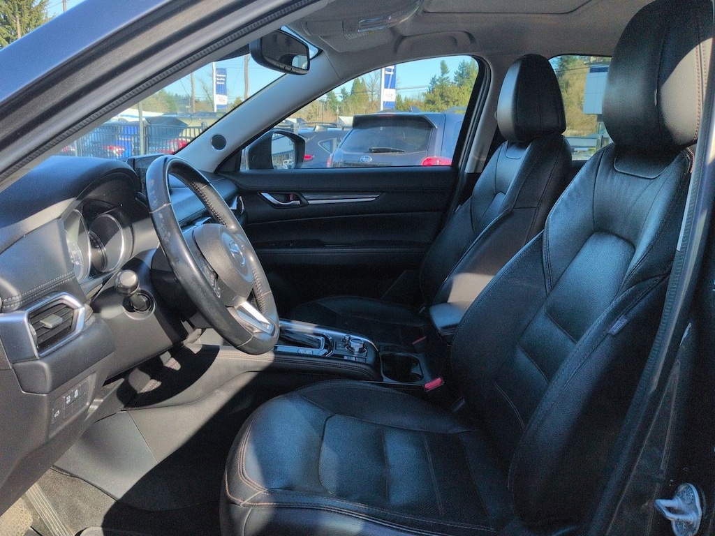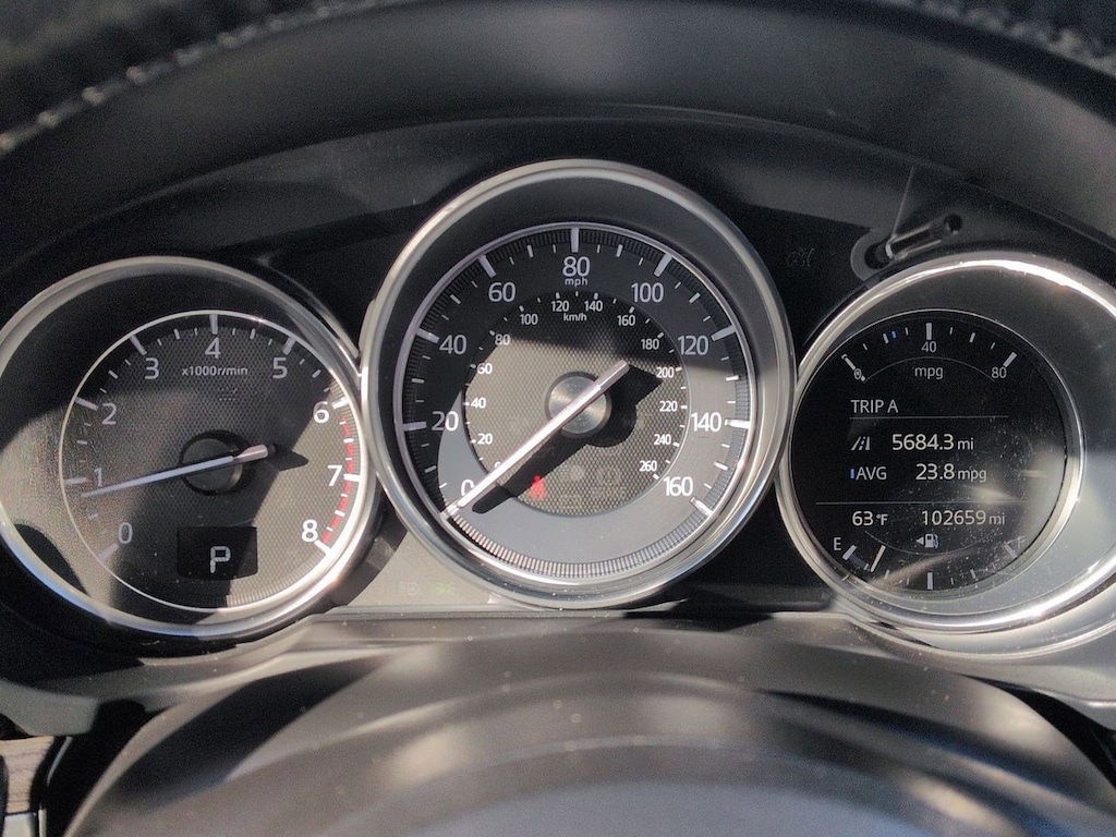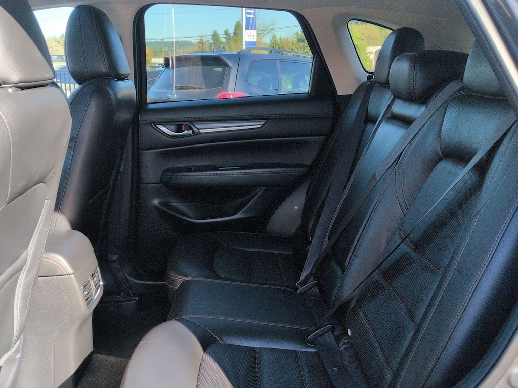 10 Speakers, 19 x 7J Aluminum Alloy Wheels, 4-Wheel Disc Brakes, 4.624 Axle Ratio, ABS brakes, Air Conditioning, Alloy wheels, AM/FM radio: SiriusXM, Auto High-beam Headlights, Auto-dimming Rear-View mirror, Automatic temperature control, Bose 10-Speaker Audio Sound System, Brake assist, Bumpers: body-color, Delay-off headlights, Driver door bin, Driver vanity mirror, Dual front impact airbags, Dual front side impact airbags, Electronic Stability Control, Emergency communication system, Exterior Parking Camera Rear, Four wheel independent suspension, Front anti-roll bar, Front Bucket Seats, Front Center Armrest, Front dual zone A/C, Front fog lights, Front reading lights, Fully automatic headlights, Garage door transmitter: HomeLink, Heated door mirrors, Heated front seats, Heated Front Sport Shape Seats, Illuminated entry, Leather Seat Trim, Leather Shift Knob, Low tire pressure warning, Machine Gray Metallic Paint, Mazda Navigation System, Memory seat, Navigation System, Occupant sensing airbag, Outside temperature display, Overhead airbag, Overhead console, Panic alarm, Passenger door bin, Passenger vanity mirror, Power door mirrors, Power driver seat, Power Liftgate, Power moonroof, Power passenger seat, Power steering, Power windows, Radio data system, Radio: AM/FM/HD Audio System, Rain sensing wipers, Rear anti-roll bar, Rear reading lights, Rear seat center armrest, Rear window defroster, Rear window wiper, Remote keyless entry, Speed control, Speed-sensing steering, Split folding rear seat, Spoiler, Steering wheel mounted audio controls, Tachometer, Telescoping steering wheel, Tilt steering wheel, Traction control, Trip computer, Turn signal indicator mirrors, Variably intermittent wipers. Machine Gray Metallic 2018 Mazda CX-5 Grand Touring AWD 6-Speed Automatic SKYACTIVî 2.5L 4-Cylinder DOHC 16V