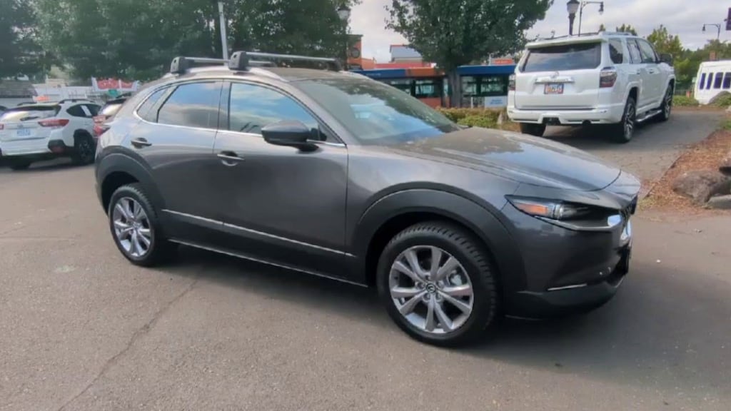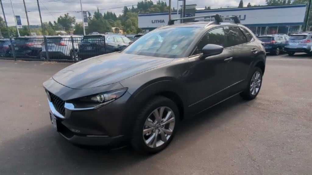 12 Speakers, 18 x 7J Alloy Wheels, 3.850 Axle Ratio, 4-Wheel Disc Brakes, ABS brakes, Air Conditioning, Alloy wheels, AM/FM radio: SiriusXM, AppLink/Apple CarPlay and Android Auto, Auto High-beam Headlights, Automatic temperature control, Brake assist, Bumpers: body-color, Compass, Delay-off headlights, Driver door bin, Driver vanity mirror, Dual front impact airbags, Dual front side impact airbags, Electronic Stability Control, Emergency communication system: MAZDA CONNECT, Exterior Parking Camera Rear, Front anti-roll bar, Front Bucket Seats, Front Center Armrest, Front dual zone A/C, Front reading lights, Front wheel independent suspension, Fully automatic headlights, Heads-Up Display, Heated Front Bucket Seats, Heated front seats, Illuminated entry, Knee airbag, Leather Seat Trim, Leather Shift Knob, Leather steering wheel, Low tire pressure warning, Machine Gray Metallic Paint, MAZDA CONNECT Infotainment System Voice Command, Memory seat, Navigation System, Occupant sensing airbag, Outside temperature display, Overhead airbag, Overhead console, Panic alarm, Passenger door bin, Passenger vanity mirror, Power door mirrors, Power driver seat, Power Liftgate, Power moonroof, Power steering, Power windows, Premium Package, Radio data system, Radio: AM/FM Audio System w/Mazda Navigation, Rain sensing wipers, Rear seat center armrest, Rear window defroster, Rear window wiper, Remote keyless entry, Roof rack: rails only, Speed control, Speed-sensing steering, Split folding rear seat, Spoiler, Steering wheel mounted audio controls, Tachometer, Telescoping steering wheel, Tilt steering wheel, Traction control, Trip computer, Turn signal indicator mirrors, Variably intermittent wipers. Machine Gray Metallic 2021 Mazda CX-30 Premium AWD 6-Speed Automatic I4