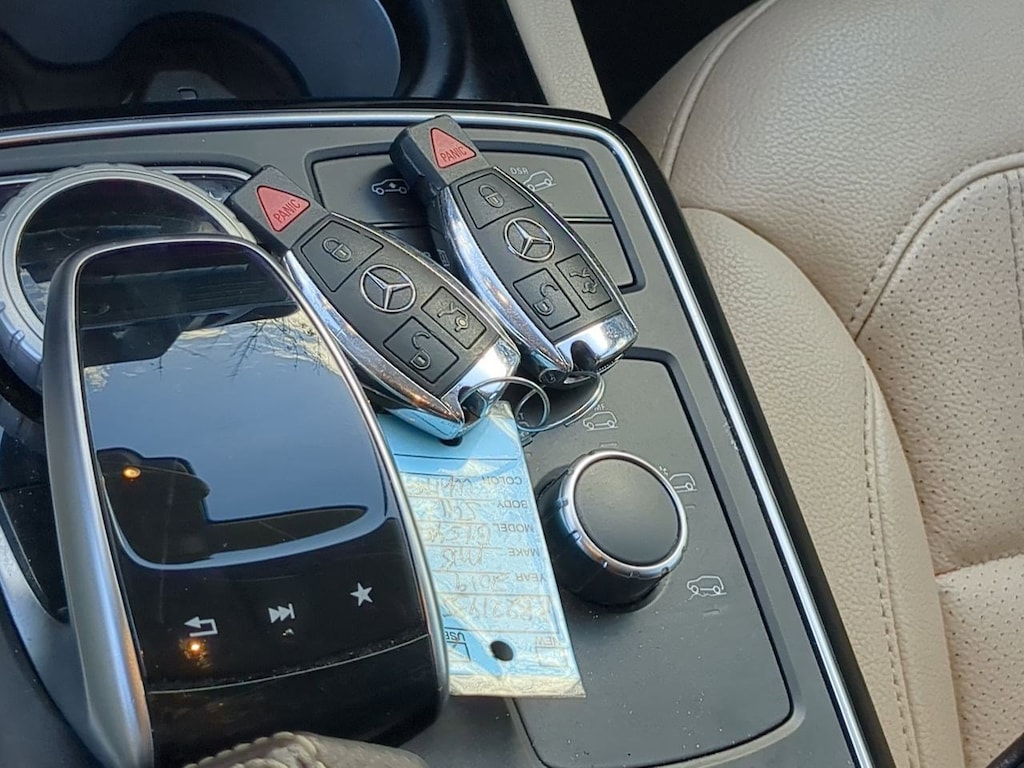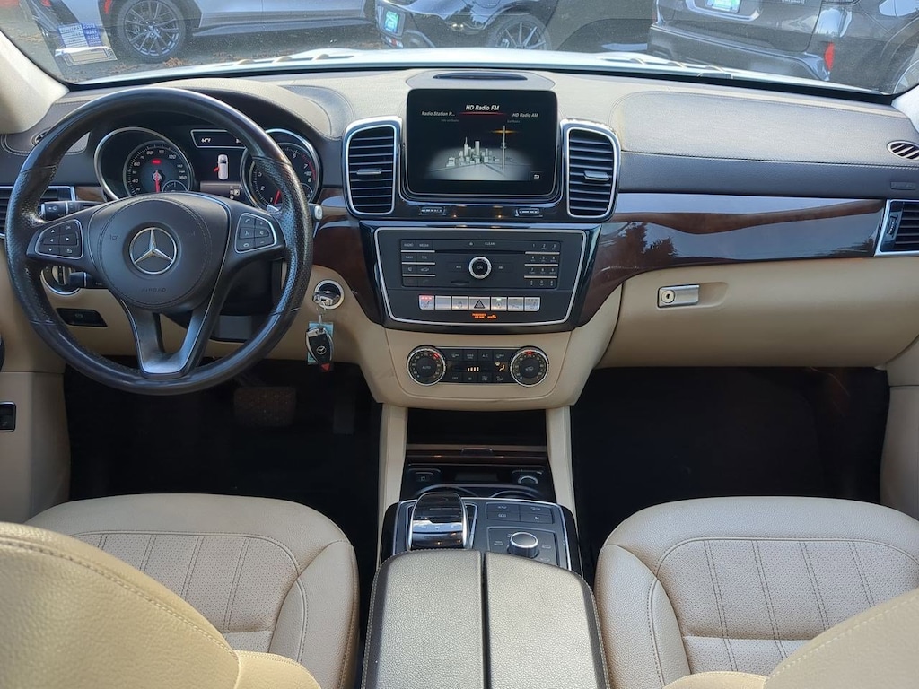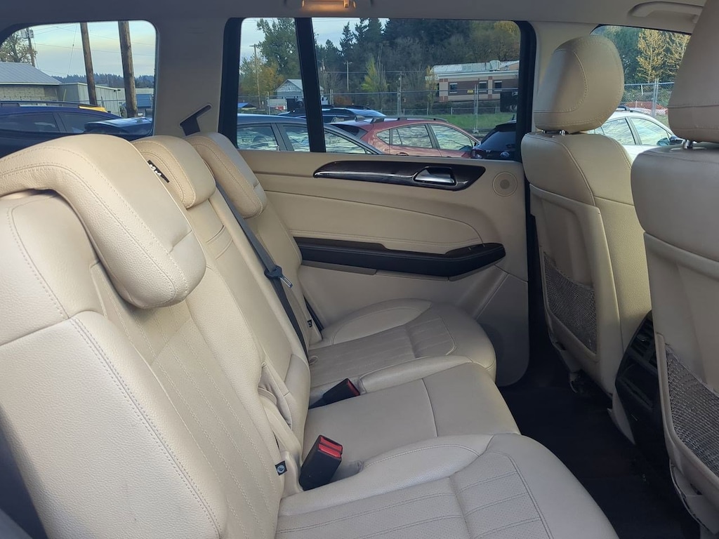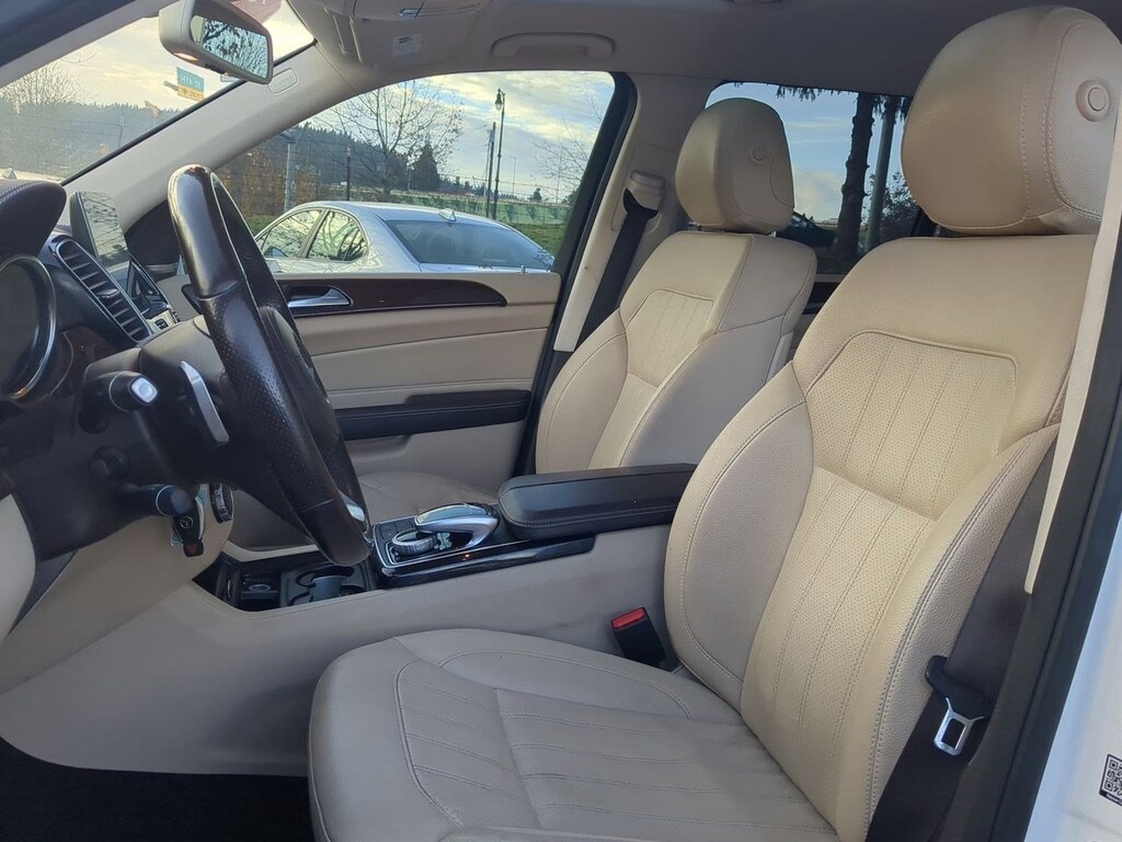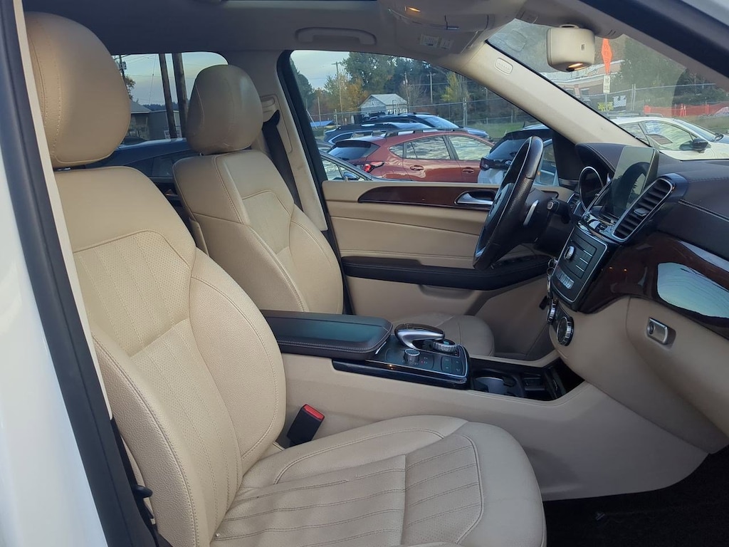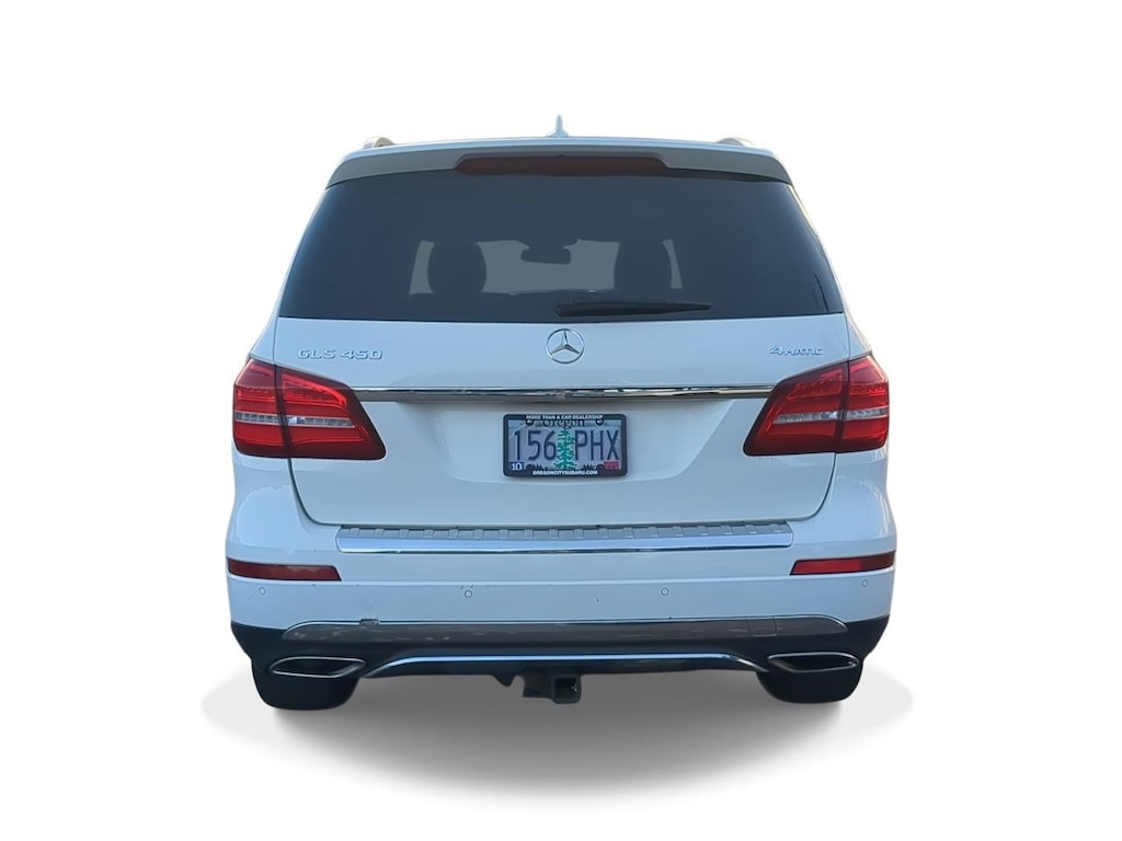 19 5-Spoke Wheels, 3.27 Axle Ratio, 3rd row seats: split-bench, 4-Way Driver Lumbar Support, 4-Wheel Disc Brakes, 8 Speakers, 8-Way Power Front Seats, 8 Color Display Upgrade, ABS brakes, Air Conditioning, Alloy wheels, AM/FM radio, AM/FM/CD Radio, Anti-whiplash front head restraints, Auto tilt-away steering wheel, Auto-dimming door mirrors, Auto-dimming Rear-View mirror, Auto-leveling suspension, Automatic temperature control, Bodyside moldings, Brake assist, Bumpers: body-color, CD player, Child-Seat-Sensing Airbag, Compass, Delay-off headlights, Driver door bin, Driver vanity mirror, Dual front impact airbags, Dual front side impact airbags, DVD-Audio, Electronic Stability Control, Emergency communication system: Mercedes me connect, Eucalyptus Wood Trim, Exterior Parking Camera Rear, Four wheel independent suspension, Front anti-roll bar, Front Bucket Seats, Front Center Armrest w/Storage, Front dual zone A/C, Front reading lights, Fully automatic headlights, Garage door transmitter: Homelink, Genuine wood console insert, Genuine wood dashboard insert, Genuine wood door panel insert, Heated door mirrors, Heated Front Seats, Heated front seats, Illuminated entry, Knee airbag, Leather steering wheel, Low tire pressure warning, MB-Tex Upholstery, Memory seat, Occupant sensing airbag, Outside temperature display, Overhead airbag, Overhead console, Panic alarm, Passenger door bin, Passenger vanity mirror, Power adjustable front head restraints, Power door mirrors, Power driver seat, Power Front Seats w/Driver Memory, Power Liftgate, Power moonroof, Power passenger seat, Power steering, Power windows, Premium audio system: COMANDî, Rain sensing wipers, Rear anti-roll bar, Rear fog lights, Rear reading lights, Rear seat center armrest, Rear window defroster, Rear window wiper, Remote keyless entry, Roof rack: rails only, Security system, Single CD Player, Speed control, Speed-sensing steering, Speed-Sensitive Wipers, Split folding rear seat, Spoiler, Steering wheel memory, Steering wheel mounted audio controls, Tachometer, Telescoping steering wheel, Tilt steering wheel, Traction control, Trip computer, Turn signal indicator mirrors, Variably intermittent wipers, Weather band radio. White 2019 Mercedes-Benz GLS GLS 450 4MATICî 4MATICî 9-Speed Automatic V6