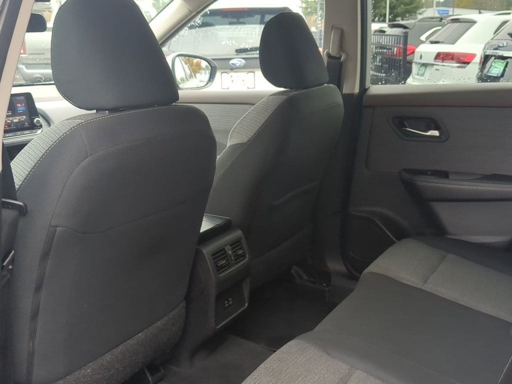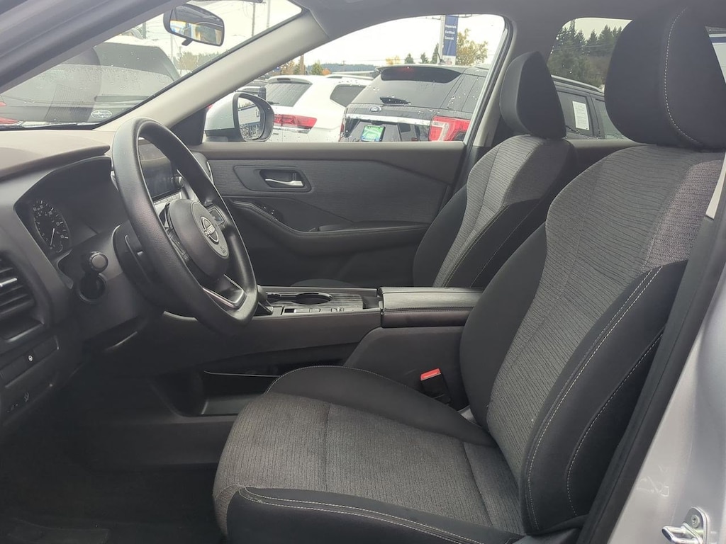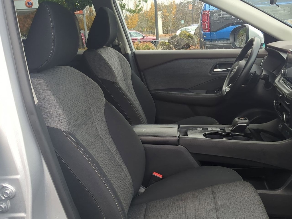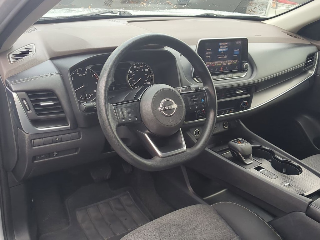 18 Aluminum Alloy Wheels, 4-Wheel Disc Brakes, 5.604 Axle Ratio, 6 Speakers, ABS brakes, Air Conditioning, Alloy wheels, AM/FM Radio, AM/FM radio: SiriusXM, Auto High-beam Headlights, Automatic temperature control, Brake assist, Bumpers: body-color, Cloth Seat Trim, Delay-off headlights, Driver door bin, Driver vanity mirror, Dual front impact airbags, Dual front side impact airbags, Electronic Stability Control, Emergency communication system: NissanConnect Services, Floor Mats w/1-Piece Cargo Area Protector, Four wheel independent suspension, Front anti-roll bar, Front Bucket Seats, Front Center Armrest, Front dual zone A/C, Front reading lights, Fully automatic headlights, Heated door mirrors, Illuminated entry, Knee airbag, Low tire pressure warning, NissanConnect featuring Apple CarPlay and Android Auto, Occupant sensing airbag, Outside temperature display, Overhead airbag, Overhead console, Panic alarm, Passenger door bin, Passenger vanity mirror, Power door mirrors, Power driver seat, Power steering, Power windows, Radio data system, Rear anti-roll bar, Rear Parking Sensors, Rear seat center armrest, Rear side impact airbag, Rear window defroster, Rear window wiper, Remote keyless entry, Speed control, Speed-Sensitive Wipers, Split folding rear seat, Spoiler, Steering wheel mounted audio controls, Tachometer, Telescoping steering wheel, Tilt steering wheel, Traction control, Trip computer, Variably intermittent wipers. Brilliant Silver Metallic 2023 Nissan Rogue SV FWD CVT with Xtronic 1.5L I3 Turbocharged DOHC 12V LEV3-ULEV50 201hp