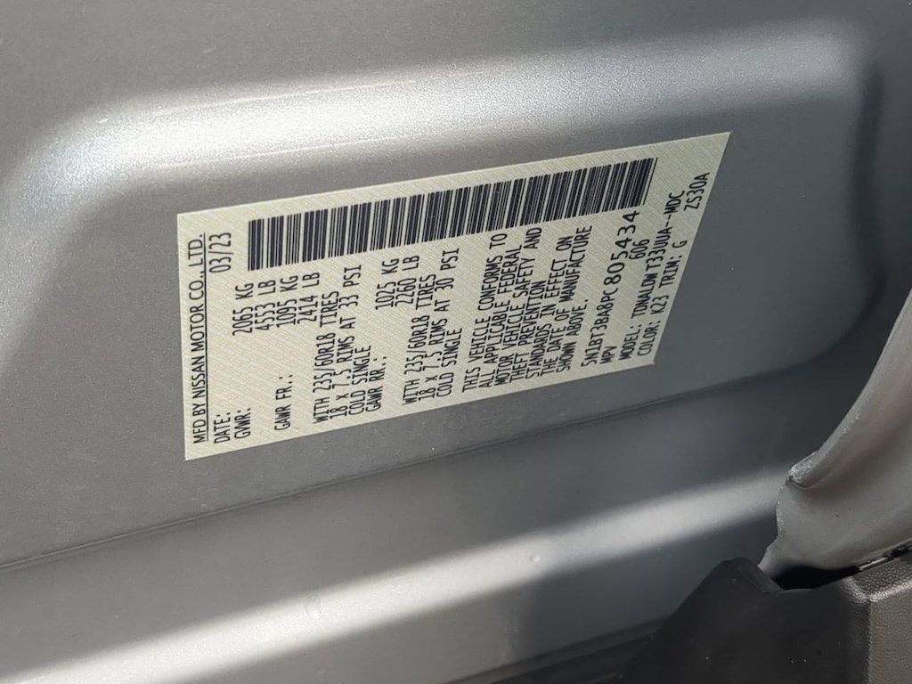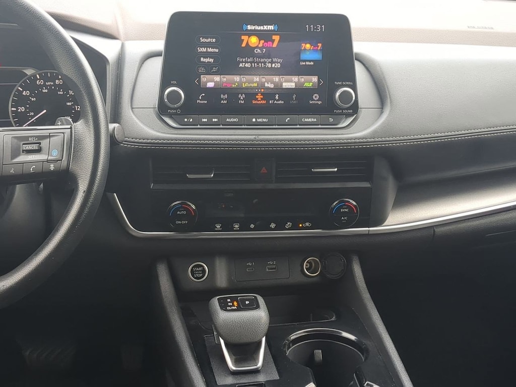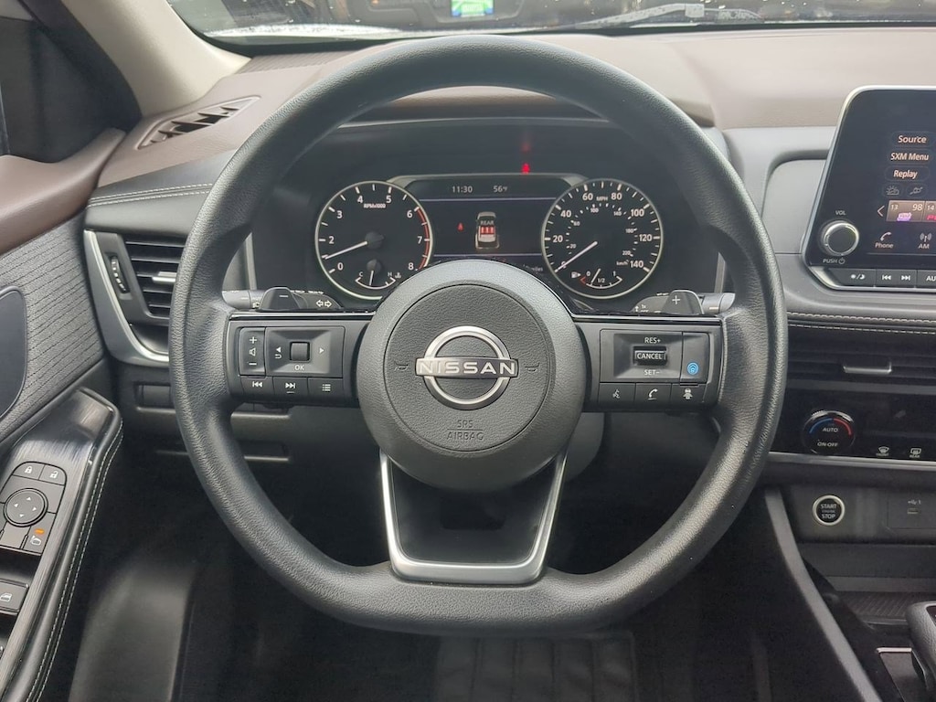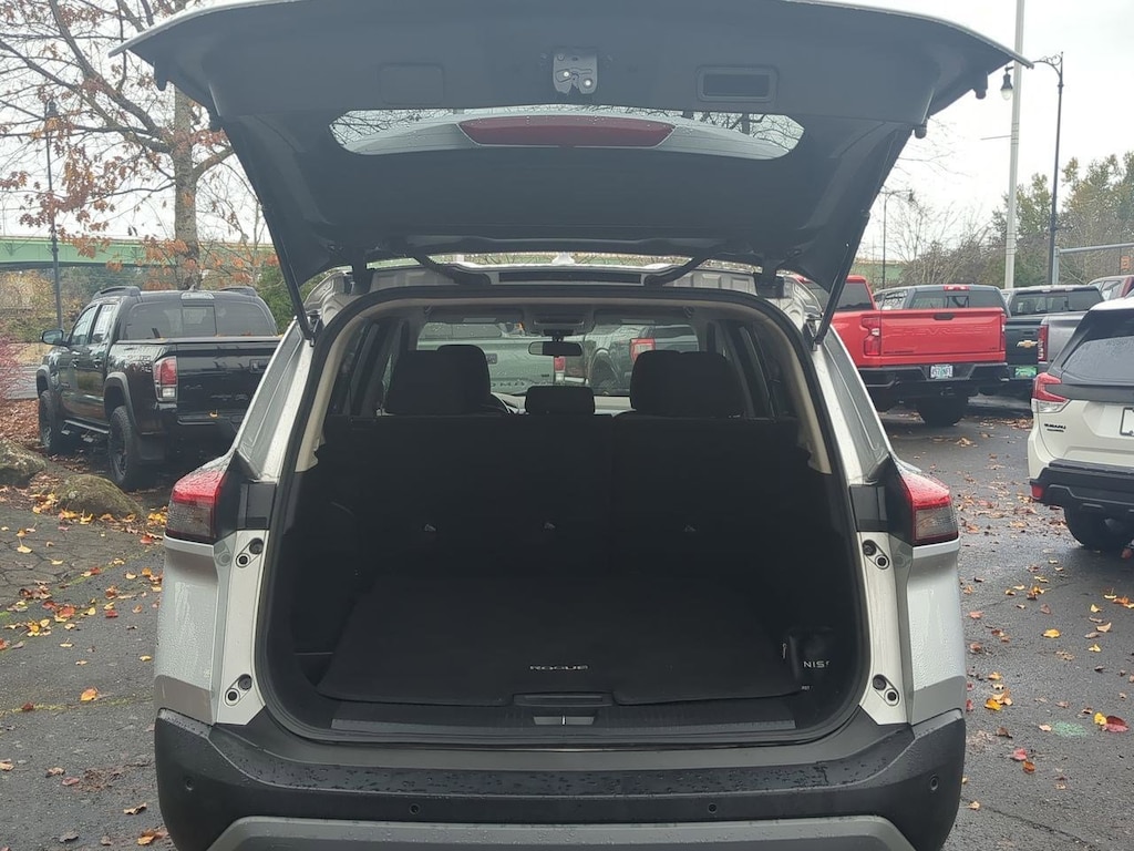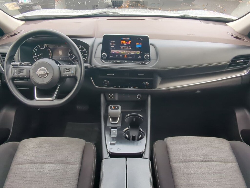 18 Aluminum Alloy Wheels, 4-Wheel Disc Brakes, 5.604 Axle Ratio, 6 Speakers, ABS brakes, Air Conditioning, Alloy wheels, AM/FM Radio, AM/FM radio: SiriusXM, Auto High-beam Headlights, Automatic temperature control, Brake assist, Bumpers: body-color, Cloth Seat Trim, Delay-off headlights, Driver door bin, Driver vanity mirror, Dual front impact airbags, Dual front side impact airbags, Electronic Stability Control, Emergency communication system: NissanConnect Services, Floor Mats w/1-Piece Cargo Area Protector, Four wheel independent suspension, Front anti-roll bar, Front Bucket Seats, Front Center Armrest, Front dual zone A/C, Front reading lights, Fully automatic headlights, Heated door mirrors, Illuminated entry, Knee airbag, Low tire pressure warning, NissanConnect featuring Apple CarPlay and Android Auto, Occupant sensing airbag, Outside temperature display, Overhead airbag, Overhead console, Panic alarm, Passenger door bin, Passenger vanity mirror, Power door mirrors, Power driver seat, Power steering, Power windows, Radio data system, Rear anti-roll bar, Rear Parking Sensors, Rear seat center armrest, Rear side impact airbag, Rear window defroster, Rear window wiper, Remote keyless entry, Speed control, Speed-Sensitive Wipers, Split folding rear seat, Spoiler, Steering wheel mounted audio controls, Tachometer, Telescoping steering wheel, Tilt steering wheel, Traction control, Trip computer, Variably intermittent wipers. Brilliant Silver Metallic 2023 Nissan Rogue SV FWD CVT with Xtronic 1.5L I3 Turbocharged DOHC 12V LEV3-ULEV50 201hp