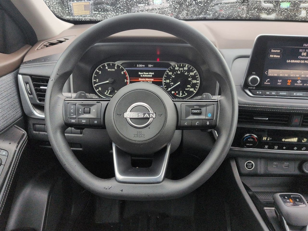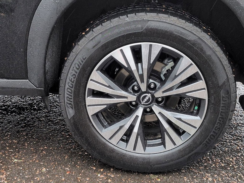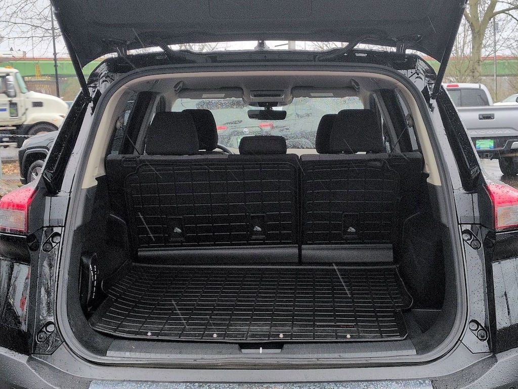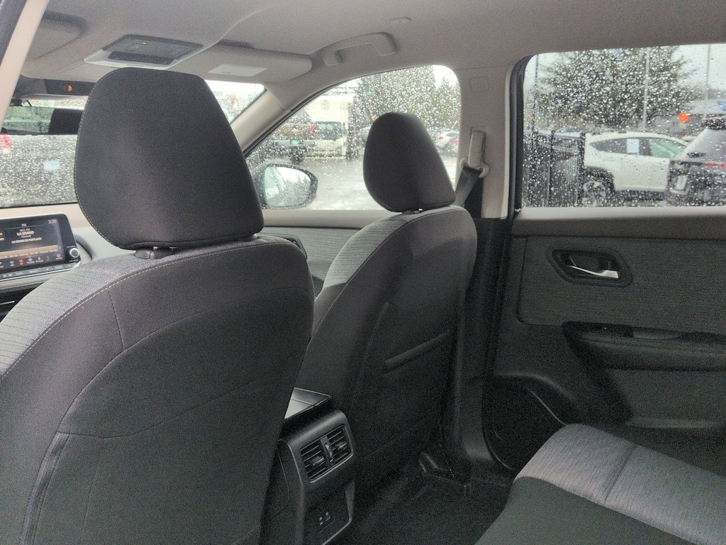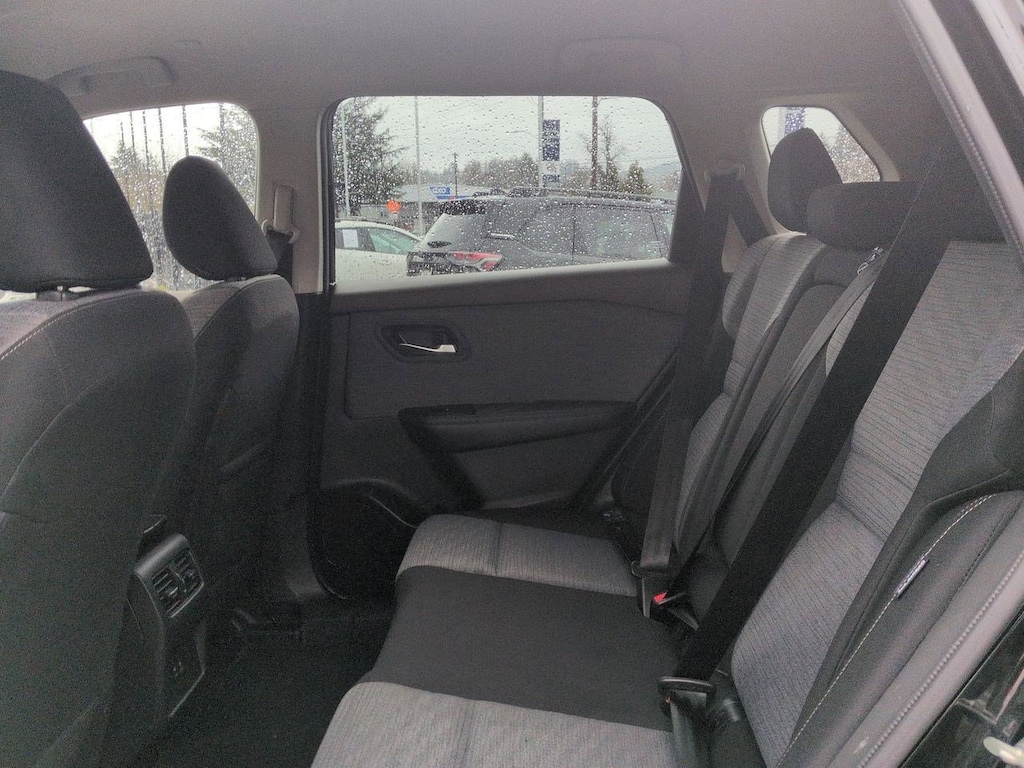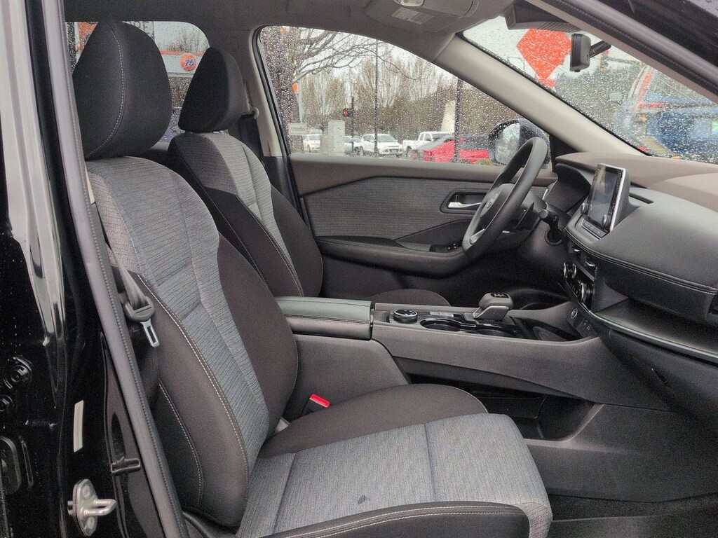AWD, 18 Aluminum Alloy Wheels, 4-Wheel Disc Brakes, 5.604 Axle Ratio, 6 Speakers, ABS brakes, Air Conditioning, Alloy wheels, AM/FM Radio, AM/FM radio: SiriusXM, Auto High-beam Headlights, Automatic temperature control, Black Splash Guards (Set of 4), Brake assist, Bumpers: body-color, Chrome Rear Bumper Protector, Cloth Seat Trim, Delay-off headlights, Driver door bin, Driver vanity mirror, Dual front impact airbags, Dual front side impact airbags, Electronic Stability Control, Emergency communication system: NissanConnect Services, First Aid Kit, Floor Mats w/1-Piece Cargo Area Protector, Four wheel independent suspension, Frameless Rearview Mirror w/Universal Remote, Front anti-roll bar, Front Bucket Seats, Front Center Armrest, Front dual zone A/C, Front reading lights, Fully automatic headlights, Heated door mirrors, Illuminated entry, Illuminated Kick Plates, Knee airbag, Low tire pressure warning, NissanConnect featuring Apple CarPlay and Android Auto, Occupant sensing airbag, Outside temperature display, Overhead airbag, Overhead console, Panic alarm, Passenger door bin, Passenger vanity mirror, Power door mirrors, Power driver seat, Power steering, Power windows, Radio data system, Rear anti-roll bar, Rear Parking Sensors, Rear seat center armrest, Rear side impact airbag, Rear window defroster, Rear window wiper, Remote keyless entry, Security system, Speed control, Speed-Sensitive Wipers, Split folding rear seat, Spoiler, Steering wheel mounted audio controls, Tachometer, Telescoping steering wheel, Tilt steering wheel, Traction control, Trip computer, Turn signal indicator mirrors, USB Charging Cable Set - Nissan, Variably intermittent wipers, AWD. Super Black 2023 Nissan Rogue SV AWD CVT with Xtronic 1.5L I3 Turbocharged DOHC 12V LEV3-ULEV50 201hp