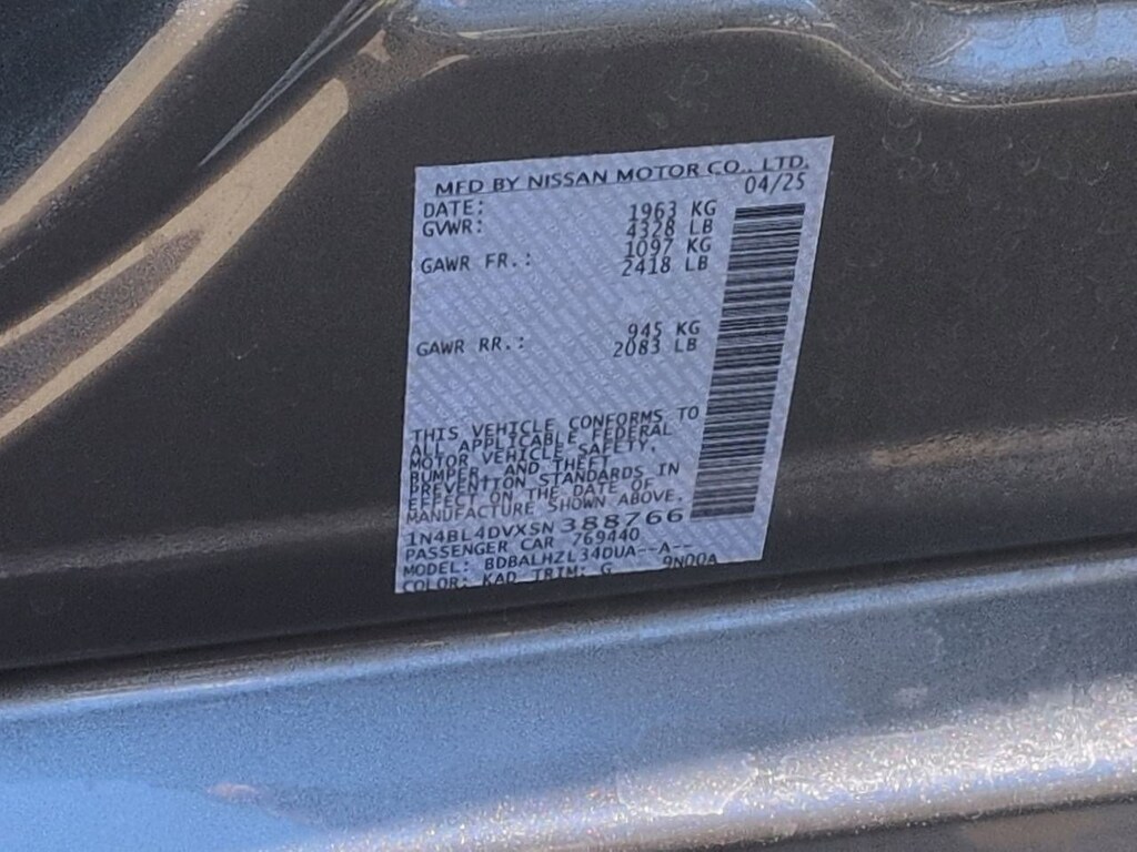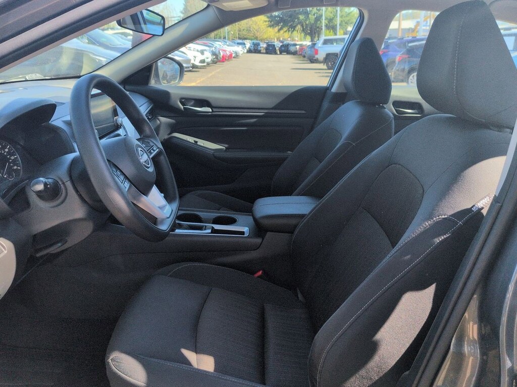 CVT with Xtronic, 17 Machined Alloy Wheels, 4-Wheel Disc Brakes, 6 Speakers, ABS brakes, Air Conditioning, Alloy wheels, AM/FM radio: SiriusXM, Auto High-beam Headlights, Blind Spot Warning, Brake assist, Bumpers: body-color, Cloth Seat Trim, Delay-off headlights, Driver door bin, Driver vanity mirror, Dual front impact airbags, Dual front side impact airbags, Electronic Stability Control, Floor Mats/Trunk Mat/Hideaway Net, Four wheel independent suspension, Front anti-roll bar, Front Bucket Seats, Front Center Armrest, Front reading lights, Fully automatic headlights, Illuminated entry, Knee airbag, Low tire pressure warning, NissanConnect featuring Apple CarPlay and Android Auto, NissanConnect Services Powered by SiriusXM, Occupant sensing airbag, Outside temperature display, Overhead airbag, Overhead console, Panic alarm, Passenger door bin, Passenger vanity mirror, Power door mirrors, Power driver seat, Power steering, Power windows, Radio data system, Radio: AM/FM Audio System, Rear anti-roll bar, Rear Parking Sensors, Rear reading lights, Rear seat center armrest, Rear side impact airbag, Rear window defroster, Remote keyless entry, Security system, Speed control, Speed-sensing steering, Speed-Sensitive Wipers, Split folding rear seat, Steering wheel mounted audio controls, Tachometer, Telescoping steering wheel, Tilt steering wheel, Traction control, Trip computer, Variably intermittent wipers, CVT with Xtronic. Gun Metallic 2025 Nissan Altima 2.5 SV FWD CVT with Xtronic 2.5L 4-Cylinder DOHC 16V
