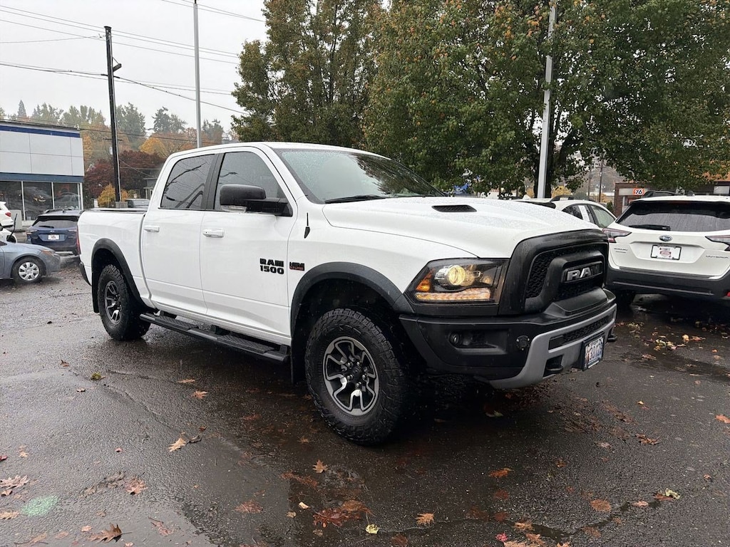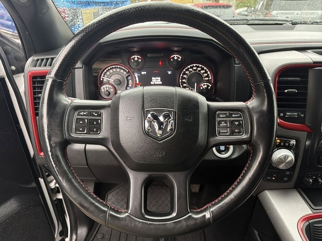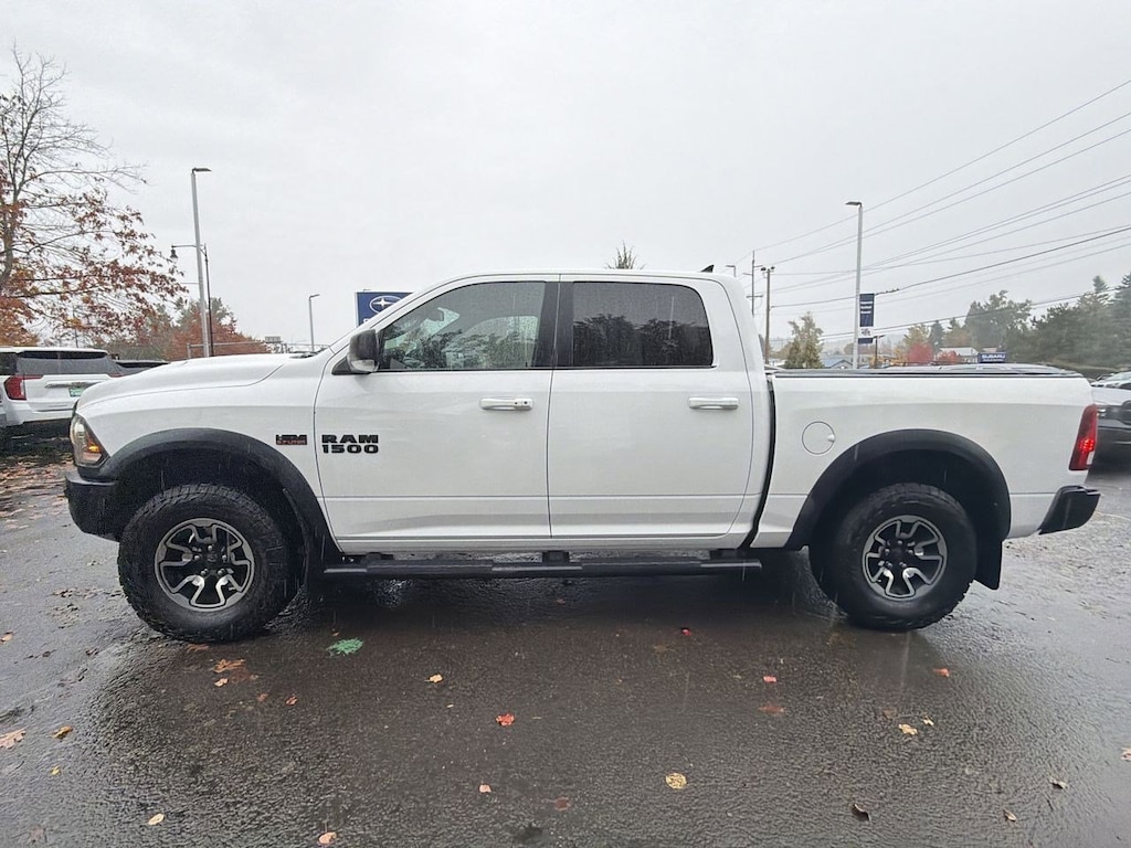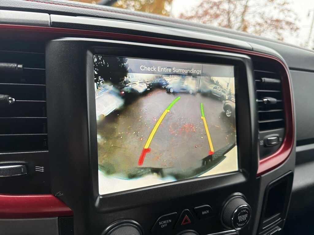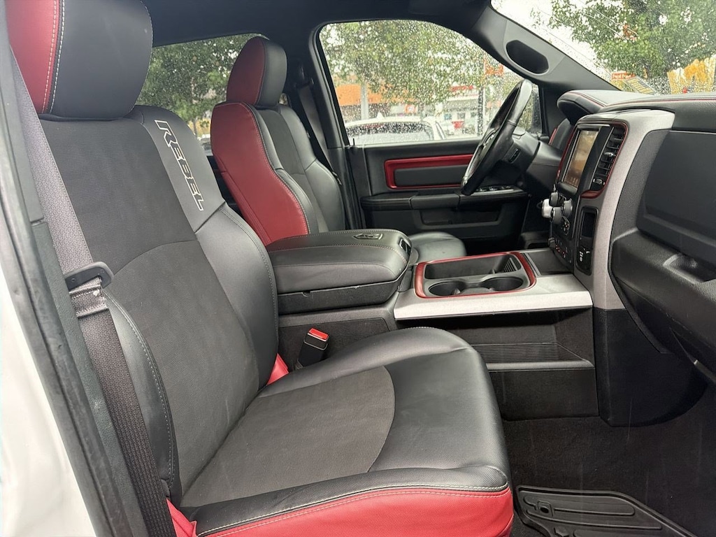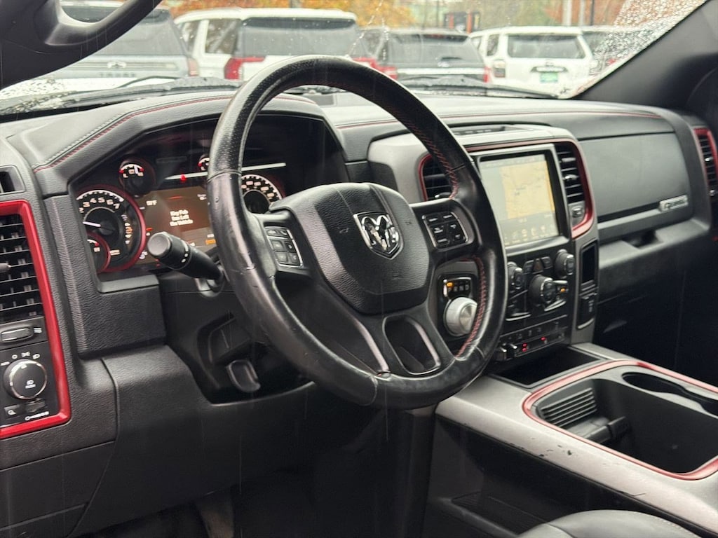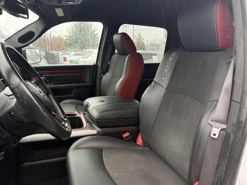 1 Yr. Trial (Registration Required), 3.92 Rear Axle Ratio, 32 Gallon Fuel Tank, 4-Wheel Disc Brakes, 5-Year SiriusXM Traffic Service, 5-Year SiriusXM Travel Link Service, 6 Speakers, 8.4 Touchscreen Display, ABS brakes, Air Conditioning, Alloy wheels, AM/FM radio, Audio Jack Input for Mobile Devices, Auto-Dimming Exterior Mirrors, Auto-Dimming Rear-View Mirror, Auto-leveling suspension, Automatic temperature control, Black Tubular Side Steps, Brake assist, Bright Rotary Shifter, Compass, Delay-off headlights, Driver door bin, Dual front impact airbags, Dual front side impact airbags, Dual Rear Exhaust w/Bright Tips, Electronic Shift, Electronic Stability Control, Emergency communication system: Uconnect Access, Engine Block Heater, Exterior Mirrors Courtesy Lamps, Exterior Mirrors w/Supplemental Signals, Flat Black 5.7L Hemi Badge, Flat Black Ram 1500 Badge, Front anti-roll bar, Front Bucket Seats, Front Center Armrest w/Storage, Front dual zone A/C, Front fog lights, Front reading lights, Front wheel independent suspension, Fully automatic headlights, Glove Box Lamp, GPS Antenna Input, GPS Navigation, HD Radio, Heated door mirrors, Heated front seats, Heated steering wheel, Illuminated entry, Integrated Voice Command w/Bluetooth, Keyless Enter-N-Go, Leather steering wheel, LED Bed Lighting, Low tire pressure warning, Luxury Group, Manufacturers Statement of Origin, Media Hub (USB, AUX), Occupant sensing airbag, Outside temperature display, Overhead airbag, Overhead console, Overhead Console w/Garage Door Opener, Panic alarm, ParkView Rear Back-Up Camera, Passenger door bin, Passenger vanity mirror, Power door mirrors, Power driver seat, Power Heated Fold-Away Mirrors, Power passenger seat, Power steering, Power windows, Power-Folding Mirrors, Premium Cloth Seats w/Emboss Tread Pattern, Protection Group, Quick Order Package 26W Rebel, Radio data system, Radio: Uconnect 3C Nav w/8.4 Display, Radio: Uconnect 3C w/8.4 Display, Ram Glove Box Badge, Rear anti-roll bar, Rear Dome w/On/Off Switch Lamp, Rear seat center armrest, Rear step bumper, Remote keyless entry, Remote Proximity Keyless Entry, Remote USB Port, Security system, SIRIUSXM Satellite Radio, SIRIUSXM Traffic, SiriusXM Travel Link, Speed control, Split folding rear seat, Spray In Bedliner, Steering wheel mounted audio controls, Sun Visors w/Illuminated Vanity Mirrors, Tachometer, Tilt steering wheel, Tip Start, Tonneau Cover w/Embossed Rams Head, Traction control, Trailer Brake Control, Trip computer, Uconnect Access, Uconnect Access 1 Year Trial, Underhood Lamp, Universal Garage Door Opener, Variably intermittent wipers, Voltmeter, Wheels: 17 x 8 Aluminum w/Matte Black Pocket. Bright White Clearcoat 2017 Ram 1500 Rebel 4WD 8-Speed Automatic HEMI 5.7L V8 Multi Displacement VVT