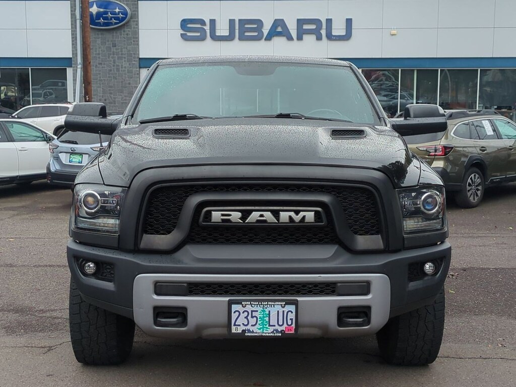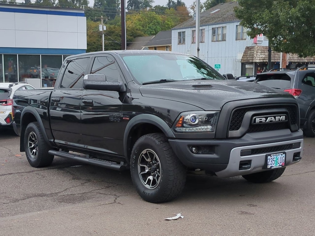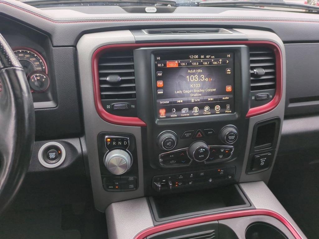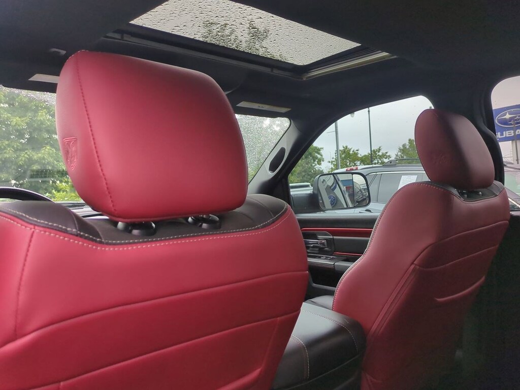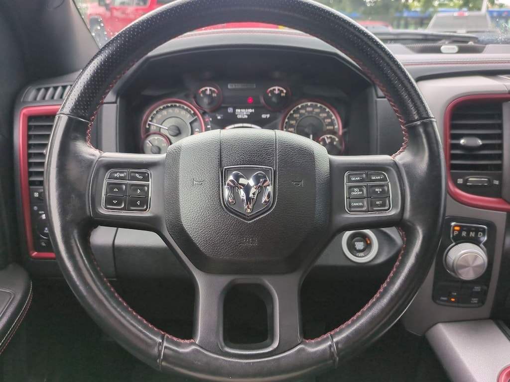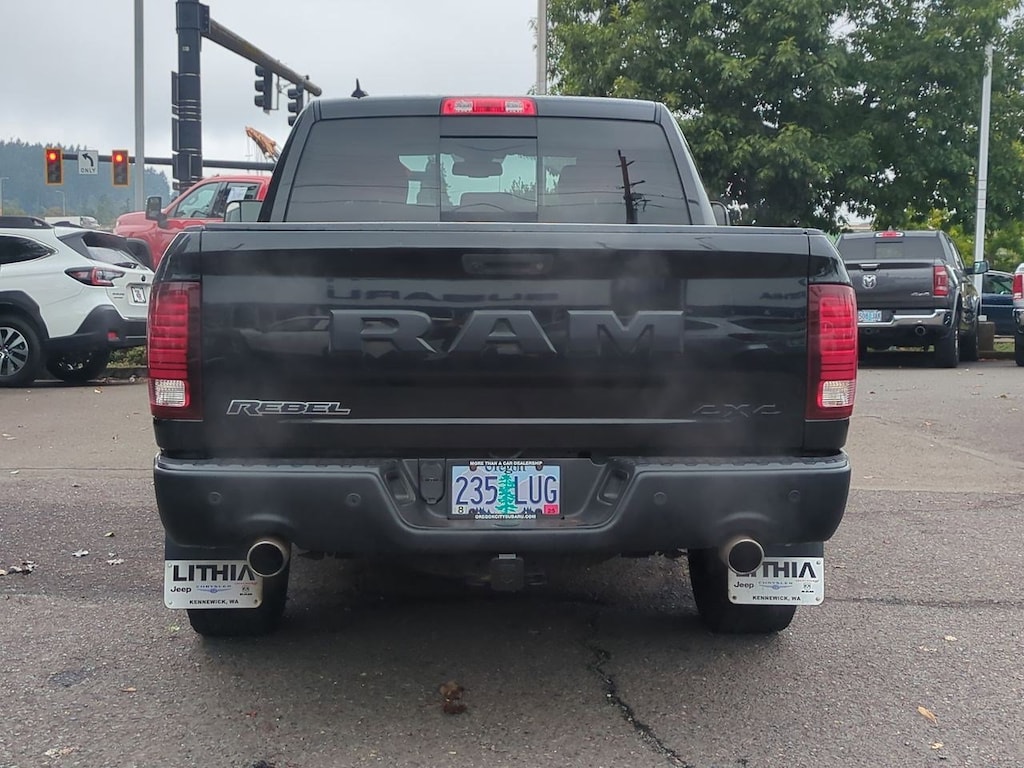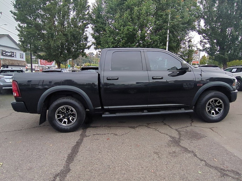 1 Yr. Trial (Registration Required), 3.92 Rear Axle Ratio, 32 Gallon Fuel Tank, 4-Wheel Disc Brakes, 5-Year SiriusXM Traffic Service, 5-Year SiriusXM Travel Link Service, 6 Speakers, 8.4 Touchscreen Display, 9 Alpine Speakers w/Subwoofer, ABS brakes, Air Conditioning, Alloy wheels, AM/FM radio, Audio Jack Input for Mobile Devices, Auto-Dimming Exterior Mirrors, Auto-Dimming Rear-View Mirror, Auto-leveling suspension, Automatic temperature control, Black Tubular Side Steps, Brake assist, Bright Rotary Shifter, Compass, Delay-off headlights, Driver door bin, Dual front impact airbags, Dual front side impact airbags, Dual Rear Exhaust w/Bright Tips, Electronic Shift, Electronic Stability Control, Emergency communication system: Uconnect Access, Engine Block Heater, Exterior Mirrors Courtesy Lamps, Exterior Mirrors w/Supplemental Signals, Flat Black 5.7L Hemi Badge, Flat Black Ram 1500 Badge, Front anti-roll bar, Front Bucket Seats, Front Center Armrest w/Storage, Front dual zone A/C, Front fog lights, Front reading lights, Front wheel independent suspension, Fully automatic headlights, Glove Box Lamp, GPS Antenna Input, GPS Navigation, HD Radio, Heated door mirrors, Heated front seats, Heated steering wheel, Illuminated entry, Integrated Voice Command w/Bluetooth, Keyless Enter-N-Go, Leather steering wheel, LED Bed Lighting, Low tire pressure warning, Luxury Group, Manufacturers Statement of Origin, Media Hub (USB, AUX), Occupant sensing airbag, Outside temperature display, Overhead airbag, Overhead console, Overhead Console w/Garage Door Opener, Panic alarm, ParkView Rear Back-Up Camera, Passenger door bin, Passenger vanity mirror, Power Black Trailer Tow Mirrors, Power door mirrors, Power driver seat, Power Heated Fold-Away Mirrors, Power passenger seat, Power steering, Power Sunroof, Power windows, Power-Folding Mirrors, Premium Cloth Seats w/Emboss Tread Pattern, Protection Group, Quick Order Package 26W Rebel, Radio data system, Radio: Uconnect 3C Nav w/8.4 Display, Radio: Uconnect 3C w/8.4 Display, Ram Glove Box Badge, Rear anti-roll bar, Rear Dome w/On/Off Switch Lamp, Rear seat center armrest, Rear step bumper, Remote keyless entry, Remote Proximity Keyless Entry, Remote USB Port, Security system, SIRIUSXM Satellite Radio, SIRIUSXM Traffic, SiriusXM Travel Link, Speed control, Split folding rear seat, Spray In Bedliner, Steering wheel mounted audio controls, Sun Visors w/Illuminated Vanity Mirrors, Tachometer, Tilt steering wheel, Tip Start, Traction control, Trailer Brake Control, Trailer Tow Mirrors, Trailer Tow Mirrors & Brake Group, Trip computer, Uconnect Access, Uconnect Access 1 Year Trial, Underhood Lamp, Universal Garage Door Opener, Variably intermittent wipers, Voltmeter, Wheels: 17 x 8 Aluminum w/Matte Black Pocket. Brilliant Black Crystal Pearlcoat 2017 Ram 1500 Rebel 4WD 8-Speed Automatic HEMI 5.7L V8 Multi Displacement VVT