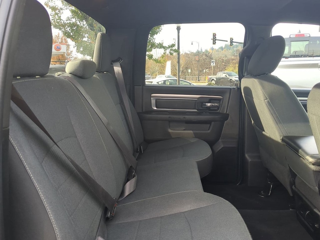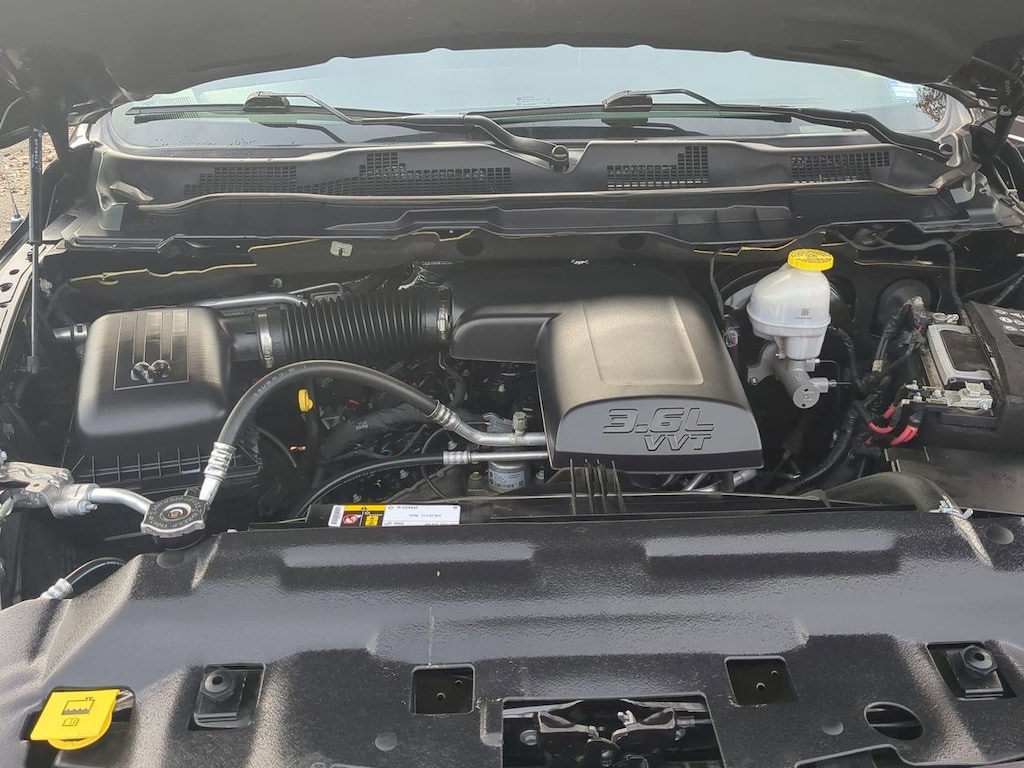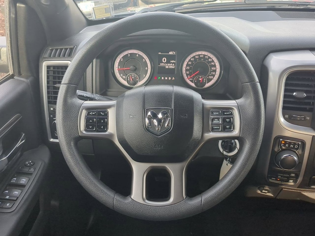 17 x 7 Aluminum Wheels, 3.21 Rear Axle Ratio, 4-Wheel Disc Brakes, 40/20/40 Split Bench Seat, 4x4 Flat Black Badge, 6 Speakers, ABS brakes, Active Grille Shutters, Air Conditioning, Alloy wheels, AM/FM radio: SiriusXM, Audio Input Jack for Mobile Devices, B-Pillar Black Out, Bi-Function Halogen Projector Headlamps, Black Exterior Mirrors, Black Exterior Truck Badging, Black Grille w/RAM Lettering, Black Headlamp Filler Panel, Black Powder Coated Front Bumper, Black Powder Coated Rear Bumper, Black RAM Head Tailgate Badge, Black Wheel Flares, Brake assist, Bumpers: chrome, Center Hub, Cloth 40/20/40 Bench Seat, Compass, Delay-off headlights, Driver door bin, Dual front impact airbags, Dual front side impact airbags, Electronic Shift, Electronic Stability Control, Exterior Mirrors w/Heating Element, Front anti-roll bar, Front Armrest w/3 Cupholders, Front Center Armrest w/Storage, Front License Plate Bracket, Front reading lights, Front wheel independent suspension, Front Wheel Well Liners, Fully automatic headlights, GPS Antenna Input, Heated door mirrors, Illuminated entry, Integrated Voice Command w/Bluetooth, Low tire pressure warning, Manufacturers Statement of Origin, Occupant sensing airbag, Outside temperature display, Overhead airbag, Overhead console, Panic alarm, ParkSense Rear Park Assist System, ParkView Rear Back-Up Camera, Passenger door bin, Passenger vanity mirror, Power door mirrors, Power steering, Power windows, Quick Order Package 29F Warlock, Radio data system, Radio: Uconnect 3 w/5 Display, Raised Ride Height, Rear anti-roll bar, Rear Extra HD Shock Absorbers, Rear seat center armrest, Rear step bumper, Remote keyless entry, Remote USB Port, Remote USB Port - Charge Only, Semi-Gloss Black Hub, Speed control, Sport Tail Lamps, Storage Tray, Tachometer, Tilt steering wheel, Tip Start, Traction control, Trip computer, Variably intermittent wipers, Voltmeter, Warlock, Warlock Interior Accents, Wheels: 20 x 9 High Gloss Black Aluminum. Diamond Black Crystal Pearlcoat 2024 Ram 1500 Classic Warlock 4WD 8-Speed Automatic 3.6L V6 24V VVT