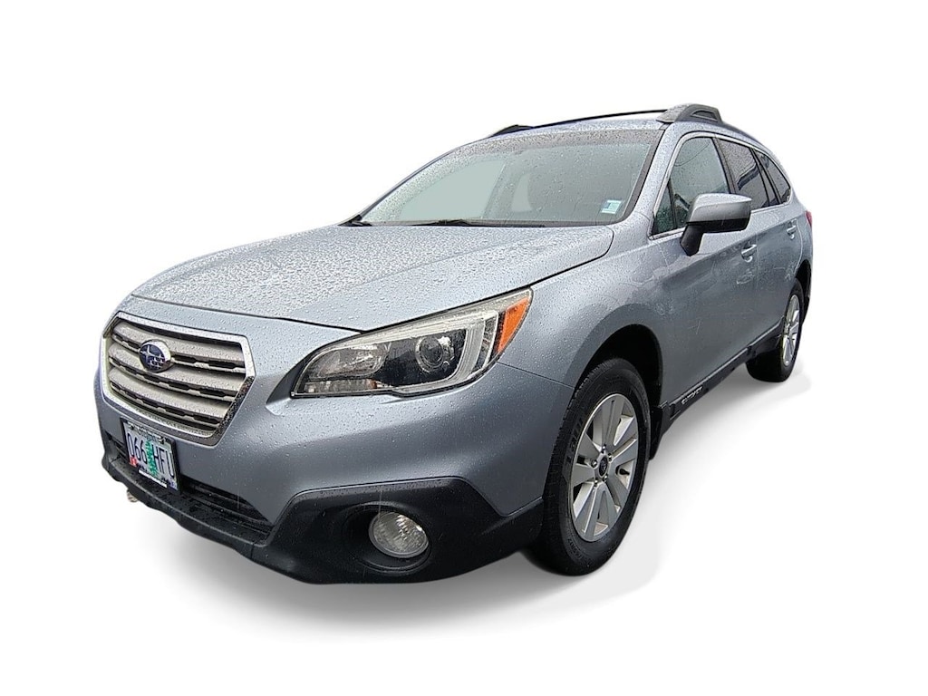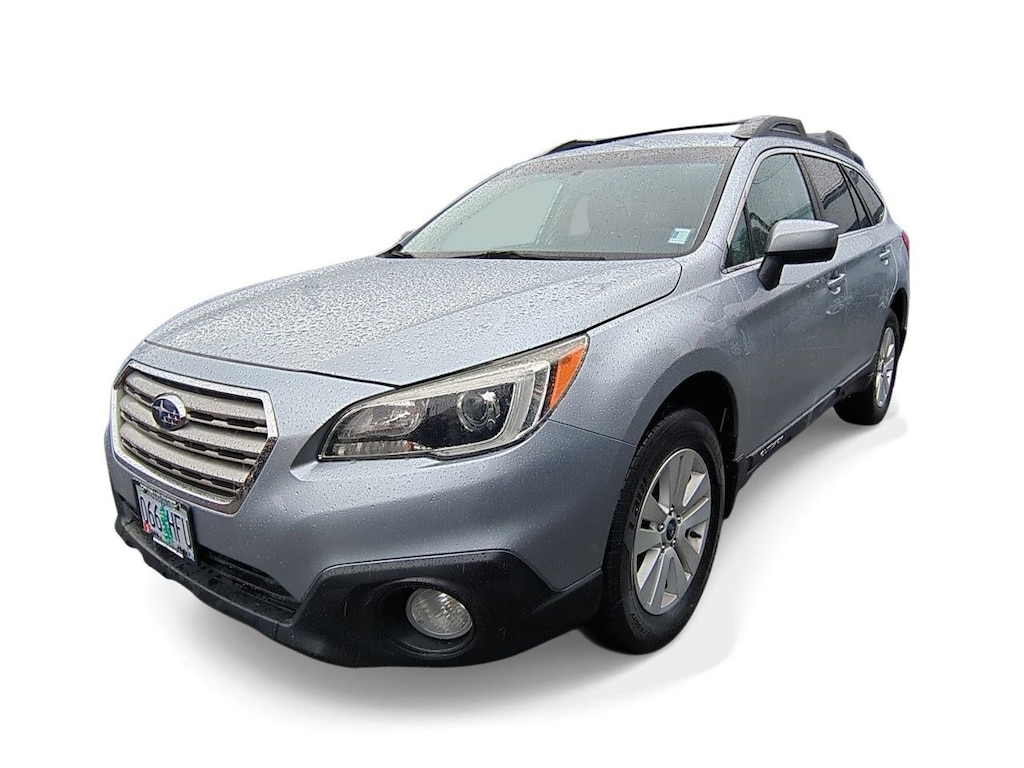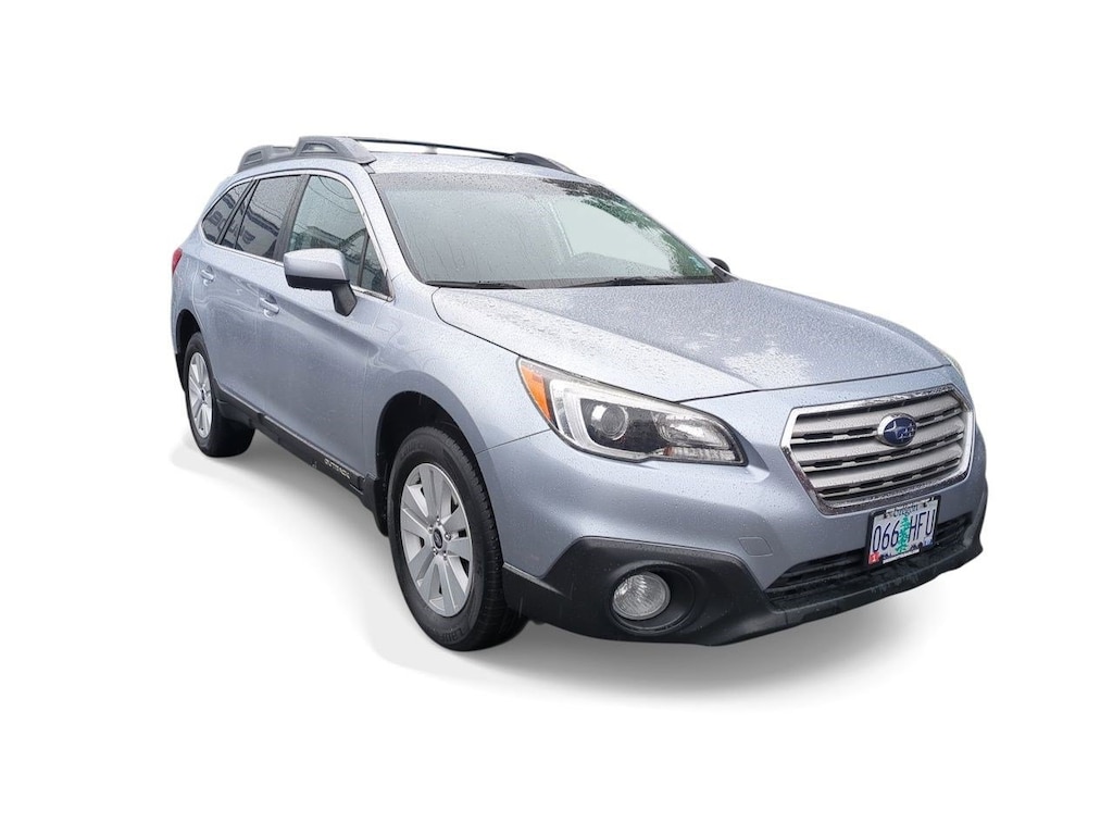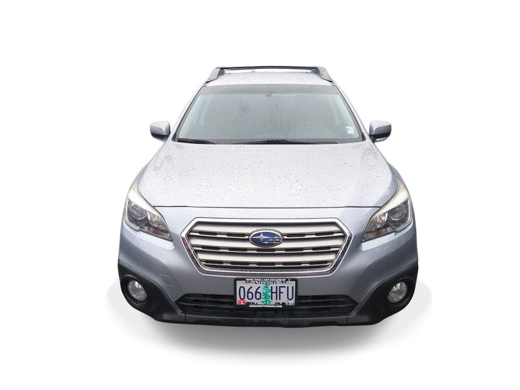 17 x 7.0 Aluminum Alloy w/Silver Finish Wheels, 4-Wheel Disc Brakes, 4.111 Axle Ratio, 6 Speakers, ABS brakes, Air Conditioning, Alloy wheels, AM/FM radio: SiriusXM, Anti-whiplash front head restraints, Automatic temperature control, Brake assist, Bumper Cover (Rear), Bumpers: body-color, CD player, Cloth Upholstery, Driver door bin, Driver vanity mirror, Dual front impact airbags, Dual front side impact airbags, Electrochromic Mirror w/Compass, Electronic Stability Control, Exterior Auto Dimming Mirror w/Light, Exterior Parking Camera Rear, Four wheel independent suspension, Front anti-roll bar, Front Bucket Seats, Front Center Armrest w/Storage, Front dual zone A/C, Front fog lights, Front reading lights, Fully automatic headlights, Heated door mirrors, Heated front seats, Heated Reclining Front Bucket Seats, Illuminated entry, Leather Shift Knob, Low tire pressure warning, Occupant sensing airbag, Outside temperature display, Overhead airbag, Overhead console, Panic alarm, Passenger door bin, Passenger vanity mirror, Power door mirrors, Power driver seat, Power steering, Power windows, Radio data system, Radio: AM/FM Stereo HD Radio w/Single Disc CD, Rear anti-roll bar, Rear Seat Back Protector, Rear seat center armrest, Rear window defroster, Rear window wiper, Rear-Vision Camera, Remote keyless entry, Roof rack, Security system, Speed control, Speed-sensing steering, Splash Guards, Split folding rear seat, Spoiler, Standard Model, Steering wheel mounted audio controls, Steering-Wheel Paddle-Shift Control Switches, Tachometer, Telescoping steering wheel, Tilt steering wheel, Traction control, Trip computer, Variably intermittent wipers, Vehicle Information Display. Ice Silver Metallic 2015 Subaru Outback 2.5i Premium AWD CVT Lineartronic 2.5L 4-Cylinder DOHC 16V