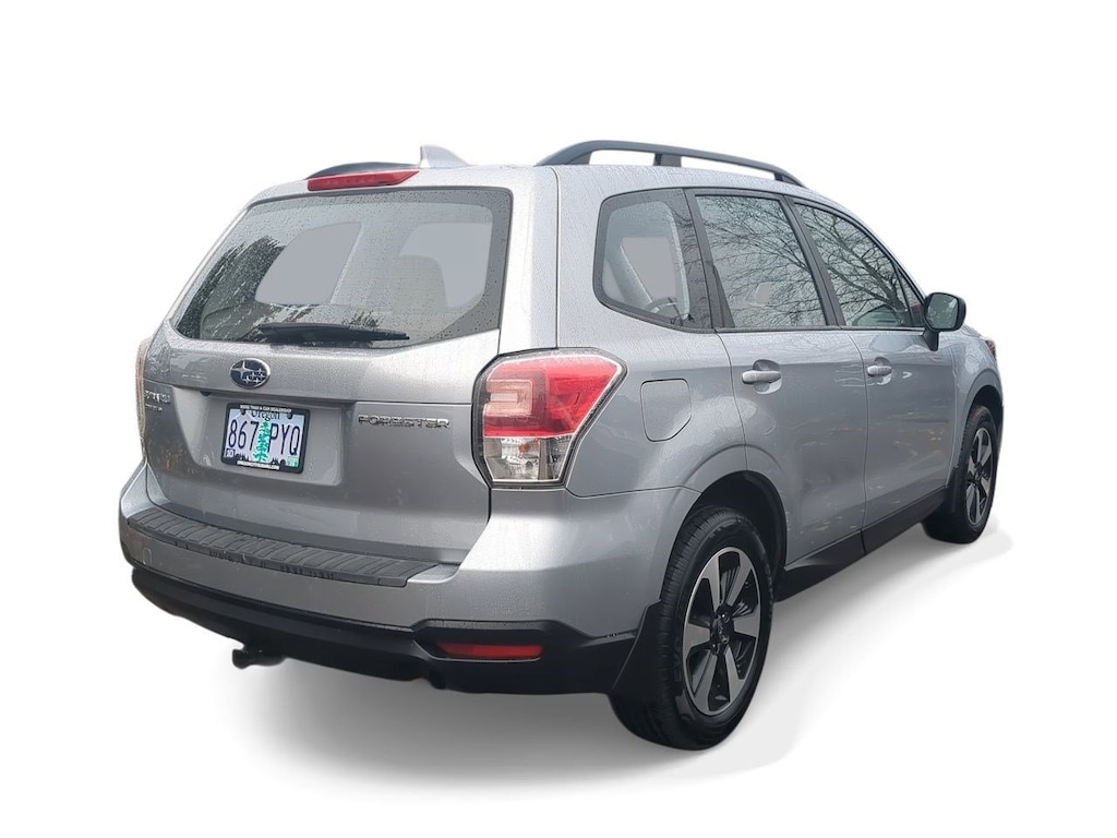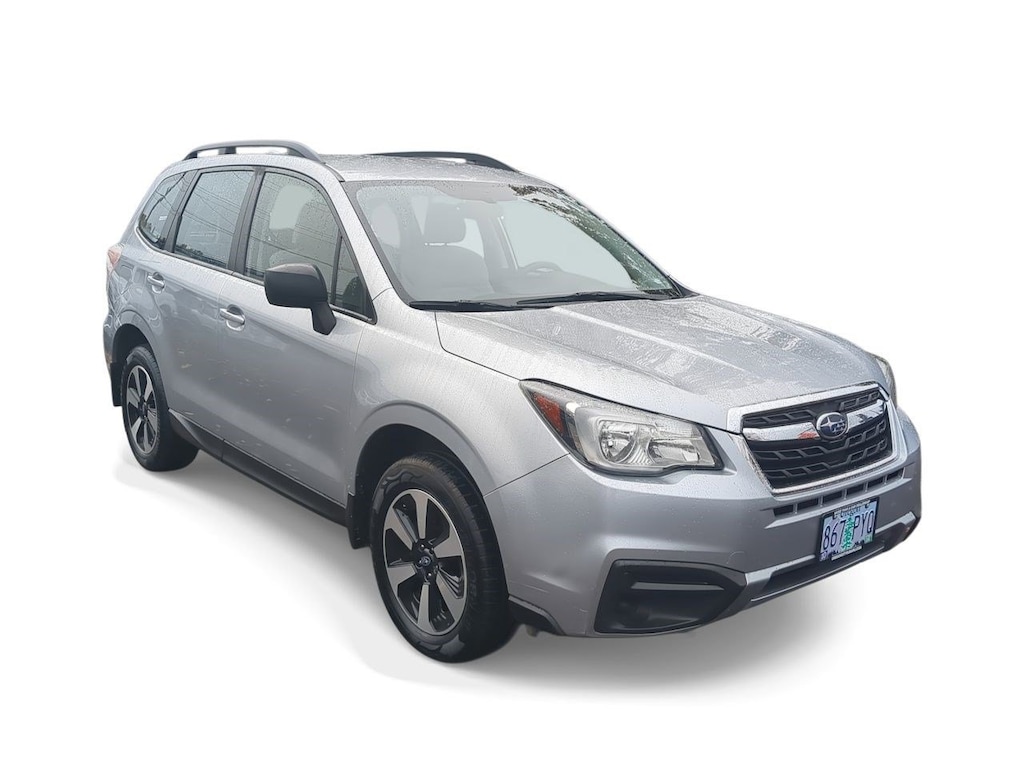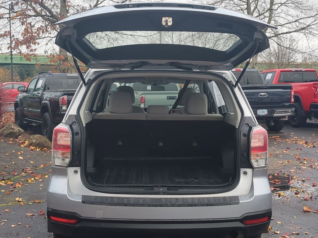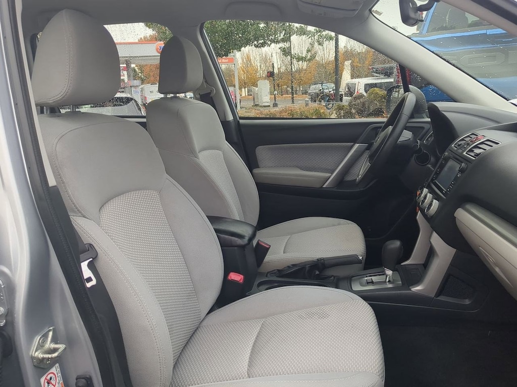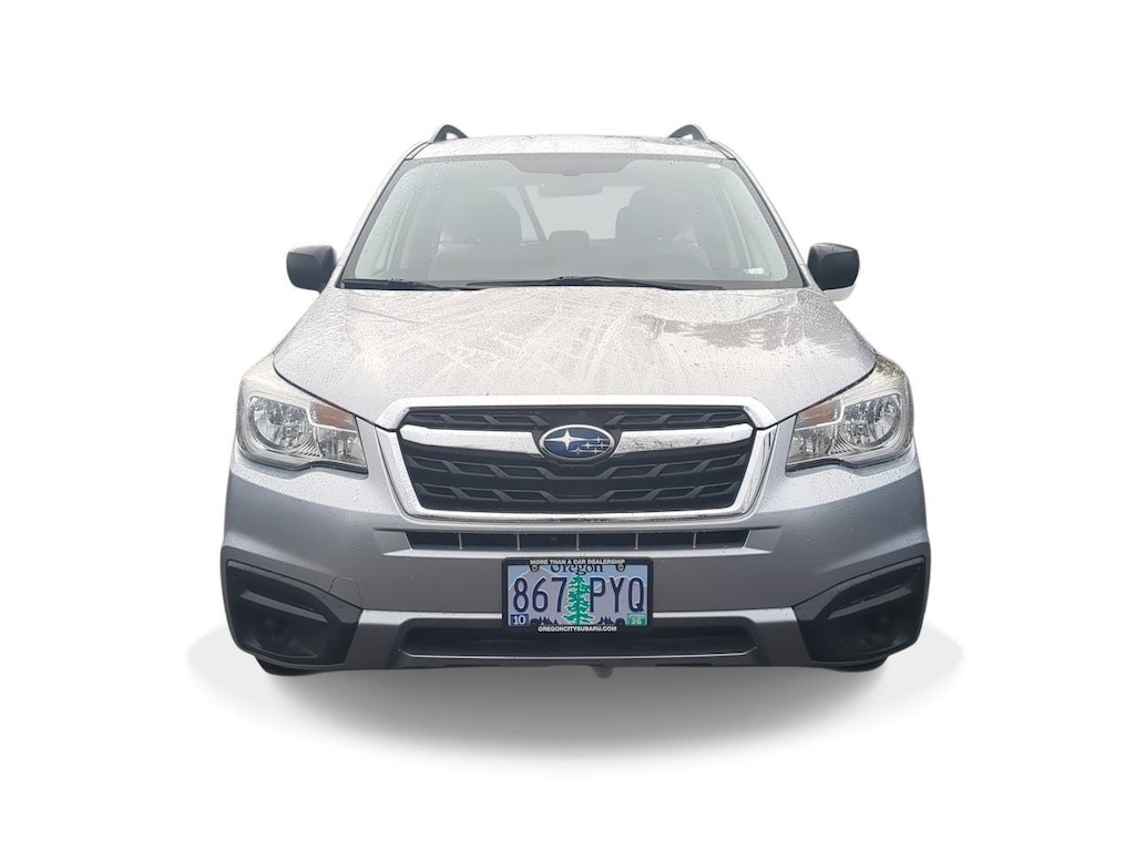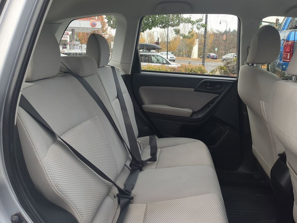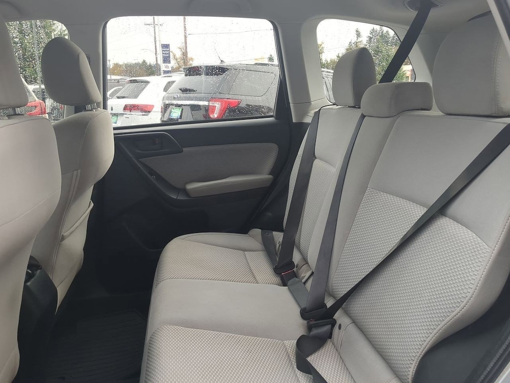 3.70 Axle Ratio, 4 Speakers, 4-Wheel Disc Brakes, ABS brakes, Air Conditioning, Alloy Wheel Package, AM/FM radio, Black Finish Roof Rails, Brake assist, Bumpers: body-color, CD player, Cloth Upholstery, Driver door bin, Driver vanity mirror, Dual front impact airbags, Dual front side impact airbags, Electronic Stability Control, Emergency communication system: STARLINK, Exterior Parking Camera Rear, Four wheel independent suspension, Front anti-roll bar, Front Bucket Seats, Front Center Armrest, Front reading lights, Illuminated entry, Knee airbag, Low tire pressure warning, Occupant sensing airbag, Outside temperature display, Overhead airbag, Overhead console, Panic alarm, Passenger door bin, Passenger vanity mirror, Power door mirrors, Power steering, Power windows, Radio data system, Radio: Subaru Starlink 6.2 Multimedia System, Rear anti-roll bar, Rear window defroster, Rear window wiper, Remote keyless entry, Security system, Speed control, Split folding rear seat, Steering wheel mounted audio controls, Tachometer, Telescoping steering wheel, Tilt steering wheel, Traction control, Trip computer, Variably intermittent wipers, Wheels: 17 x 7.0J Black Machine Finish Alloy, Wheels: 17 x 7.0J Steel w/Center Cap. Ice Silver Metallic 2018 Subaru Forester 2.5i AWD Lineartronic CVT 2.5L 4-Cylinder DOHC 16V VVT
