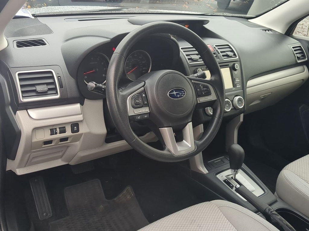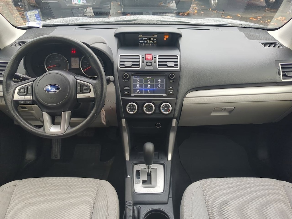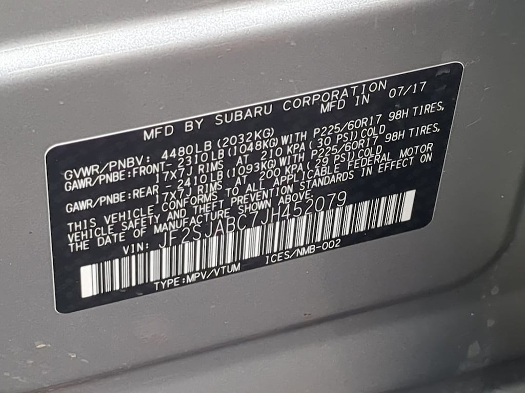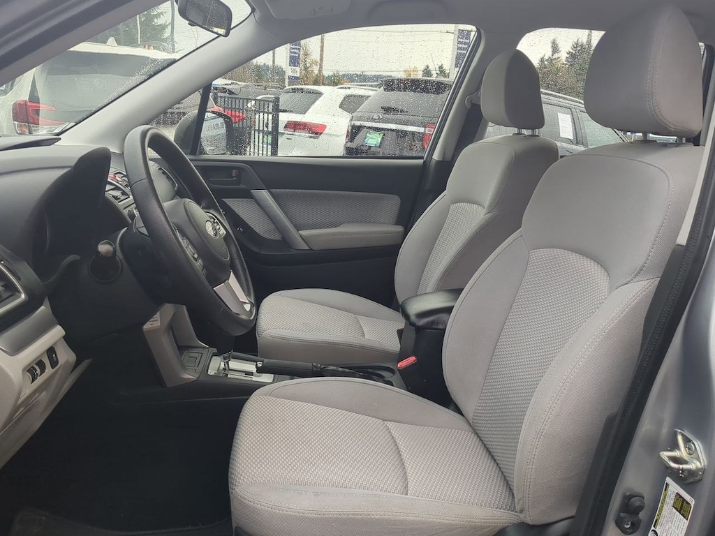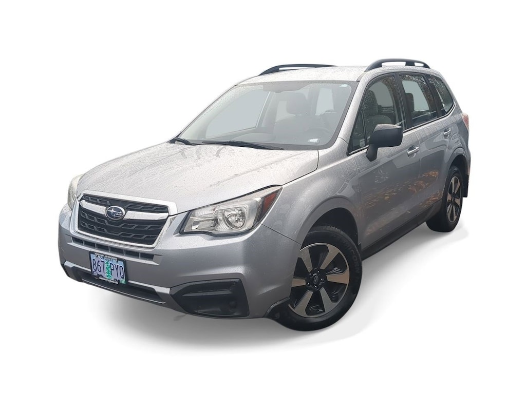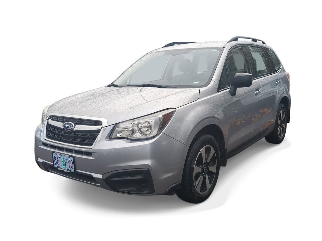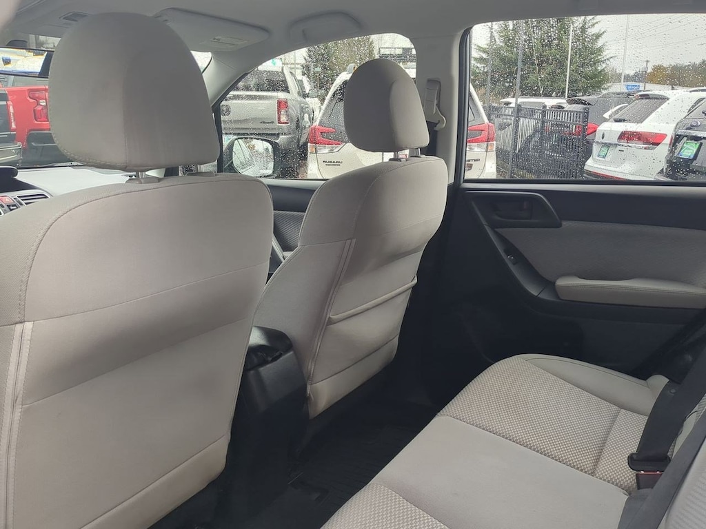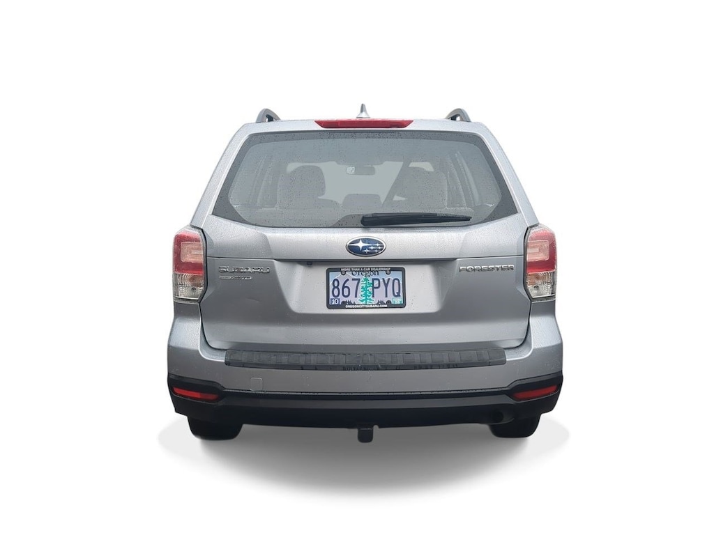 3.70 Axle Ratio, 4 Speakers, 4-Wheel Disc Brakes, ABS brakes, Air Conditioning, Alloy Wheel Package, AM/FM radio, Black Finish Roof Rails, Brake assist, Bumpers: body-color, CD player, Cloth Upholstery, Driver door bin, Driver vanity mirror, Dual front impact airbags, Dual front side impact airbags, Electronic Stability Control, Emergency communication system: STARLINK, Exterior Parking Camera Rear, Four wheel independent suspension, Front anti-roll bar, Front Bucket Seats, Front Center Armrest, Front reading lights, Illuminated entry, Knee airbag, Low tire pressure warning, Occupant sensing airbag, Outside temperature display, Overhead airbag, Overhead console, Panic alarm, Passenger door bin, Passenger vanity mirror, Power door mirrors, Power steering, Power windows, Radio data system, Radio: Subaru Starlink 6.2 Multimedia System, Rear anti-roll bar, Rear window defroster, Rear window wiper, Remote keyless entry, Security system, Speed control, Split folding rear seat, Steering wheel mounted audio controls, Tachometer, Telescoping steering wheel, Tilt steering wheel, Traction control, Trip computer, Variably intermittent wipers, Wheels: 17 x 7.0J Black Machine Finish Alloy, Wheels: 17 x 7.0J Steel w/Center Cap. Ice Silver Metallic 2018 Subaru Forester 2.5i AWD Lineartronic CVT 2.5L 4-Cylinder DOHC 16V VVT