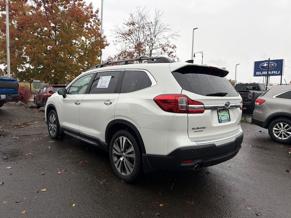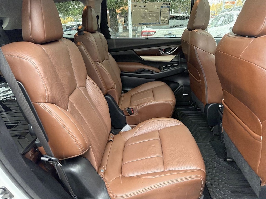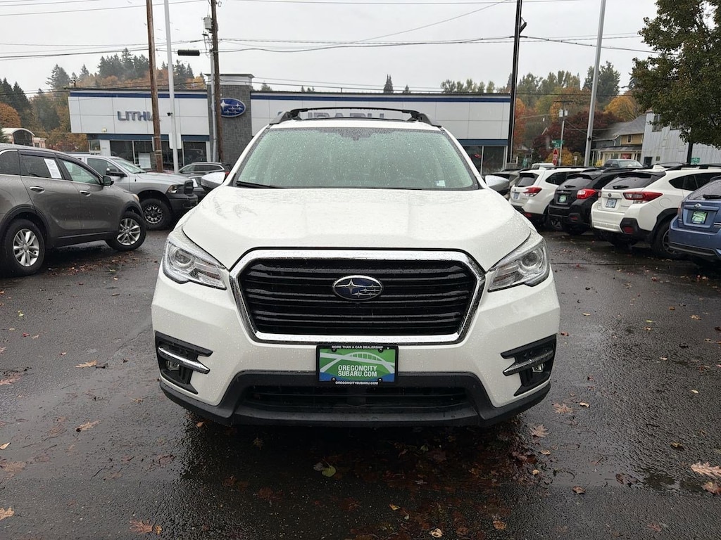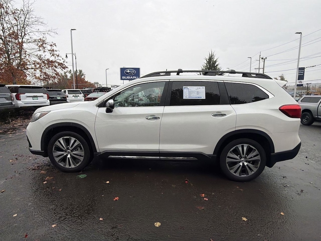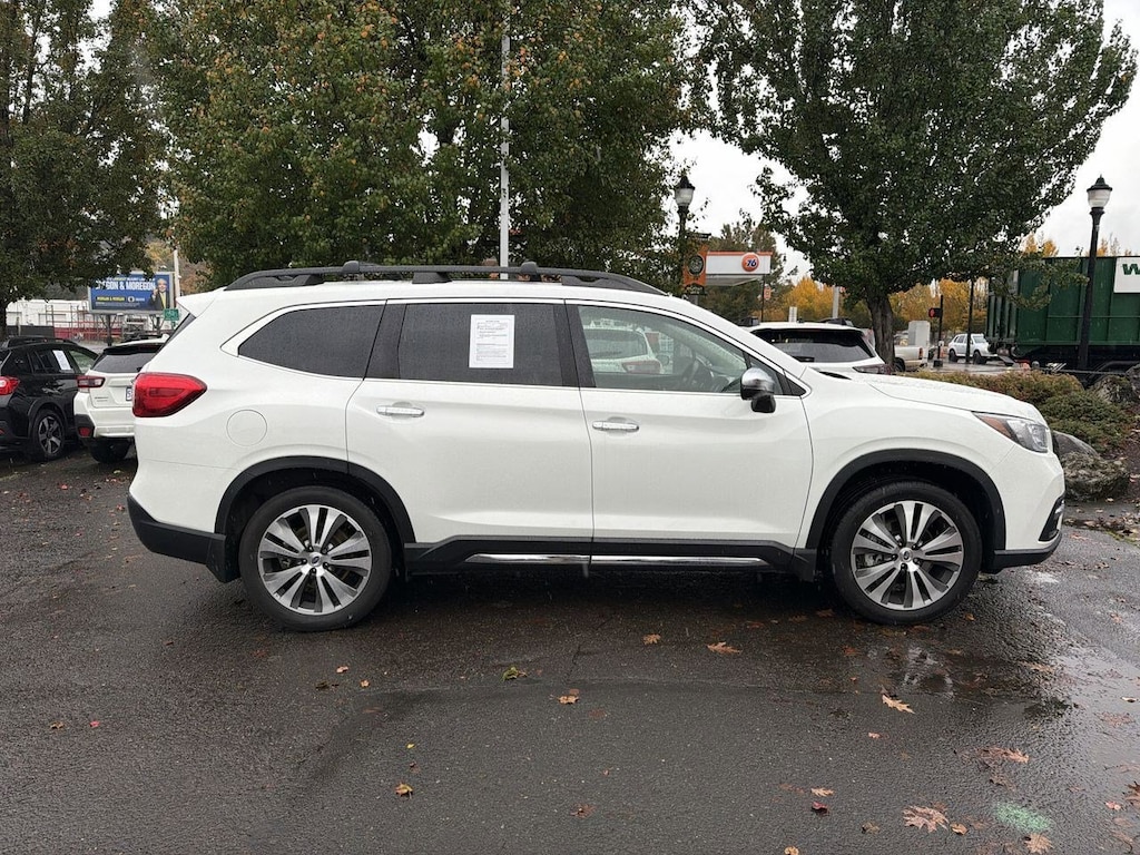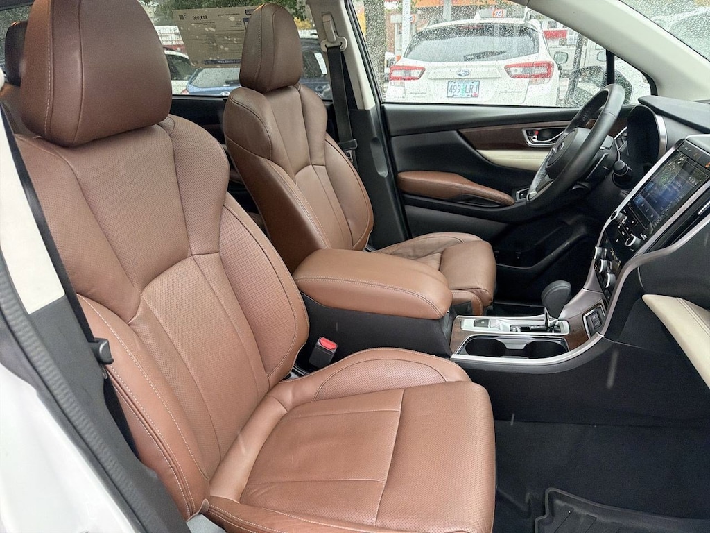 14 Speakers, 20 Alloy Wheels, 3rd row seats: bench, 4-Wheel Disc Brakes, ABS brakes, Aero Crossbar Set, Air Conditioning, All-Weather Floor Liners, Alloy wheels, AM/FM radio: SiriusXM, Auto High-beam Headlights, Auto-Dimming Exterior Mirror w/Approach Light, Auto-dimming Rear-View mirror, Automatic temperature control, Axle Ratio: 4.44, Brake assist, Bumpers: body-color, Cargo Tray, CD player, Compass, Delay-off headlights, Driver door bin, Driver vanity mirror, Dual front impact airbags, Dual front side impact airbags, Electronic Stability Control, Emergency communication system: STARLINK Safety and Security, Exterior Parking Camera Rear, Four wheel independent suspension, Front anti-roll bar, Front Bucket Seats, Front Center Armrest, Front dual zone A/C, Front fog lights, Front reading lights, Fully automatic headlights, Garage door transmitter: HomeLink, harman/kardonî Speakers, Heated & Ventilated Front Bucket Seats, Heated door mirrors, Heated front seats, Heated rear seats, Heated steering wheel, Illuminated entry, Knee airbag, Low tire pressure warning, Memory seat, Navigation System, Occupant sensing airbag, Outside temperature display, Overhead airbag, Overhead console, Panic alarm, Passenger door bin, Passenger vanity mirror, Perforated Leather-Trimmed Upholstery, Popular Package #3, Power door mirrors, Power driver seat, Power Liftgate, Power moonroof, Power passenger seat, Power steering, Power windows, Radio data system, Radio: Subaru STARLINK 8.0 Multimedia Nav System, Rain sensing wipers, Rear air conditioning, Rear anti-roll bar, Rear Bumper Cover, Rear reading lights, Rear Seatback Protector, Rear window defroster, Rear window wiper, Remote keyless entry, Roof rack: rails only, Security system, Speed control, Splash Guards, Split folding rear seat, Spoiler, Standard Model, STARLINK/Apple CarPlay/Android Auto, Steering wheel mounted audio controls, Tachometer, Telescoping steering wheel, Tilt steering wheel, Traction control, Trip computer, Turn signal indicator mirrors, USB Charging Ports, Variably intermittent wipers, Ventilated front seats. Crystal White Pearl 2019 Subaru Ascent Touring AWD Lineartronic CVT 2.4L DOHC
