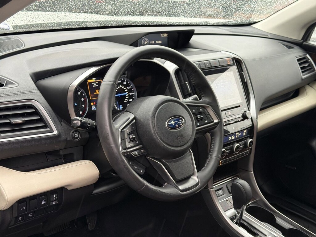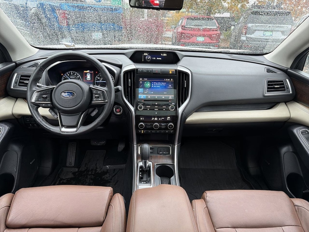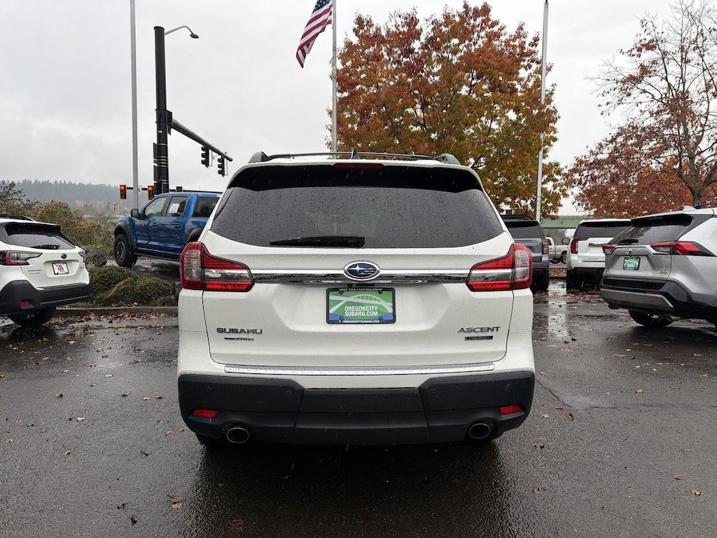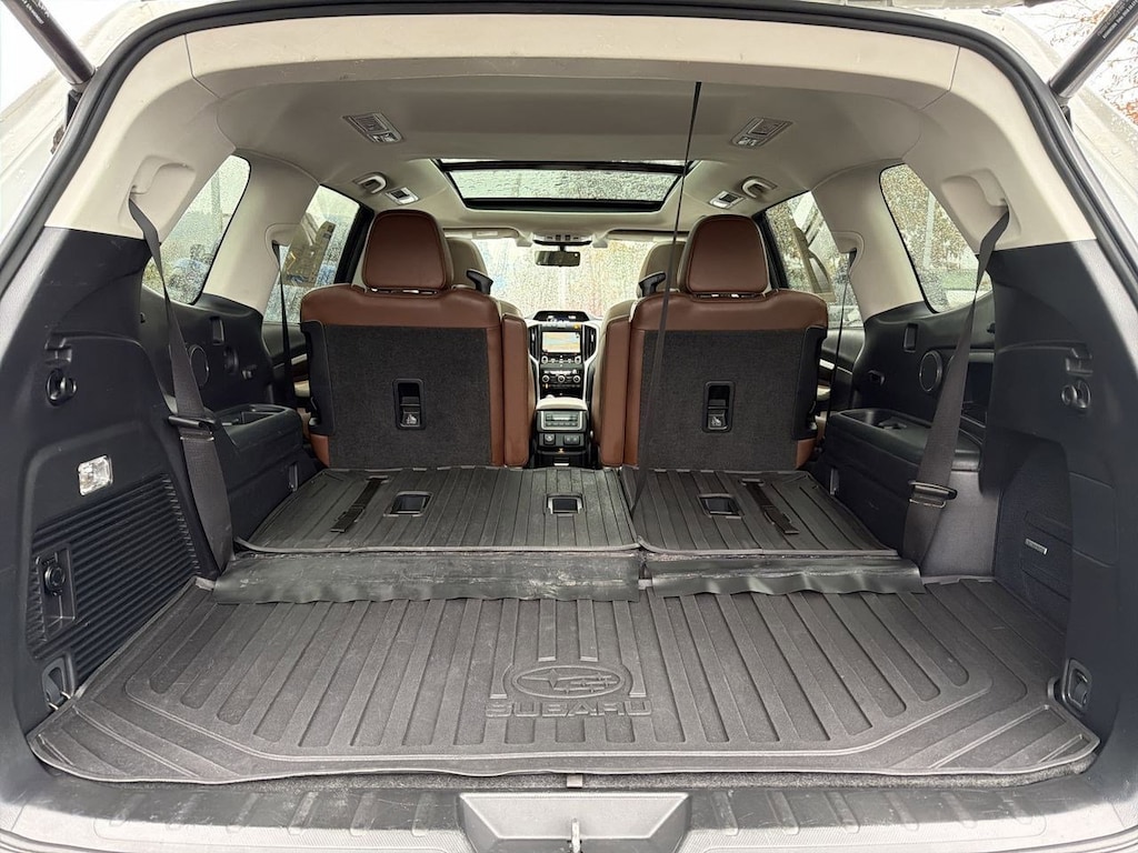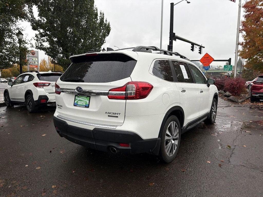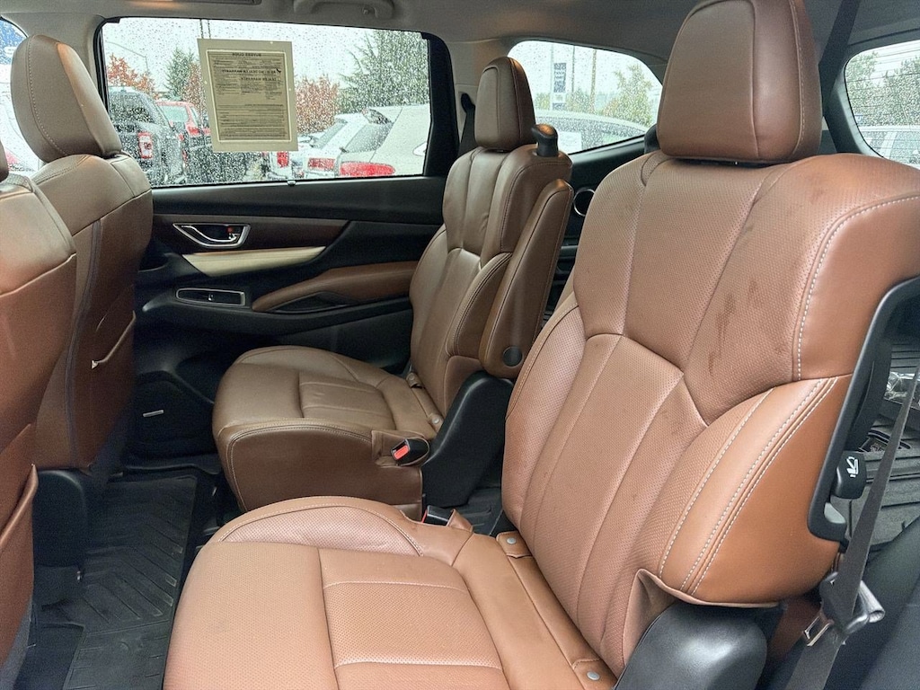 14 Speakers, 20 Alloy Wheels, 3rd row seats: bench, 4-Wheel Disc Brakes, ABS brakes, Aero Crossbar Set, Air Conditioning, All-Weather Floor Liners, Alloy wheels, AM/FM radio: SiriusXM, Auto High-beam Headlights, Auto-Dimming Exterior Mirror w/Approach Light, Auto-dimming Rear-View mirror, Automatic temperature control, Axle Ratio: 4.44, Brake assist, Bumpers: body-color, Cargo Tray, CD player, Compass, Delay-off headlights, Driver door bin, Driver vanity mirror, Dual front impact airbags, Dual front side impact airbags, Electronic Stability Control, Emergency communication system: STARLINK Safety and Security, Exterior Parking Camera Rear, Four wheel independent suspension, Front anti-roll bar, Front Bucket Seats, Front Center Armrest, Front dual zone A/C, Front fog lights, Front reading lights, Fully automatic headlights, Garage door transmitter: HomeLink, harman/kardonî Speakers, Heated & Ventilated Front Bucket Seats, Heated door mirrors, Heated front seats, Heated rear seats, Heated steering wheel, Illuminated entry, Knee airbag, Low tire pressure warning, Memory seat, Navigation System, Occupant sensing airbag, Outside temperature display, Overhead airbag, Overhead console, Panic alarm, Passenger door bin, Passenger vanity mirror, Perforated Leather-Trimmed Upholstery, Popular Package #3, Power door mirrors, Power driver seat, Power Liftgate, Power moonroof, Power passenger seat, Power steering, Power windows, Radio data system, Radio: Subaru STARLINK 8.0 Multimedia Nav System, Rain sensing wipers, Rear air conditioning, Rear anti-roll bar, Rear Bumper Cover, Rear reading lights, Rear Seatback Protector, Rear window defroster, Rear window wiper, Remote keyless entry, Roof rack: rails only, Security system, Speed control, Splash Guards, Split folding rear seat, Spoiler, Standard Model, STARLINK/Apple CarPlay/Android Auto, Steering wheel mounted audio controls, Tachometer, Telescoping steering wheel, Tilt steering wheel, Traction control, Trip computer, Turn signal indicator mirrors, USB Charging Ports, Variably intermittent wipers, Ventilated front seats. Crystal White Pearl 2019 Subaru Ascent Touring AWD Lineartronic CVT 2.4L DOHC