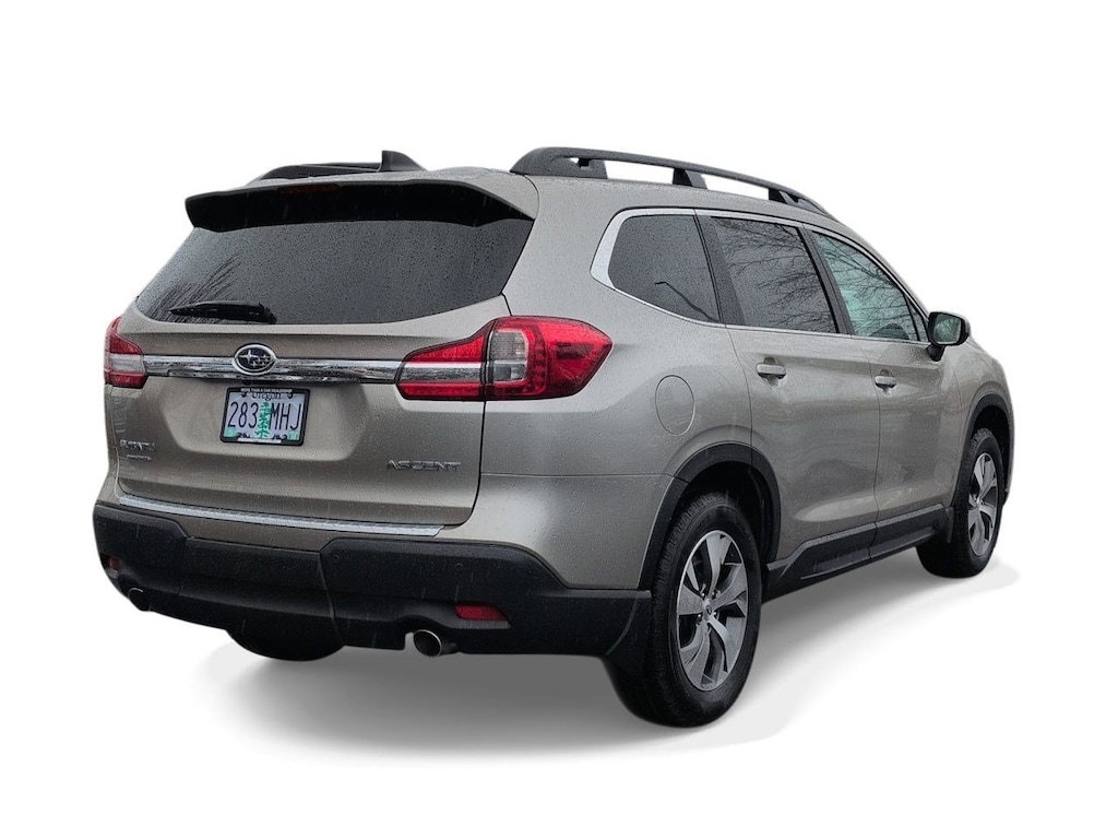 3rd row seats: bench, 4-Wheel Disc Brakes, 6 Speakers, ABS brakes, Air Conditioning, All-Weather Floor Liners, Alloy wheels, AM/FM radio: SiriusXM, Auto-Dimming Exterior Mirror w/Approach Light, Auto-Dimming Rear View Compass Mirror w/HomeLink, Automatic temperature control, Axle Ratio: 4.44, Brake assist, Bumpers: body-color, Cargo Tray, CD player, Convenience Package, Delay-off headlights, Driver door bin, Driver vanity mirror, Dual front impact airbags, Dual front side impact airbags, Electronic Stability Control, Emergency communication system: STARLINK Safety and Security (Subscription Required), Exterior Parking Camera Rear, Four wheel independent suspension, Front anti-roll bar, Front Bucket Seats, Front Center Armrest, Front dual zone A/C, Front reading lights, Fully automatic headlights, Heated door mirrors, Heated Front Bucket Seats, Heated front seats, Illuminated entry, Keyless Access w/Push-Button Start, Knee airbag, Low tire pressure warning, Occupant sensing airbag, Outside temperature display, Overhead airbag, Overhead console, Panic alarm, Passenger door bin, Passenger vanity mirror, Popular Package #2, Power door mirrors, Power driver seat, Power Rear Gate w/Automatic Close & Height Memory, Power steering, Power windows, Radio data system, Radio: Subaru STARLINK 8.0 Multimedia Plus System, Rear air conditioning, Rear anti-roll bar, Rear Bumper Cover, Rear reading lights, Rear Seatback Protector, Rear window defroster, Rear window wiper, Reclining 3rd row seat, Remote keyless entry, Reverse Automatic Braking (RAB) System, Security system, Speed control, Spill Resistant Cloth Upholstery, Splash Guards, Split folding rear seat, Spoiler, STARLINK/Apple CarPlay/Android Auto, Steering wheel mounted audio controls, Tachometer, Telescoping steering wheel, Tilt steering wheel, Traction control, Trip computer, Variably intermittent wipers, Wheels: 18 Gray Aluminum Alloy w/Machine Finish. Tungsten Metallic 2020 Subaru Ascent Premium AWD Lineartronic CVT 2.4L DOHC