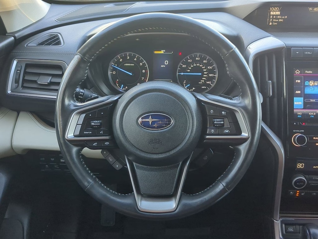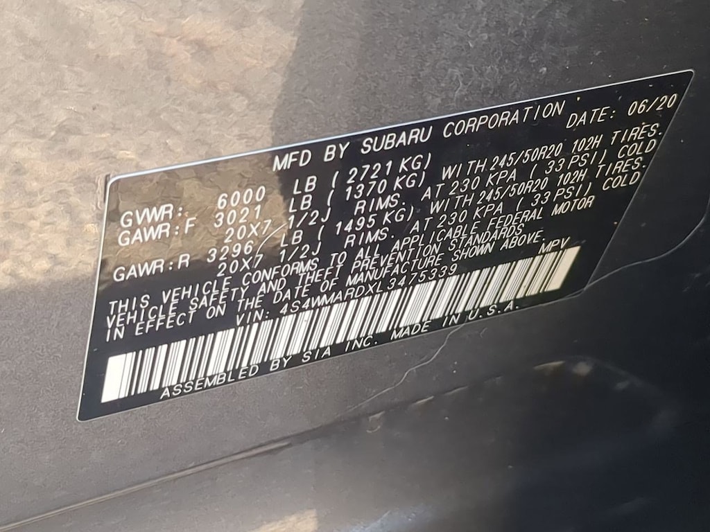 14 Speakers, 3rd row seats: bench, 4-Wheel Disc Brakes, ABS brakes, Air Conditioning, All-Weather Floor Liners, Alloy wheels, AM/FM radio: SiriusXM, Auto High-beam Headlights, Auto-Dimming Exterior Mirror w/Approach Light, Auto-dimming Rear-View mirror, Automatic temperature control, Axle Ratio: 4.44, Brake assist, Bumpers: body-color, Cargo Net, Cargo Tray, CD player, Compass, Delay-off headlights, Driver door bin, Driver vanity mirror, Dual front impact airbags, Dual front side impact airbags, Electronic Stability Control, Emergency communication system: STARLINK Safety and Security (Subscription Required), Exterior Parking Camera Rear, Four wheel independent suspension, Front anti-roll bar, Front Bucket Seats, Front Center Armrest, Front dual zone A/C, Front fog lights, Front reading lights, Fully automatic headlights, Garage door transmitter: HomeLink, harman/kardonî Speakers, Heated & Ventilated Front Bucket Seats, Heated door mirrors, Heated front seats, Heated rear seats, Heated steering wheel, Illuminated entry, Knee airbag, Low tire pressure warning, Magnetite Gray Metallic Body Side Molding, Memory seat, Navigation System, Occupant sensing airbag, Outside temperature display, Overhead airbag, Overhead console, Panic alarm, Passenger door bin, Passenger vanity mirror, Perforated Leather-Trimmed Upholstery, Power door mirrors, Power driver seat, Power Liftgate, Power moonroof, Power passenger seat, Power steering, Power windows, Radio data system, Radio: Subaru STARLINK 8.0 Multimedia Nav System, Rain sensing wipers, Rear air conditioning, Rear anti-roll bar, Rear Bumper Cover, Rear reading lights, Rear Seatback Protector, Rear window defroster, Rear window wiper, Reclining 3rd row seat, Remote keyless entry, Security system, Speed control, Split folding rear seat, Spoiler, Standard Model, STARLINK/Apple CarPlay/Android Auto, Steering wheel mounted audio controls, Tachometer, Telescoping steering wheel, Tilt steering wheel, Traction control, Trip computer, Turn signal indicator mirrors, Variably intermittent wipers, Ventilated front seats, Wheels: 20 Dk Gray Aluminum Alloy w/Machine Finish. Magnetite Gray Metallic 2020 Subaru Ascent Touring AWD Lineartronic CVT 2.4L DOHC