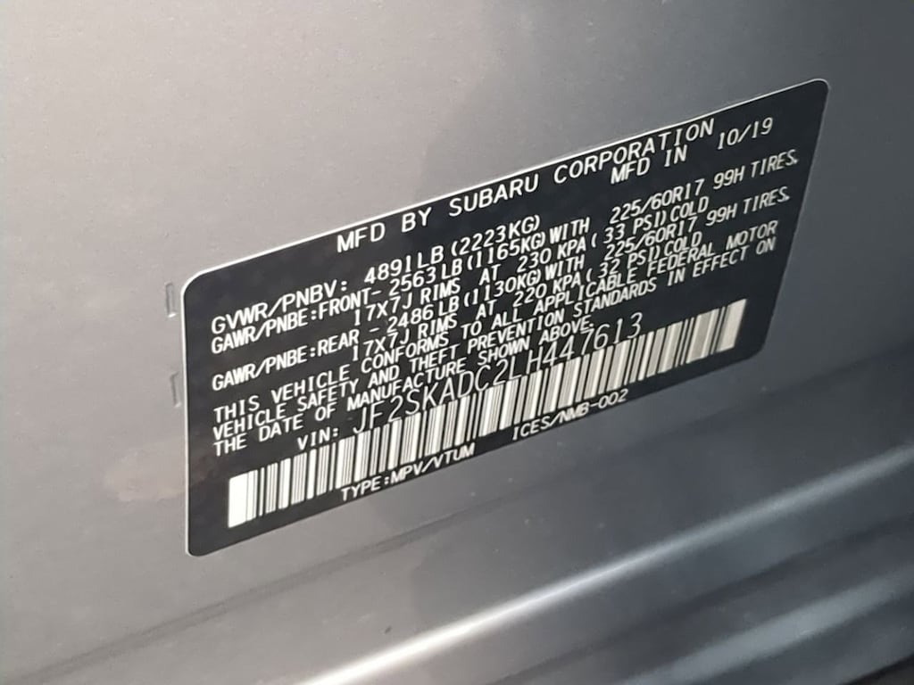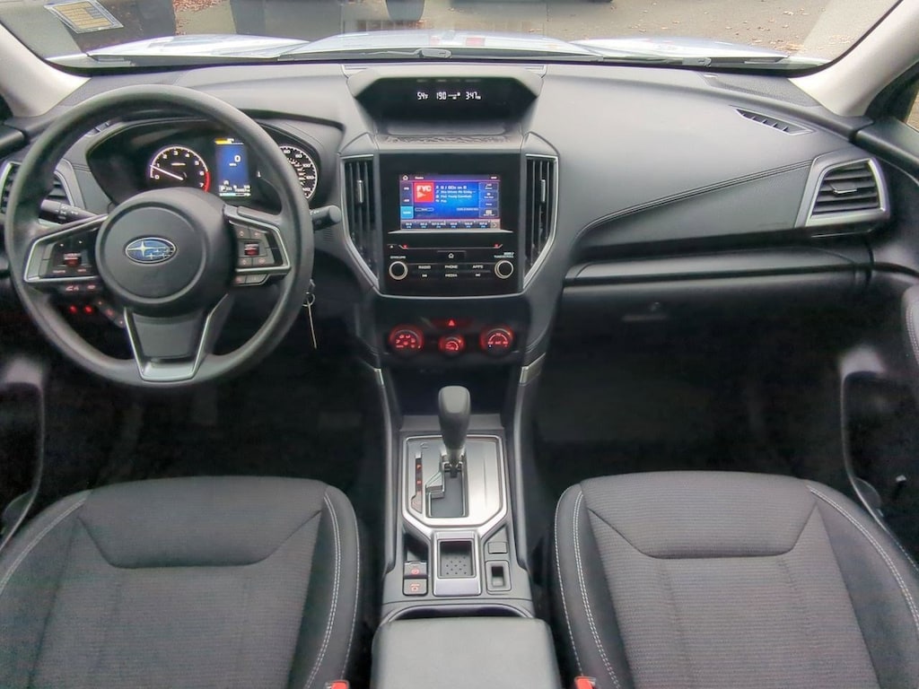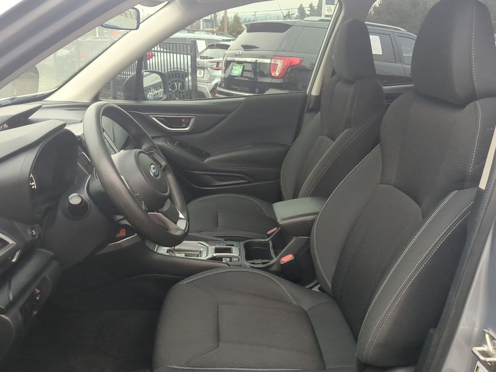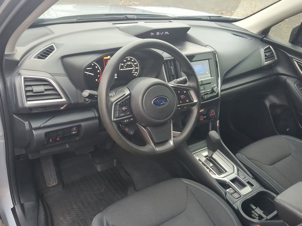 3.70 Axle Ratio, 4 Speakers, 4-Wheel Disc Brakes, ABS brakes, Air Conditioning, All-Weather Floor Liners, Alloy Wheel Package, AM/FM radio: SiriusXM, Automatic temperature control, Black Finish Roof Rails, Brake assist, Bumpers: body-color, Cargo Tray, CD player, Cloth Upholstery, Driver door bin, Driver vanity mirror, Dual front impact airbags, Dual front side impact airbags, Electronic Stability Control, Exterior Parking Camera Rear, Four wheel independent suspension, Front anti-roll bar, Front Bucket Seats, Front Center Armrest, Front reading lights, Fully automatic headlights, Illuminated entry, Knee airbag, Low tire pressure warning, Occupant sensing airbag, Outside temperature display, Overhead airbag, Overhead console, Panic alarm, Passenger door bin, Passenger vanity mirror, Power door mirrors, Power steering, Power windows, Radio data system, Radio: Subaru Starlink 6.5 Multimedia Plus System, Rear anti-roll bar, Rear Seatback Protector, Rear window defroster, Rear window wiper, Remote keyless entry, Security system, Speed control, Speed-sensing steering, Split folding rear seat, STARLINK/Apple CarPlay/Android Auto, Steering wheel mounted audio controls, Tachometer, Telescoping steering wheel, Tilt steering wheel, Traction control, Trip computer, Variably intermittent wipers, Wheels: 17 x 7.0J Silver Finish Aluminum Alloy, Wheels: 17 x 7.0J Steel w/Full Wheel Cover. Ice Silver Metallic 2020 Subaru Forester AWD Lineartronic CVT 2.5L 4-Cylinder DOHC 16V VVT