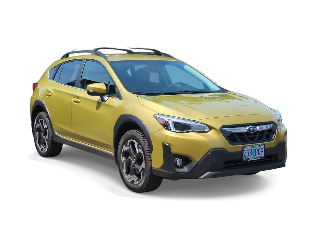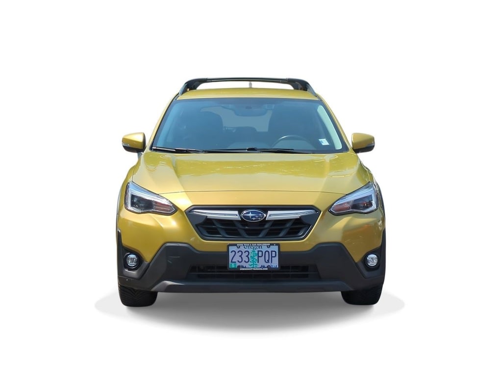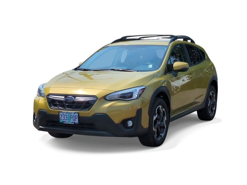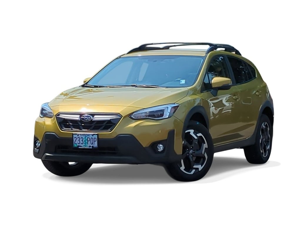 3.70 Axle Ratio, 4-Wheel Disc Brakes, 6 Speakers, ABS brakes, Aero Crossbar Set, Air Conditioning, All-Weather Floor Liners, Alloy wheels, AM/FM radio: SiriusXM, Anti-whiplash front head restraints, Auto High-beam Headlights, Auto-Dimming Exterior Mirror w/Approach Light, Auto-Dimming Mirror w/Compass & HomeLink, Automatic temperature control, Brake assist, Bumpers: body-color, CD player, Driver door bin, Driver vanity mirror, Dual front impact airbags, Dual front side impact airbags, Electronic Stability Control, Emergency communication system: STARLINK Safety and Security (Subscription Required), Exterior Parking Camera Rear, Four wheel independent suspension, Front anti-roll bar, Front Bucket Seats, Front Center Armrest, Front fog lights, Front reading lights, Fully automatic headlights, Heated door mirrors, Heated Front Bucket Seats, Heated front seats, Illuminated entry, Knee airbag, Leather-Trimmed Upholstery, Low tire pressure warning, Map & Dome Lights LED Upgrade, Occupant sensing airbag, Outside temperature display, Overhead airbag, Overhead console, Panic alarm, Passenger door bin, Passenger vanity mirror, Popular Package #4, Power door mirrors, Power driver seat, Power steering, Power windows, Radio data system, Radio: Subaru STARLINK 8.0 Multimedia Plus System, Rear anti-roll bar, Rear Bumper Cover, Rear seat center armrest, Rear Seatback Protector, Rear window defroster, Rear window wiper, Remote keyless entry, Security system, Speed control, Speed-sensing steering, Splash Guards, Split folding rear seat, Spoiler, Standard Model, STARLINK/Apple CarPlay/Android Auto, Steering wheel mounted audio controls, Subaru STARLINK Smartphone Integration, Tachometer, Telescoping steering wheel, Tilt steering wheel, Traction control, Trip computer, Turn signal indicator mirrors, Variably intermittent wipers, Wheels: 18 Alloy Machine Finish. Plasma Yellow Pearl 2021 Subaru Crosstrek Limited AWD Lineartronic CVT 2.5L DOHC