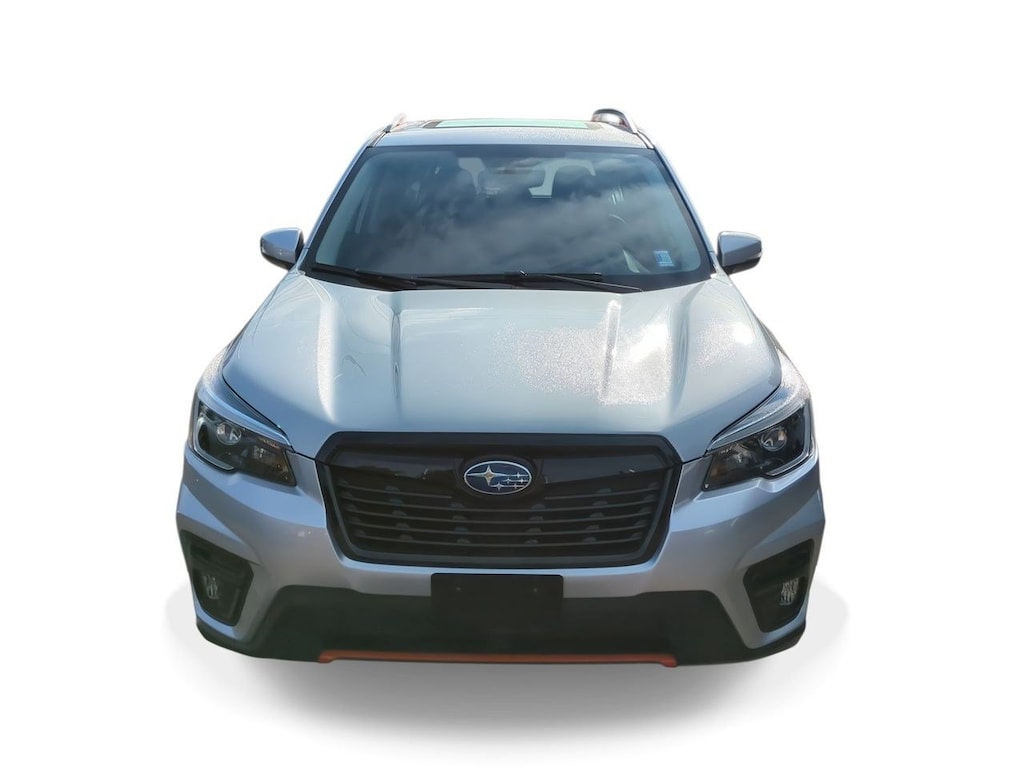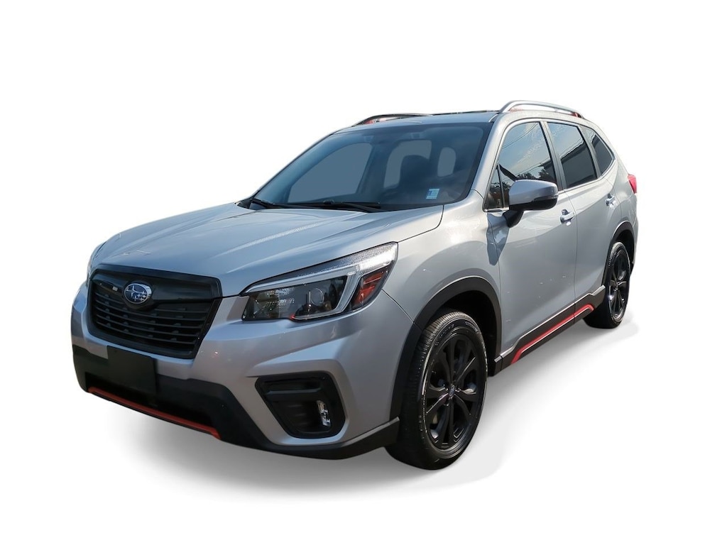 3.70 Axle Ratio, 4-Wheel Disc Brakes, 6 Speakers, ABS brakes, Aero Crossbar Set, Air Conditioning, All-Weather Floor Liners, Alloy wheels, AM/FM radio: SiriusXM, Audio System & Reverse Auto Brake & Power Rr Gate, Auto High-beam Headlights, Auto-Dimming Exterior Mirror w/Approach Lighting, Auto-Dimming Mirror w/Compass & HomeLink, Automatic temperature control, Brake assist, Bumpers: body-color, Cargo Net, CD player, Driver door bin, Driver vanity mirror, Dual front impact airbags, Dual front side impact airbags, Electronic Stability Control, Emergency communication system: STARLINK Safety and Security (Subscription Required), Exterior Parking Camera Rear, Four wheel independent suspension, Front anti-roll bar, Front Bucket Seats, Front Center Armrest, Front fog lights, Front reading lights, Fully automatic headlights, harman kardon 576W Amp & Speaker System, Heated door mirrors, Heated Front Bucket Seats, Heated front seats, Illuminated entry, Knee airbag, Leather Shift Knob, Low tire pressure warning, Occupant sensing airbag, Outside temperature display, Overhead airbag, Overhead console, Paddle-Shift Control Switches, Panic alarm, Passenger door bin, Passenger vanity mirror, Popular Package #2, Power door mirrors, Power driver seat, Power moonroof: Panoramic, Power Rear Gate w/Automatic Close & Height Memory, Power steering, Power windows, Radio data system, Radio: Subaru Starlink 6.5 Multimedia Plus System, Radio: Subaru Starlink 8.0 Multimedia Plus System, Rear anti-roll bar, Rear Bumper Cover, Rear seat center armrest, Rear Seatback Protector, Rear window defroster, Rear window wiper, Remote keyless entry, Reverse Automatic Braking System (RAB), Roof rack: rails only, Security system, Speed control, Speed-sensing steering, Split folding rear seat, Spoiler, Sport Cloth Upholstery, STARLINK/Apple CarPlay/Android Auto, Steering wheel mounted audio controls, Tachometer, Telescoping steering wheel, Tilt steering wheel, Traction control, Trip computer, Turn signal indicator mirrors, Variably intermittent wipers, Wheels: 18 x 7.0J Black Finish Aluminum Alloy. Ice Silver Metallic 2021 Subaru Forester Sport AWD Lineartronic CVT 2.5L 4-Cylinder DOHC 16V VVT