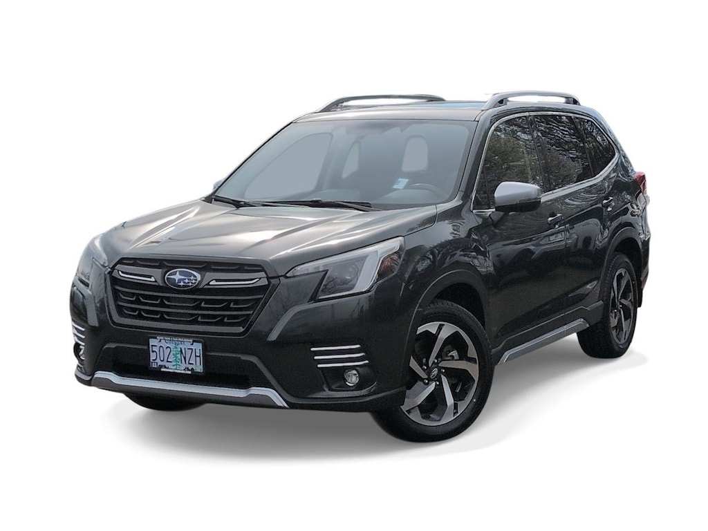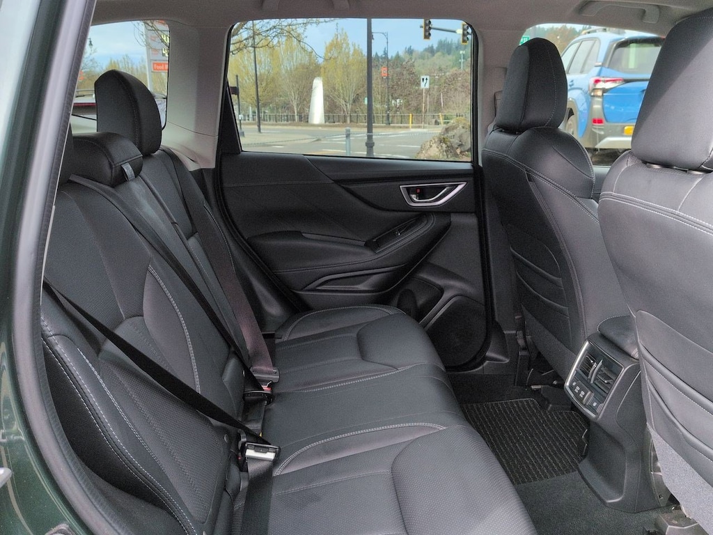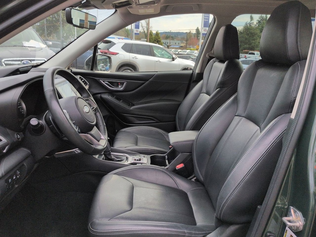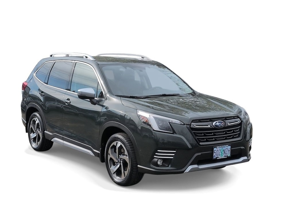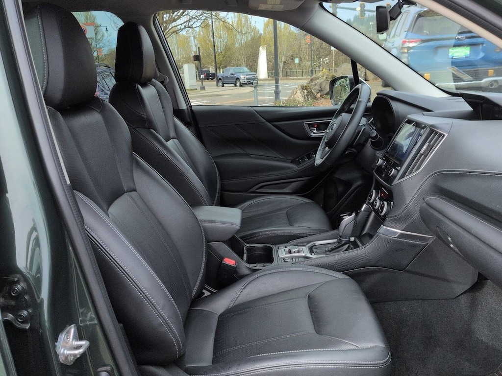 3.70 Axle Ratio, 4-Wheel Disc Brakes, 9 Speakers, ABS brakes, Air Conditioning, Alloy wheels, AM/FM radio: SiriusXM, Anti-whiplash front head restraints, Auto High-beam Headlights, Auto-Dimming Exterior Mirror w/Approach Lighting, Auto-Dimming Mirror w/Compass & HomeLink, Automatic temperature control, Brake assist, Bumpers: body-color, Cargo Net, CD player, Driver door bin, Driver vanity mirror, Dual front impact airbags, Dual front side impact airbags, Electronic Stability Control, Emergency communication system: STARLINK Safety and Security (Subscription Required), Exterior Parking Camera Rear, Four wheel independent suspension, Front anti-roll bar, Front Bucket Seats, Front Center Armrest, Front dual zone A/C, Front fog lights, Front reading lights, Fully automatic headlights, harman/kardon 576W Amp & Speaker System, harman/kardonî Speakers, Heated door mirrors, Heated Front Bucket Seats, Heated front seats, Heated rear seats, Heated steering wheel, HVAC memory, Illuminated entry, Knee airbag, Leather Shift Knob, Low tire pressure warning, Memory seat, Navigation System, Occupant sensing airbag, Outside temperature display, Overhead airbag, Overhead console, Panic alarm, Passenger door bin, Passenger vanity mirror, Perforated Leather-Trimmed Upholstery, Power door mirrors, Power driver seat, Power Liftgate, Power moonroof: Panoramic, Power passenger seat, Power steering, Power windows, Premium audio system: harman/kardon, Radio data system, Radio: Subaru Starlink 8.0 Multimedia Nav System, Rear anti-roll bar, Rear seat center armrest, Rear Seatback Protector, Rear window defroster, Rear window wiper, Remote keyless entry, Roof rack: rails only, Security system, Speed control, Speed-sensing steering, Splash Guards, Split folding rear seat, Spoiler, Standard Model, STARLINK/Apple CarPlay/Android Auto, Steering wheel mounted audio controls, Tachometer, Telescoping steering wheel, Tilt steering wheel, Traction control, Trip computer, Turn signal indicator mirrors, Variably intermittent wipers, Wheels: 18 x 7.0J Dark Gray Machine Finish Alloy. Cascade Green Silica 2022 Subaru Forester Touring AWD Lineartronic CVT 2.5L 4-Cylinder DOHC 16V