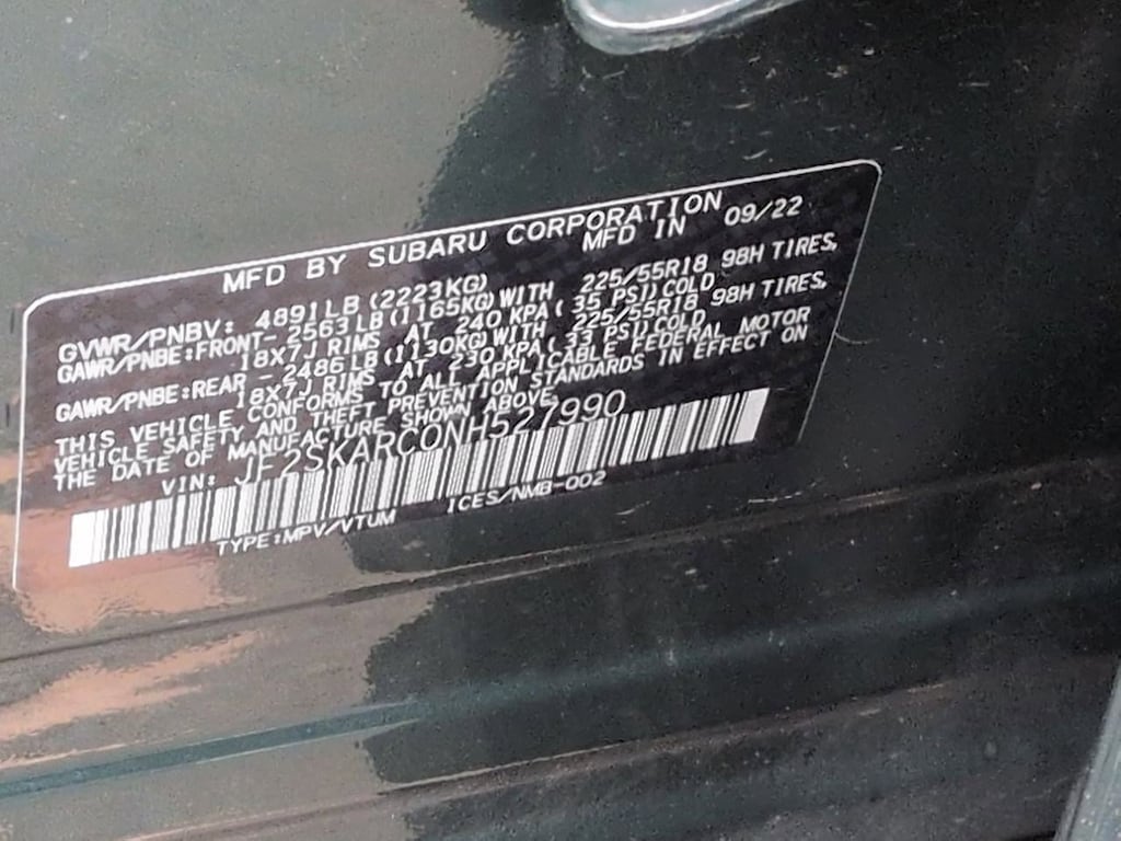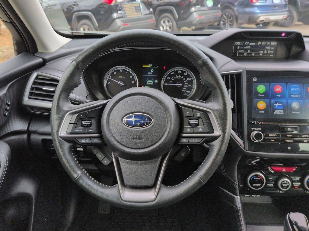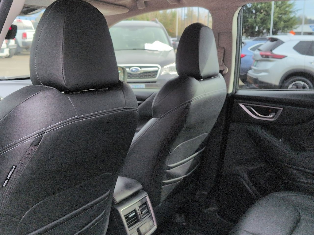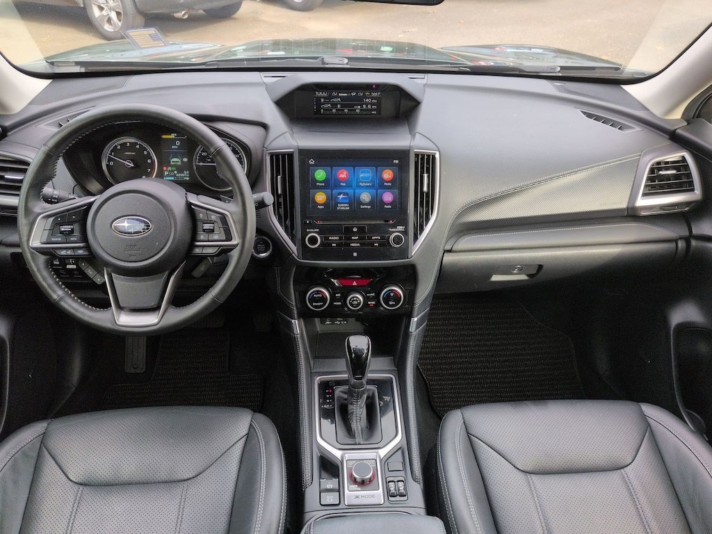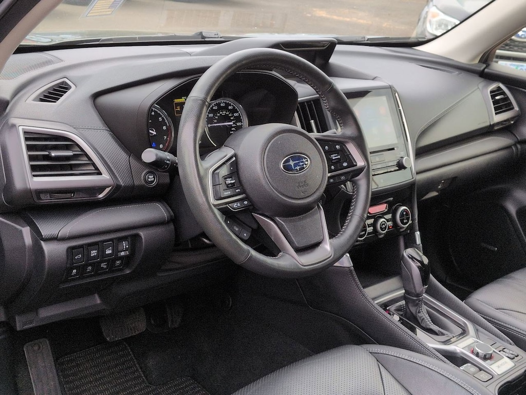 3.70 Axle Ratio, 4-Wheel Disc Brakes, 9 Speakers, ABS brakes, Air Conditioning, Alloy wheels, AM/FM radio: SiriusXM, Anti-whiplash front head restraints, Auto High-beam Headlights, Auto-Dimming Exterior Mirror w/Approach Lighting, Auto-Dimming Mirror w/Compass & HomeLink, Automatic temperature control, Brake assist, Bumpers: body-color, Cargo Net, CD player, Driver door bin, Driver vanity mirror, Dual front impact airbags, Dual front side impact airbags, Electronic Stability Control, Emergency communication system: STARLINK Safety and Security (Subscription Required), Exterior Parking Camera Rear, Four wheel independent suspension, Front anti-roll bar, Front Bucket Seats, Front Center Armrest, Front dual zone A/C, Front fog lights, Front reading lights, Fully automatic headlights, harman/kardon 576W Amp & Speaker System, harman/kardonî Speakers, Heated door mirrors, Heated Front Bucket Seats, Heated front seats, Heated rear seats, Heated steering wheel, HVAC memory, Illuminated entry, Knee airbag, Leather Shift Knob, Low tire pressure warning, Memory seat, Navigation System, Occupant sensing airbag, Outside temperature display, Overhead airbag, Overhead console, Panic alarm, Passenger door bin, Passenger vanity mirror, Perforated Leather-Trimmed Upholstery, Power door mirrors, Power driver seat, Power Liftgate, Power moonroof: Panoramic, Power passenger seat, Power steering, Power windows, Premium audio system: harman/kardon, Radio data system, Radio: Subaru Starlink 8.0 Multimedia Nav System, Rear anti-roll bar, Rear seat center armrest, Rear Seatback Protector, Rear window defroster, Rear window wiper, Remote keyless entry, Roof rack: rails only, Security system, Speed control, Speed-sensing steering, Splash Guards, Split folding rear seat, Spoiler, Standard Model, STARLINK/Apple CarPlay/Android Auto, Steering wheel mounted audio controls, Tachometer, Telescoping steering wheel, Tilt steering wheel, Traction control, Trip computer, Turn signal indicator mirrors, Variably intermittent wipers, Wheels: 18 x 7.0J Dark Gray Machine Finish Alloy. Cascade Green Silica 2022 Subaru Forester Touring AWD Lineartronic CVT 2.5L 4-Cylinder DOHC 16V