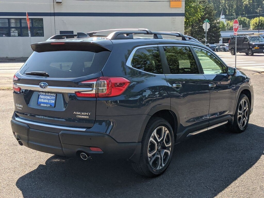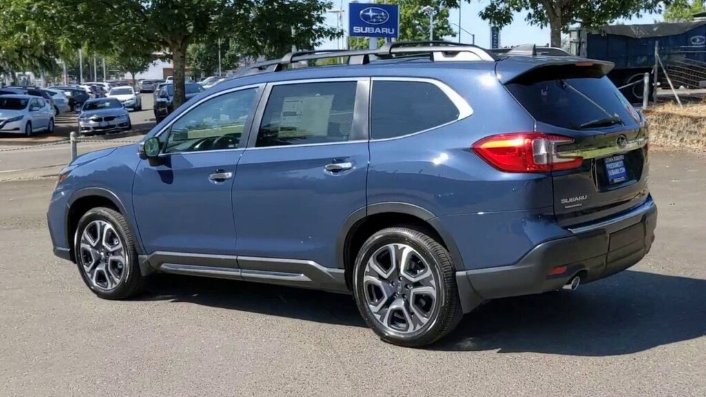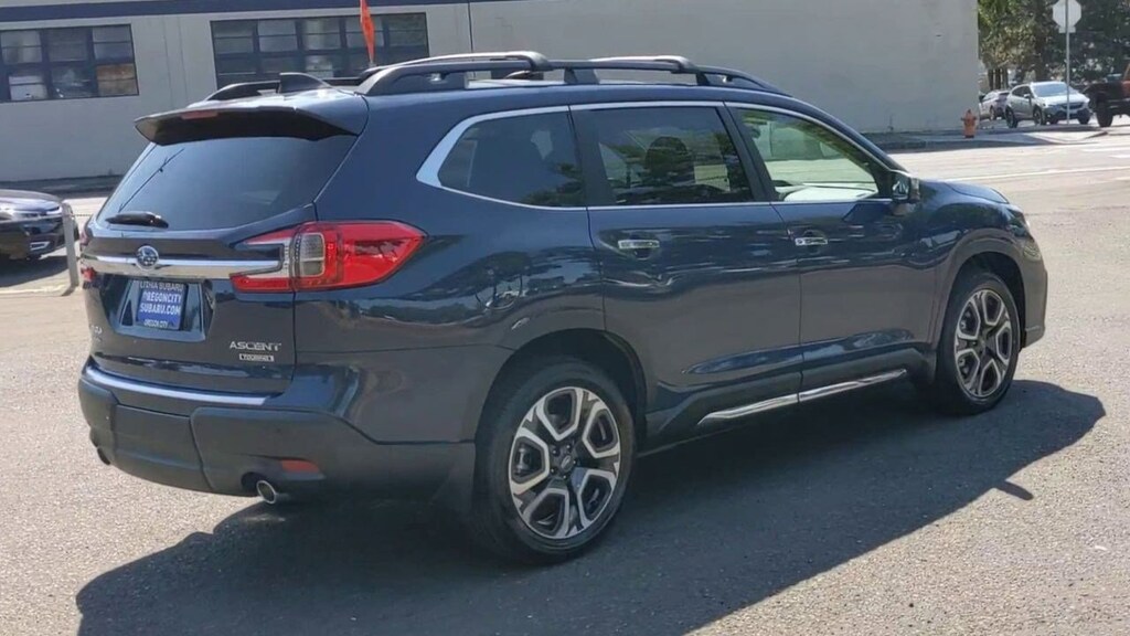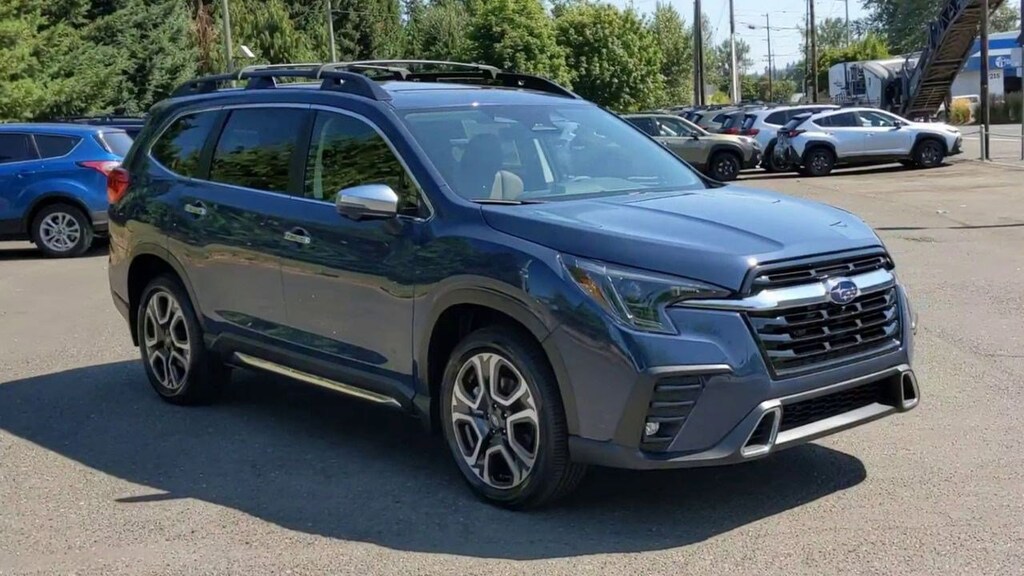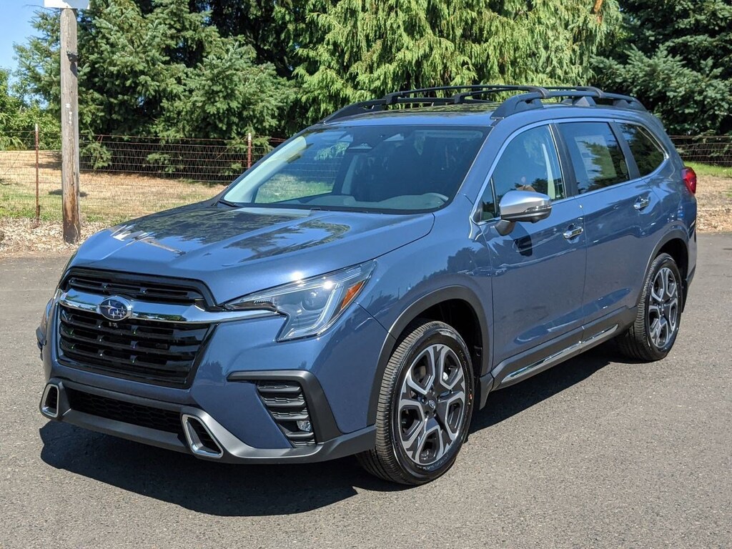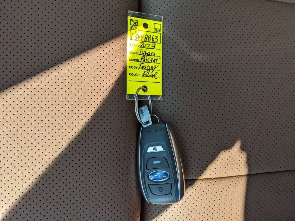 14 Speakers, 3rd row seats: bench, 4-Wheel Disc Brakes, ABS brakes, Aero Crossbar Set, Air Conditioning, All-Weather Floor Liners, Alloy wheels, AM/FM radio: SiriusXM, Auto High-beam Headlights, Auto-Dimming Exterior Mirror w/Approach Light, Auto-dimming Rear-View mirror, Automatic temperature control, Axle Ratio: 4.44, Brake assist, Bumpers: body-color, Cargo Tray, Compass, Delay-off headlights, Driver door bin, Driver vanity mirror, Dual front impact airbags, Dual front side impact airbags, Electronic Stability Control, Emergency communication system: STARLINK Safety and Security (Subscription Required), Four wheel independent suspension, Front anti-roll bar, Front Bucket Seats, Front Center Armrest, Front dual zone A/C, Front fog lights, Front reading lights, Fully automatic headlights, Garage door transmitter: HomeLink, harman/kardonî Speakers, Heated & Ventilated Front Bucket Seats, Heated door mirrors, Heated front seats, Heated rear seats, Heated steering wheel, HVAC memory, Illuminated entry, Knee airbag, Leather Shift Knob, Leather steering wheel, Low tire pressure warning, Map & Reading Lights LED Upgrade - 6 Bulb Kit, Memory seat, Navigation System, Occupant sensing airbag, Outside temperature display, Overhead airbag, Overhead console, Panic alarm, Passenger door bin, Passenger vanity mirror, Perforated Nappa Leather-Trimmed Upholstery, Popular Package #2A, Power door mirrors, Power driver seat, Power Liftgate, Power moonroof, Power passenger seat, Power steering, Power windows, Radio data system, Radio: Subaru STARLINK 11.6 Multimedia Nav System, Rain sensing wipers, Rear air conditioning, Rear anti-roll bar, Rear Bumper Cover, Rear reading lights, Rear window defroster, Rear window wiper, Reclining 3rd row seat, Remote keyless entry, Security system, Speed control, Speed-sensing steering, Splash Guards, Split folding rear seat, Spoiler, Standard Model, STARLINK/Apple CarPlay/Android Auto, Steering wheel mounted audio controls, Tachometer, Telescoping steering wheel, Tilt steering wheel, Traction control, Trip computer, Turn signal indicator mirrors, Variably intermittent wipers, Ventilated front seats, Wheels: 20 x 7.5 J Dk Gray Alloy w/Machine Finish. Cosmic Blue Pearl 2023 Subaru Ascent Touring AWD Lineartronic CVT 2.4L 4-Cylinder DOHC 16V