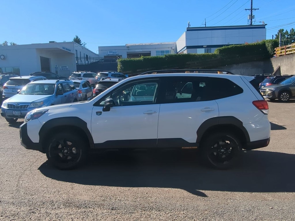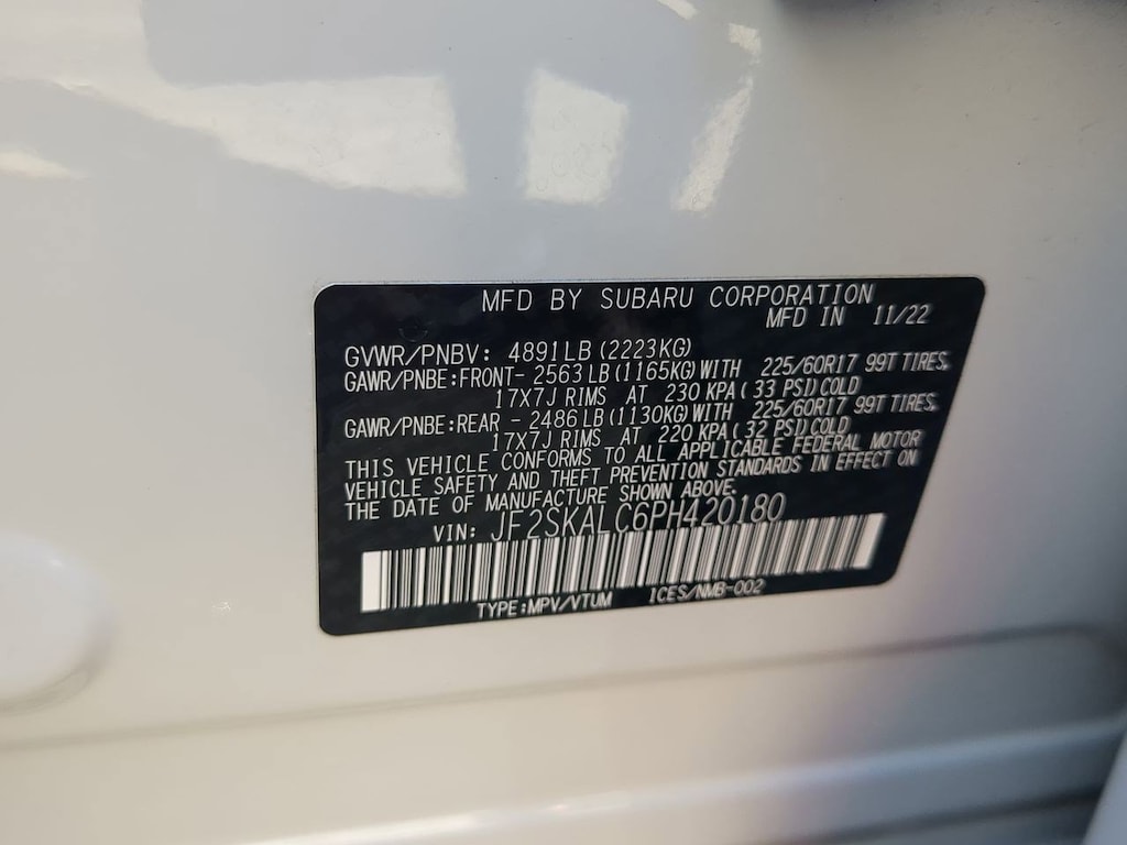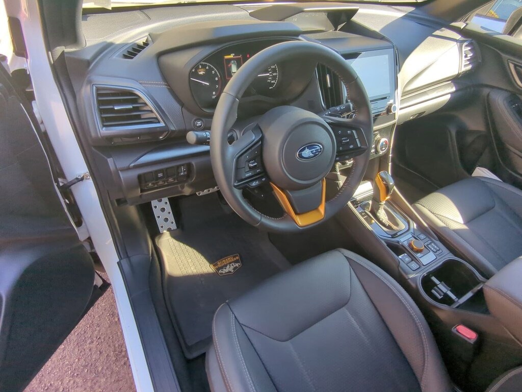 4-Wheel Disc Brakes, 4.11 Axle Ratio, 6 Speakers, ABS brakes, Air Conditioning, Alloy wheels, AM/FM radio: SiriusXM, Anti-whiplash front head restraints, Auto High-beam Headlights, Automatic temperature control, Brake assist, Bumpers: body-color, CD player, Driver door bin, Driver vanity mirror, Dual front impact airbags, Dual front side impact airbags, Electronic Stability Control, Emergency communication system: STARLINK Safety and Security (Subscription Required), Exterior Parking Camera Rear, Four wheel independent suspension, Front anti-roll bar, Front Bucket Seats, Front Center Armrest, Front dual zone A/C, Front fog lights, Front reading lights, Fully automatic headlights, Heated door mirrors, Heated Front Bucket Seats, Heated front seats, Illuminated entry, Knee airbag, Leather Shift Knob, Low tire pressure warning, Occupant sensing airbag, Outside temperature display, Overhead airbag, Overhead console, Panic alarm, Passenger door bin, Passenger vanity mirror, Power door mirrors, Power driver seat, Power moonroof: Panoramic, Power steering, Power windows, Radio data system, Radio: Subaru Starlink 8.0 Multimedia Plus System, Rear anti-roll bar, Rear seat center armrest, Rear window defroster, Rear window wiper, Remote keyless entry, Roof rack: rails only, Security system, Speed control, Speed-sensing steering, Split folding rear seat, Spoiler, Standard Model, STARLINK/Apple CarPlay/Android Auto, Steering wheel mounted audio controls, Tachometer, Telescoping steering wheel, Textured StarTex Upholstery, Tilt steering wheel, Traction control, Trip computer, Turn signal indicator mirrors, Variably intermittent wipers, Wheels: 17 x 7.0 J Matte Black Finish Alum-Alloy. Crystal White Pearl 2023 Subaru Forester Wilderness AWD Lineartronic CVT 2.5L 4-Cylinder DOHC 16V