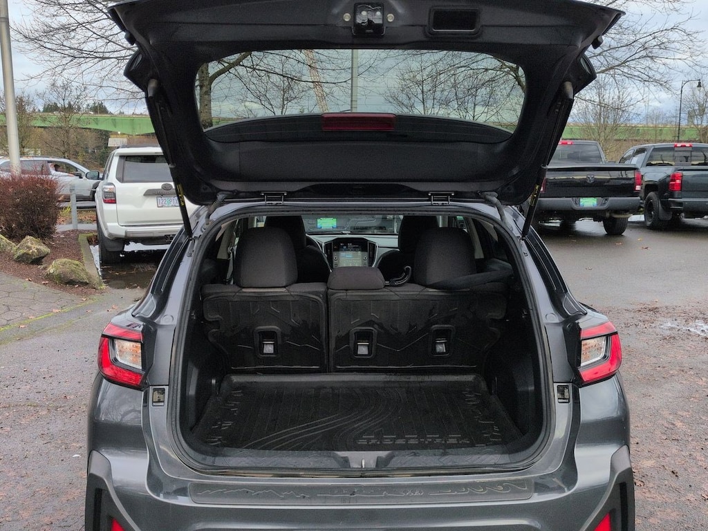 10-Way Power Drivers Seat, 3.90 Axle Ratio, 4-Wheel Disc Brakes, 6 Speakers, ABS brakes, Air Conditioning, All-Weather Floor Liners, All-Weather Package, Alloy wheels, AM/FM radio: SiriusXM, Anti-whiplash front head restraints, Auto High-beam Headlights, Auto-Dimming Mirror w/Compass & HomeLink, Automatic temperature control, Blind Spot Detection w/Rear Cross-Traffic Alert, Brake assist, BSD/RCTA & Moonrf & All Weather Pkg & Pwr Dr. Seat, Bumpers: body-color, Driver door bin, Driver vanity mirror, Dual front impact airbags, Dual front side impact airbags, Electronic Stability Control, Emergency communication system: STARLINK Safety and Security (Subscription Required), Exterior Parking Camera Rear, Four wheel independent suspension, Front anti-roll bar, Front Bucket Seats, Front Center Armrest, Front dual zone A/C, Front fog lights, Front reading lights, Fully automatic headlights, Heated Exterior Mirrors, Heated Front Seats, Heated Wipers, Illuminated entry, Knee airbag, LED Upgrade, Low tire pressure warning, Occupant sensing airbag, Outside temperature display, Overhead airbag, Overhead console, Panic alarm, Passenger door bin, Passenger vanity mirror, Power door mirrors, Power Moonroof, Power steering, Power windows, Premium Cloth Upholstery, Radio data system, Radio: Subaru STARLINK 11.6 Multimedia Plus Sys, Rear anti-roll bar, Rear Bumper Cover, Rear seat center armrest, Rear Seatback Protector, Rear window defroster, Rear window wiper, Remote keyless entry, Security system, Speed control, Speed-sensing steering, Splash Guards, Split folding rear seat, Spoiler, STARLINK/Apple CarPlay/Android Auto, Steering wheel mounted audio controls, Tachometer, Telescoping steering wheel, Tilt steering wheel, Traction control, Trip computer, Turn signal indicator mirrors, Variably intermittent wipers, Wheels: 17 x 7.0J Dark Gray Aluminum Alloy. Magnetite Gray Metallic 2024 Subaru Crosstrek Premium AWD Lineartronic CVT 2.0L 4-Cylinder DOHC 16V