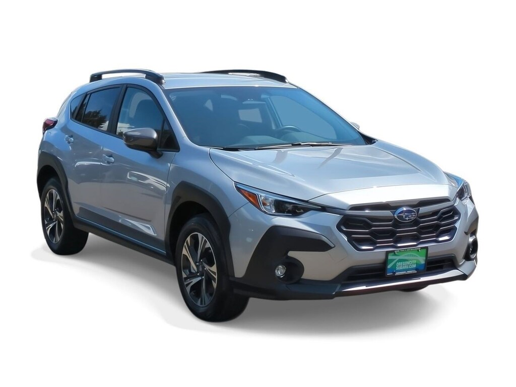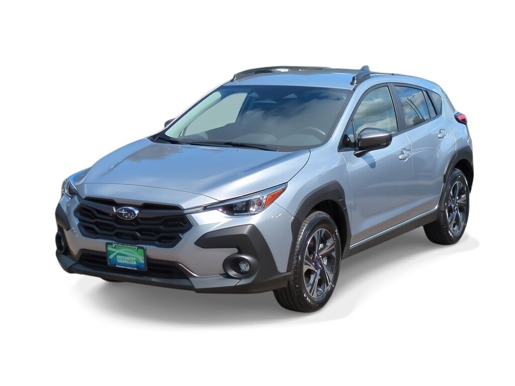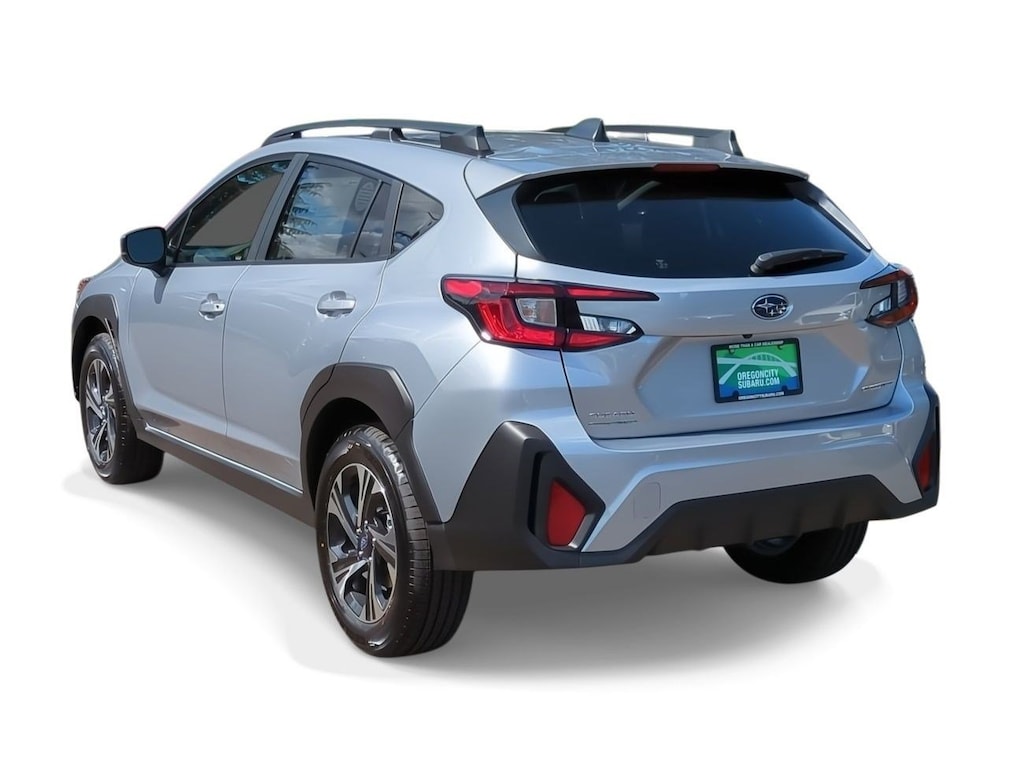 3.90 Axle Ratio, 4-Wheel Disc Brakes, 6 Speakers, ABS brakes, Air Conditioning, All-Weather Floor Liners, Alloy wheels, AM/FM radio: SiriusXM, Anti-whiplash front head restraints, Auto High-beam Headlights, Auto-Dimming Mirror w/Compass & HomeLink, Automatic temperature control, Brake assist, Bumpers: body-color, Driver door bin, Driver vanity mirror, Dual front impact airbags, Dual front side impact airbags, Electronic Stability Control, Emergency communication system: STARLINK Safety and Security (Subscription Required), Exterior Parking Camera Rear, Four wheel independent suspension, Front anti-roll bar, Front Bucket Seats, Front Center Armrest, Front dual zone A/C, Front fog lights, Front reading lights, Fully automatic headlights, Illuminated entry, Knee airbag, Low tire pressure warning, Occupant sensing airbag, Outside temperature display, Overhead airbag, Overhead console, Panic alarm, Passenger door bin, Passenger vanity mirror, Power door mirrors, Power steering, Power windows, Premium Cloth Upholstery, Radio data system, Radio: Subaru STARLINK 11.6 Multimedia Plus Sys, Rear anti-roll bar, Rear seat center armrest, Rear window defroster, Rear window wiper, Remote keyless entry, Security system, Speed control, Speed-sensing steering, Split folding rear seat, Spoiler, Standard Model, STARLINK/Apple CarPlay/Android Auto, Steering wheel mounted audio controls, Tachometer, Telescoping steering wheel, Tilt steering wheel, Traction control, Trip computer, Turn signal indicator mirrors, Variably intermittent wipers, Wheels: 17 x 7.0J Dark Gray Aluminum Alloy. Ice Silver Metallic 2024 Subaru Crosstrek Premium AWD Lineartronic CVT 2.0L 4-Cylinder DOHC 16V