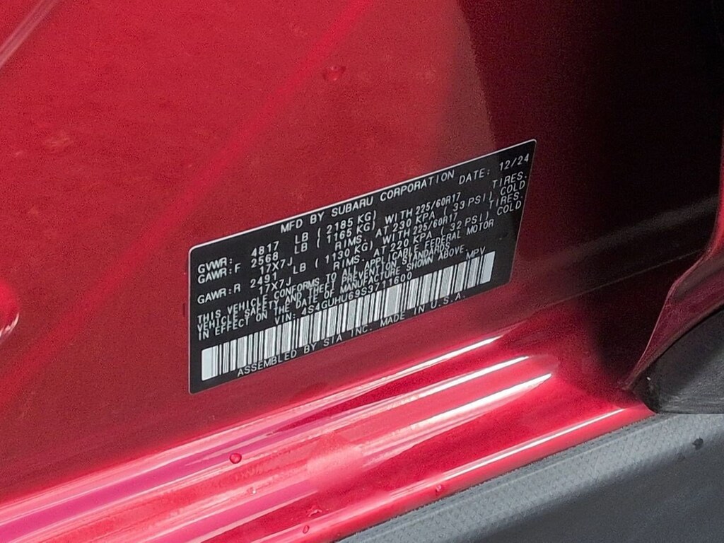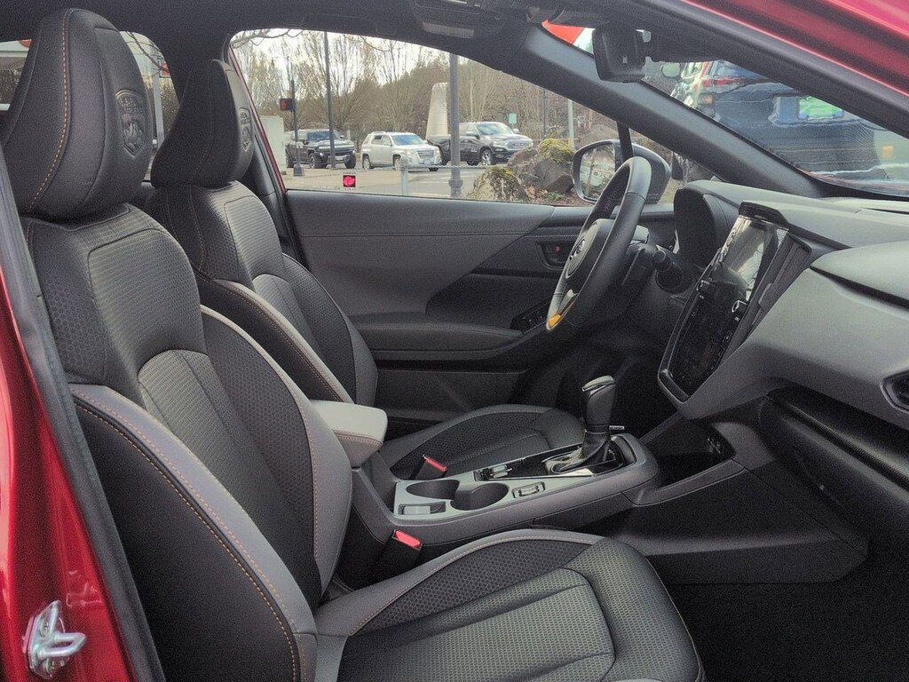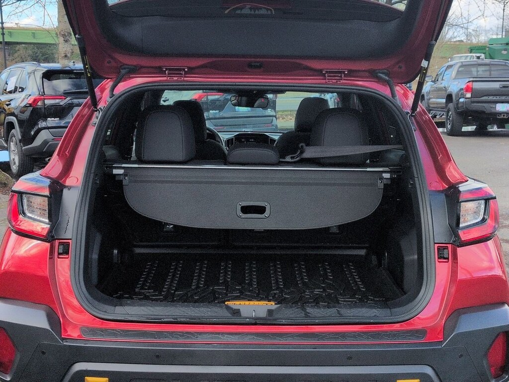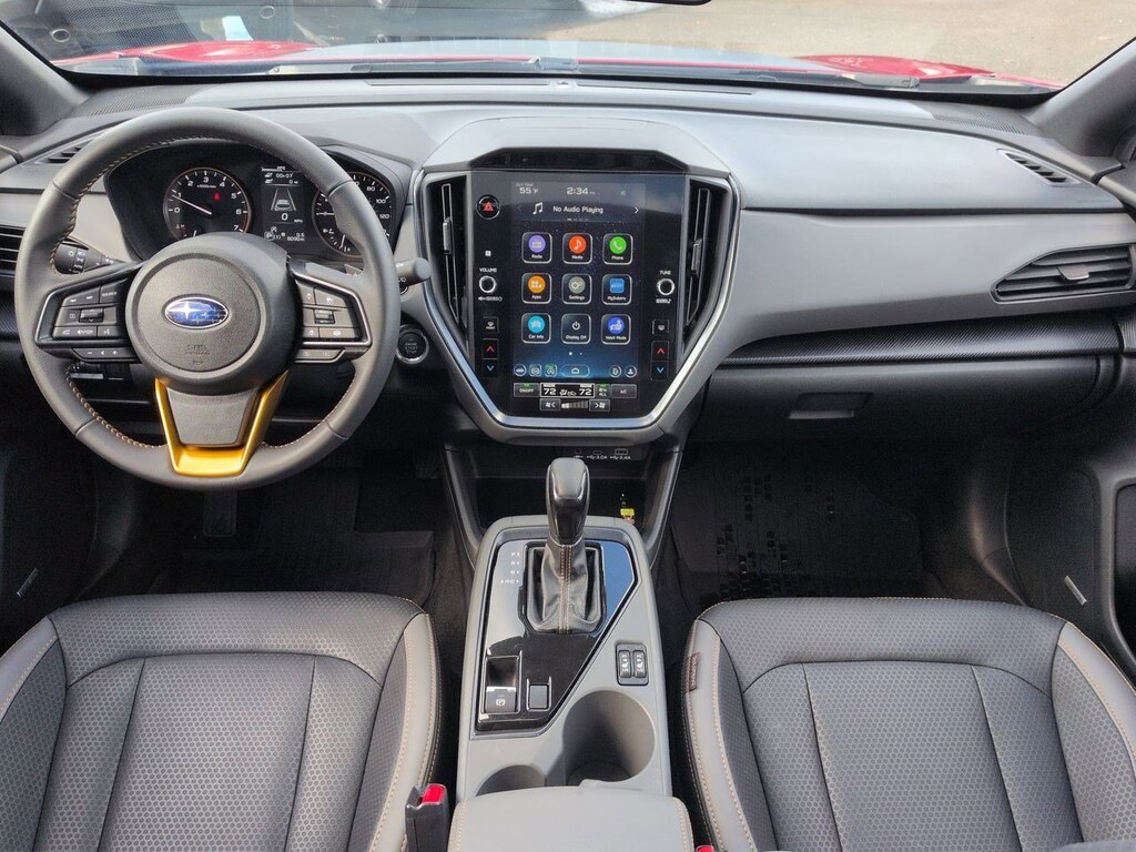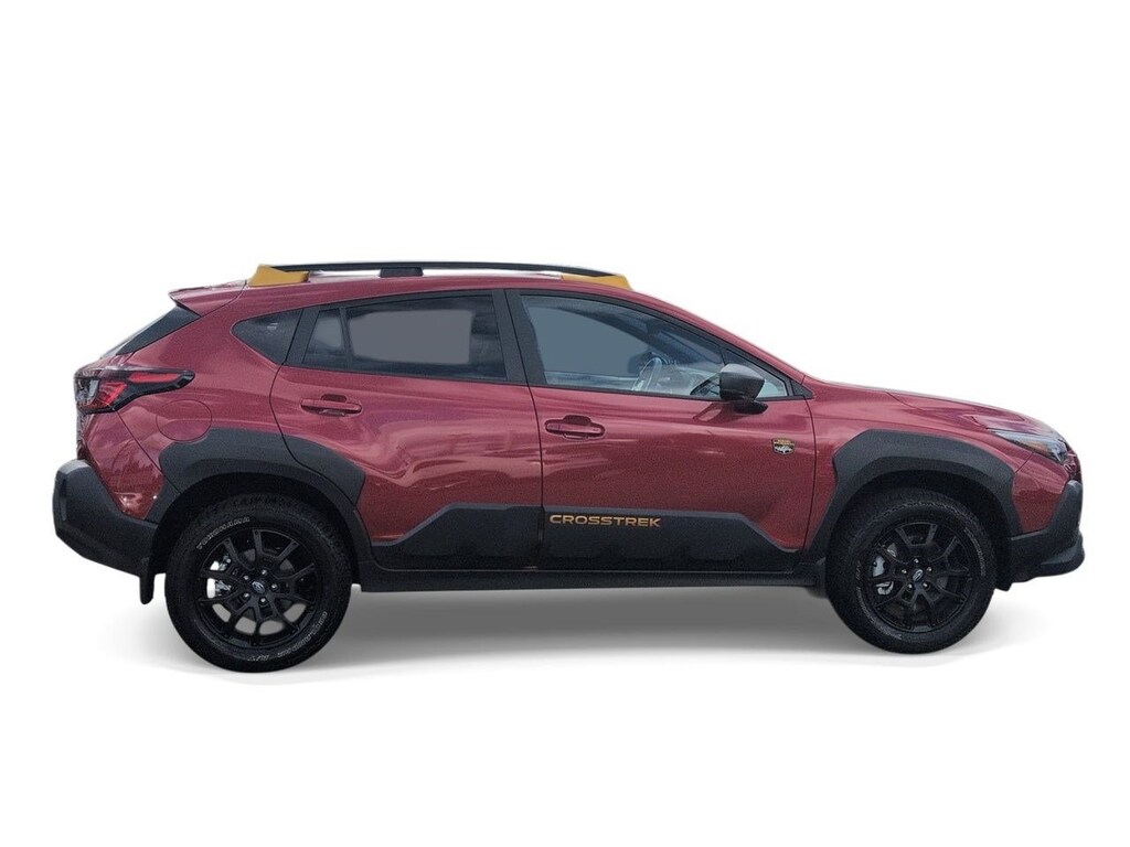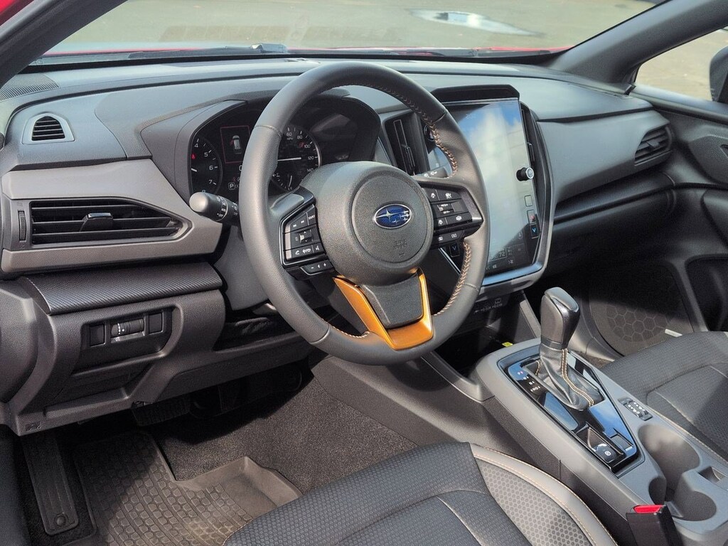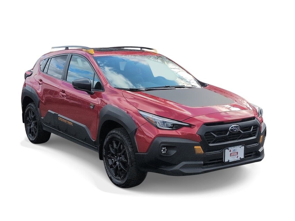 10-Way Power Drivers Seat, 4-Wheel Disc Brakes, 6 Speakers, ABS brakes, Air Conditioning, Alloy wheels, AM/FM radio: SiriusXM, Anti-whiplash front head restraints, Auto High-beam Headlights, Auto-Dimming Exterior Mirror w/Approach Light, Auto-Dimming Mirror w/Compass & HomeLink, Automatic temperature control, Brake assist, Bumpers: body-color, Door Scuff Protector - Wilderness, Driver door bin, Driver vanity mirror, Dual front impact airbags, Dual front side impact airbags, Electronic Stability Control, Emergency communication system, Exterior Parking Camera Rear, Four wheel independent suspension, Front anti-roll bar, Front Bucket Seats, Front Center Armrest, Front dual zone A/C, Front fog lights, Front reading lights, Fully automatic headlights, H/K Speaker System & Pwr Moonroof & Pwr Driver St, harman/kardon Surround Sound Speaker System, Heated door mirrors, Heated Front Bucket Seats, Heated front seats, Illuminated entry, Knee airbag, Leather Shift Knob, Leather steering wheel, LED Upgrade, Low tire pressure warning, Occupant sensing airbag, Outside temperature display, Overhead airbag, Overhead console, Panic alarm, Passenger door bin, Passenger vanity mirror, Power door mirrors, Power Moonroof, Power steering, Power windows, Radio data system, Radio: Subaru 11.6 Multimedia Plus System, Rear anti-roll bar, Rear Bumper Cover - Wilderness, Rear seat center armrest, Rear Seatback Protector, Rear window defroster, Rear window wiper, Remote keyless entry, Security system, Speed control, Speed-sensing steering, Splash Guards - Wilderness, Split folding rear seat, Spoiler, Steering wheel mounted audio controls, Tachometer, Telescoping steering wheel, Tilt steering wheel, Traction control, Trip computer, Turn signal indicator mirrors, Variably intermittent wipers, Wheels: 17 x 7.0 J Matte Black Aluminum-Alloy, Wilderness Package, Wilderness StarTex Upholstery. Lithium Red Pearl 2025 Subaru Crosstrek Wilderness AWD Lineartronic CVT 2.5L 4-Cylinder DOHC 16V