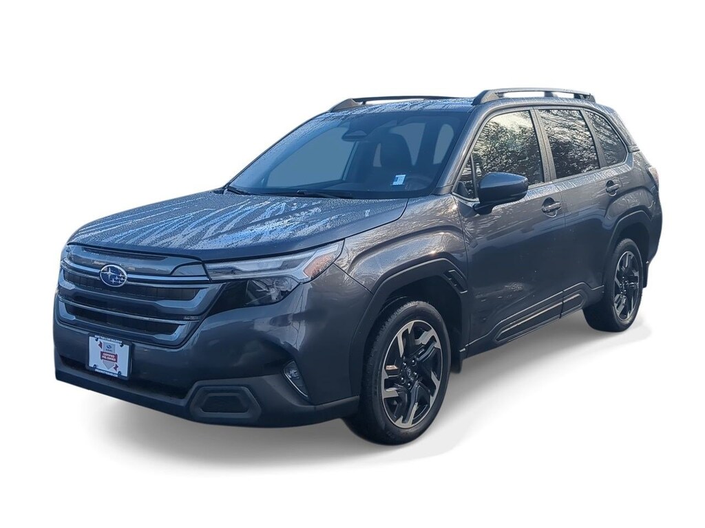 4-Wheel Disc Brakes, 6 Speakers, ABS brakes, Air Conditioning, All-Weather Floor Liners, Alloy wheels, AM/FM radio: SiriusXM with 360L, Anti-whiplash front head restraints, Auto High-beam Headlights, Auto-Dimming Exterior Mirror w/Approach Light, Auto-Dimming Mirror w/Compass & HomeLink, Automatic temperature control, Brake assist, Bumpers: body-color, Driver door bin, Driver vanity mirror, Dual front impact airbags, Dual front side impact airbags, Electronic Stability Control, Emergency communication system: MySubaru Safety (3-year free trial), Exterior Parking Camera Rear, Four wheel independent suspension, Front anti-roll bar, Front Bucket Seats, Front Center Armrest, Front dual zone A/C, Front fog lights, Front reading lights, Fully automatic headlights, harman/kardon Audio & Navigation & RAB, Heated door mirrors, Heated Front Bucket Seats, Heated front seats, Heated steering wheel, Illuminated entry, Knee airbag, Leather steering wheel, LED Upgrade, Low tire pressure warning, Occupant sensing airbag, Outside temperature display, Overhead airbag, Overhead console, Panic alarm, Passenger door bin, Passenger vanity mirror, Perforated Leather-Trimmed Upholstery, Power door mirrors, Power driver seat, Power Liftgate, Power moonroof: Panoramic, Power passenger seat, Power steering, Power windows, Radio data system, Radio: Subaru 11.6 Multimedia Navigation System, Radio: Subaru 11.6 Multimedia Plus System, Rear anti-roll bar, Rear Bumper Cover, Rear seat center armrest, Rear Seatback Protector, Rear window defroster, Rear window wiper, Remote keyless entry, Reverse Automatic Braking (RAB) System, Security system, Speed control, Speed-sensing steering, Splash Guards, Split folding rear seat, Spoiler, Steering wheel mounted audio controls, Sunshade - Windshield, Tachometer, Telescoping steering wheel, Tilt steering wheel, Traction control, Trip computer, Turn signal indicator mirrors, Variably intermittent wipers, Wheels: 18 x 7.0 J Dark Metallic Aluminum-Alloy. Gray Metallic 2025 Subaru Forester Limited AWD Lineartronic CVT 2.5L 4-Cylinder DOHC 16V