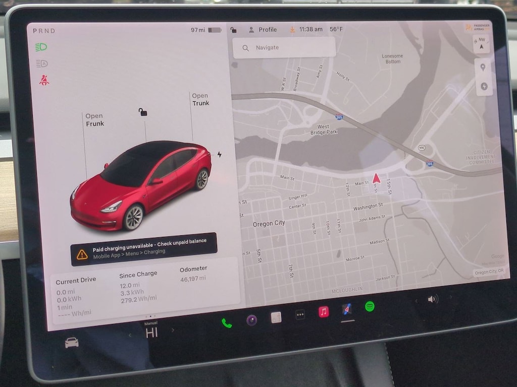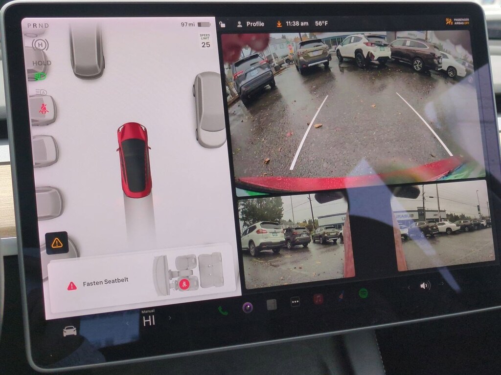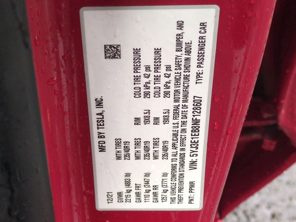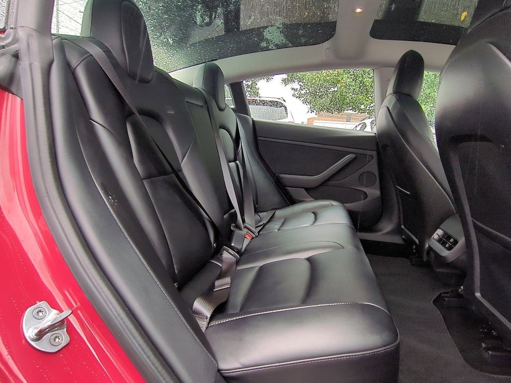 14 Speakers, 4-Wheel Disc Brakes, ABS brakes, Air Conditioning, Alloy wheels, Audio memory, Auto High-beam Headlights, Auto-dimming door mirrors, Auto-dimming Rear-View mirror, Automatic temperature control, Brake assist, Bumpers: body-color, Compass, Delay-off headlights, Driver door bin, Driver vanity mirror, Dual front impact airbags, Dual front side impact airbags, Electronic Stability Control, Exterior Parking Camera Rear, Four wheel independent suspension, Front anti-roll bar, Front Bucket Seats, Front Center Armrest, Front dual zone A/C, Front fog lights, Front reading lights, Fully automatic headlights, Genuine wood dashboard insert, Heated door mirrors, Heated front seats, Heated rear seats, Heated steering wheel, HVAC memory, Illuminated entry, Knee airbag, Lane Departure Warning System, Low tire pressure warning, Memory seat, Navigation System, Occupant sensing airbag, Outside temperature display, Overhead airbag, Passenger door bin, Passenger vanity mirror, Power door mirrors, Power driver seat, Power passenger seat, Power steering, Power windows, Premium Audio System, Premium Heated Front Bucket Seats, Premium Seat Trim, Radio data system, Rain sensing wipers, Rear reading lights, Rear seat center armrest, Rear window defroster, Security system, Speed control, Speed-sensing steering, Split folding rear seat, Steering wheel memory, Steering wheel mounted A/C controls, Steering wheel mounted audio controls, Telescoping steering wheel, Tilt steering wheel, Traction control, Trip computer, Variably intermittent wipers, Wheels: 18 x 8.5 Aero. Red 2022 Tesla Model 3 Long Range AWD 1-Speed Automatic Electric Motor