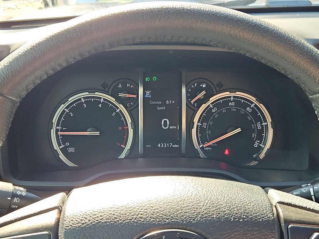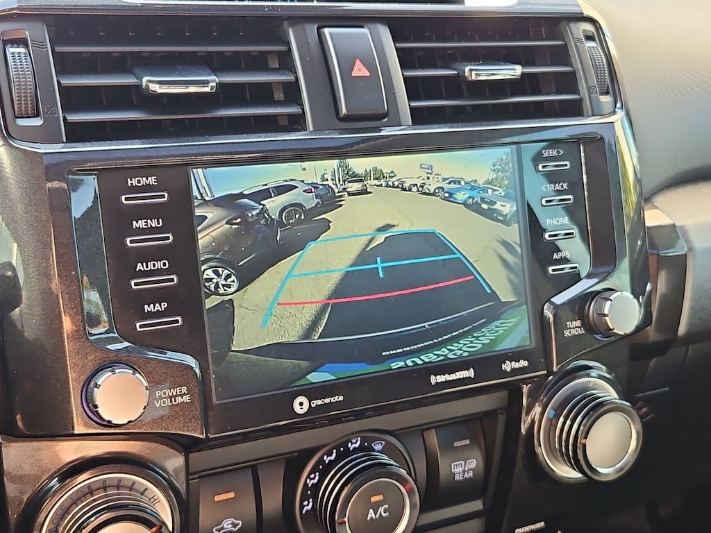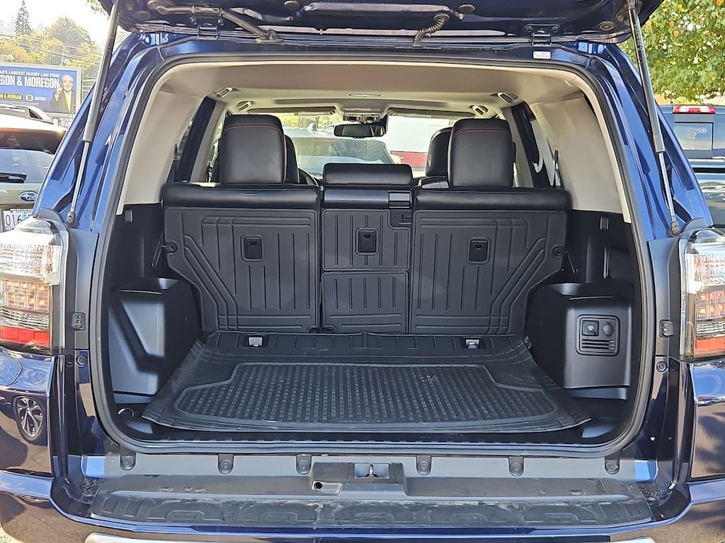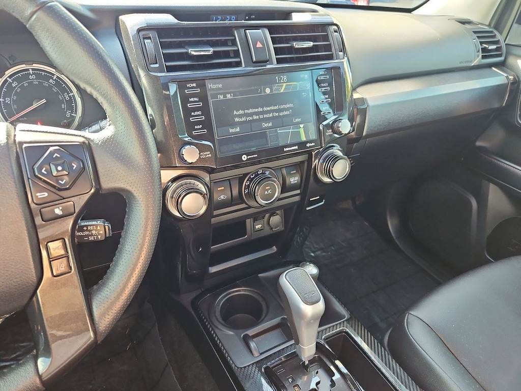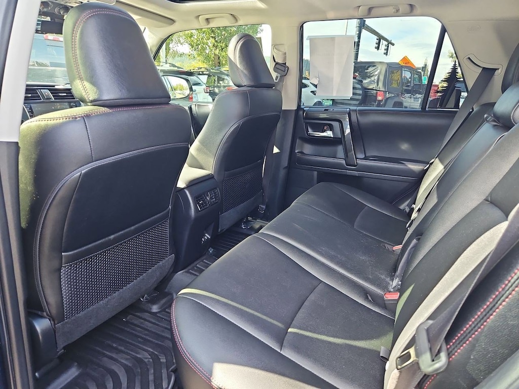 4WD, 3.727 Axle Ratio, 4-Wheel Disc Brakes, 8 Speakers, ABS brakes, Air Conditioning, Alloy wheels, AM/FM radio: SiriusXM, Anti-whiplash front head restraints, Apple CarPlay/Android Auto, Auto High-beam Headlights, Auto-dimming Rear-View mirror, Black Roof Rails, Body Color Heated Mirrors, Brake assist, Bumpers: body-color, Compass, Driver door bin, Driver vanity mirror, Dual front impact airbags, Dual front side impact airbags, Electronic Stability Control, Emergency communication system: Safety Connect with 1-year trial, Exterior Parking Camera Rear, Front anti-roll bar, Front Bucket Seats, Front Center Armrest, Front fog lights, Front reading lights, Front wheel independent suspension, Garage Door Opener, Garage door transmitter: HomeLink, Heated door mirrors, Heated Front Bucket Seats, Heated front seats, Illuminated entry, Knee airbag, Leather Shift Knob, Low tire pressure warning, Occupant sensing airbag, Outside temperature display, Overhead airbag, Overhead console, Panic alarm, Passenger door bin, Passenger vanity mirror, Power door mirrors, Power driver seat, Power passenger seat, Power steering, Power windows, Radio: Premium Audio w/Dynamic Navigation, Rear anti-roll bar, Rear seat center armrest, Rear window defroster, Rear window wiper, Remote keyless entry, Roof rack: rails only, Security system, Softex Synthetic Leather Seat Trim, Speed control, Speed-sensing steering, Split folding rear seat, Spoiler, Steering wheel mounted audio controls, Tachometer, Telescoping steering wheel, Tilt steering wheel, Traction control, Trip computer, Turn signal indicator mirrors, Variably intermittent wipers, Wheels: 17 x 7.5 7-Spoke Unique Off-Road Alloy, 4WD. Blue 2021 Toyota 4Runner TRD Off-Road Premium 4WD 5-Speed Automatic with Overdrive 4.0L V6 SMPI DOHC