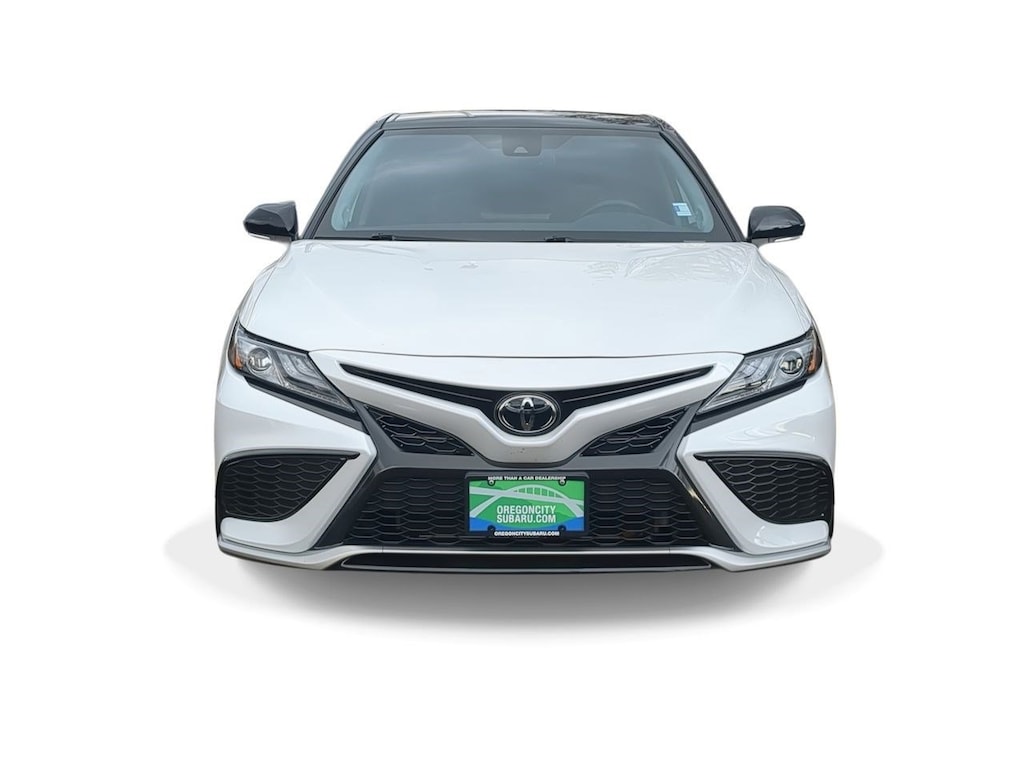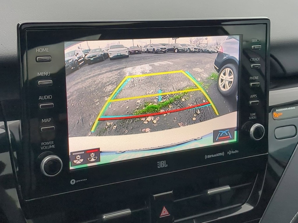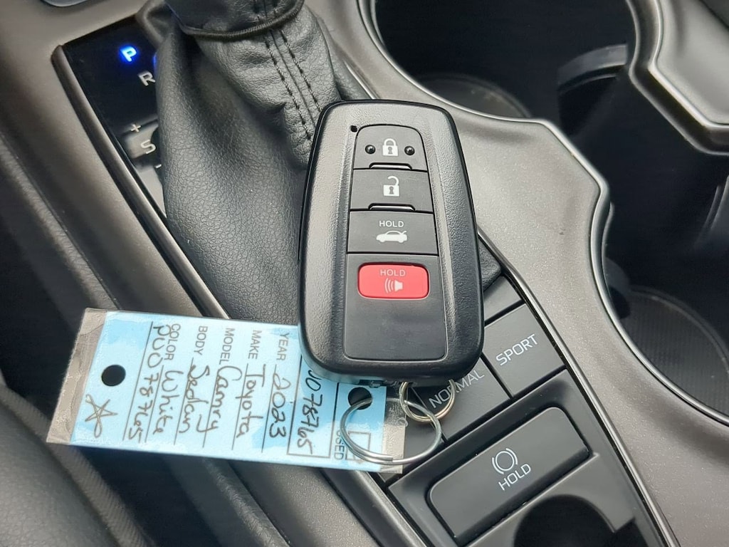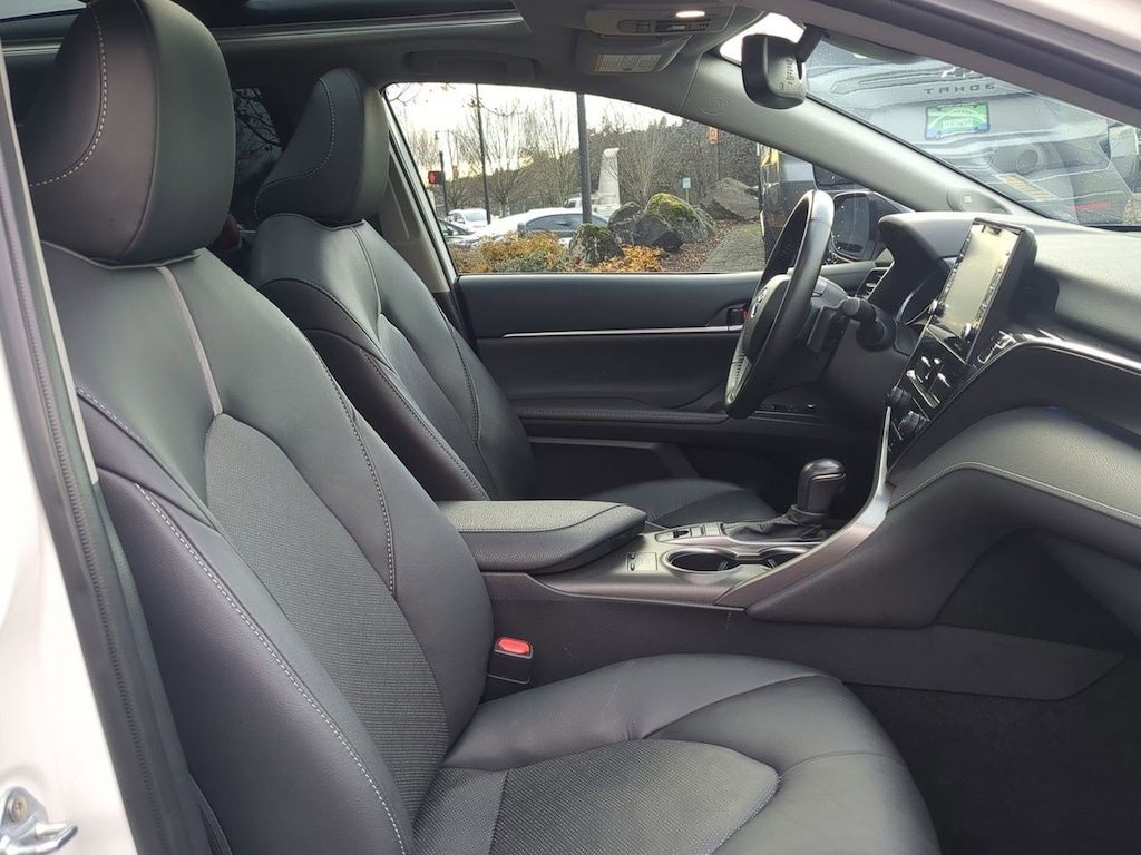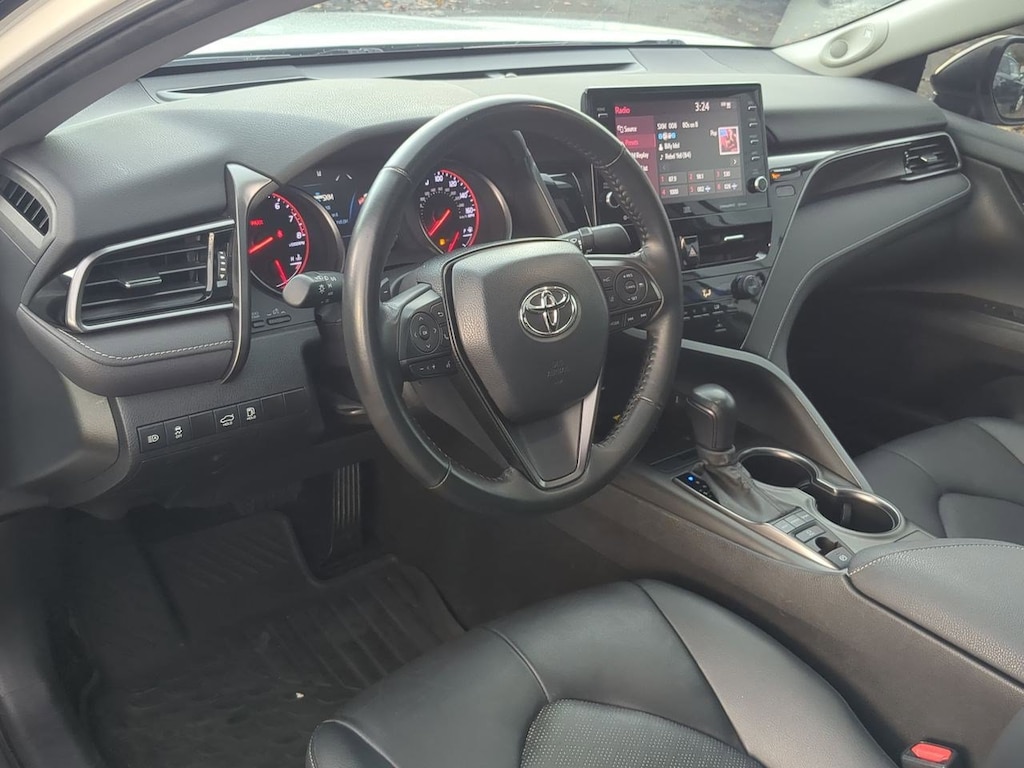 Leather, 4-Wheel Disc Brakes, 9 Speakers, ABS brakes, Air Conditioning, Alloy wheels, AM/FM radio: SiriusXM, Apple CarPlay/Android Auto, Auto High-beam Headlights, Auto-dimming Rear-View mirror, Automatic temperature control, Brake assist, Bumpers: body-color, Compass, Delay-off headlights, Driver door bin, Driver vanity mirror, Dual front impact airbags, Dual front side impact airbags, Electronic Stability Control, Emergency communication system: Safety Connect (1-year trial), Exterior Parking Camera Rear, Four wheel independent suspension, Front anti-roll bar, Front Bucket Seats, Front Center Armrest, Front dual zone A/C, Front reading lights, Fully automatic headlights, Garage door transmitter: HomeLink, Heads-Up Display, Heated door mirrors, Heated front seats, Illuminated entry, Knee airbag, Leather steering wheel, Low tire pressure warning, Multi-Stage Heated Front Bucket Seats, Occupant sensing airbag, Outside temperature display, Overhead airbag, Overhead console, Panic alarm, Passenger door bin, Passenger vanity mirror, Perforated Leather Seat Trim, Power door mirrors, Power driver seat, Power moonroof, Power passenger seat, Power steering, Power windows, Radio data system, Radio: Audio Plus w/JBL, Rear anti-roll bar, Rear reading lights, Rear seat center armrest, Rear side impact airbag, Rear window defroster, Remote keyless entry, Security system, Speed control, Speed-sensing steering, Split folding rear seat, Spoiler, Steering wheel mounted audio controls, Tachometer, Telescoping steering wheel, Tilt steering wheel, Traction control, Trip computer, Turn signal indicator mirrors, Variably intermittent wipers, Wheels: 8.0J x 19 Alloy, Leather. Pearl 2023 Toyota Camry XSE V6 FWD 8-Speed Automatic 3.5L V6 DOHC 24V
