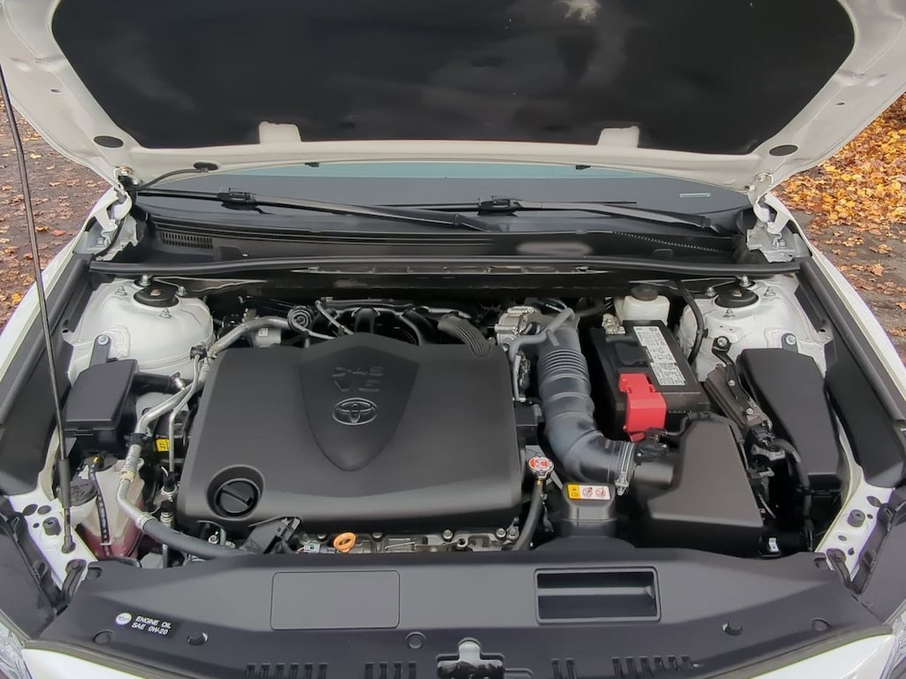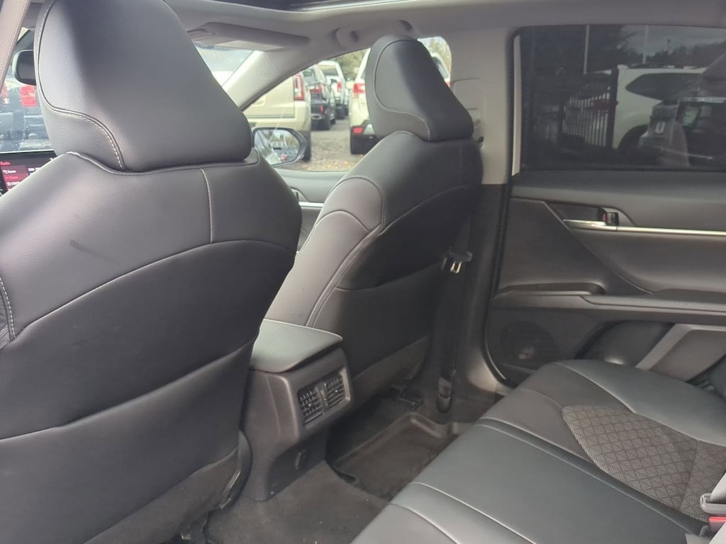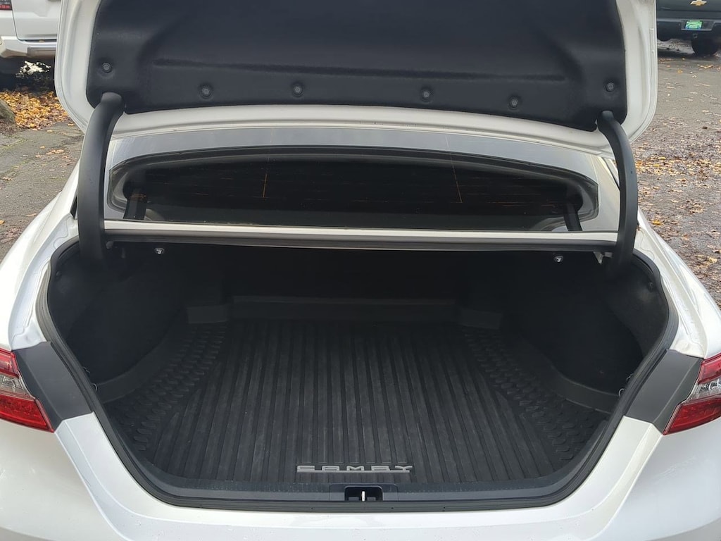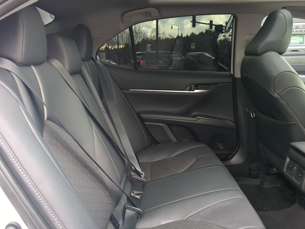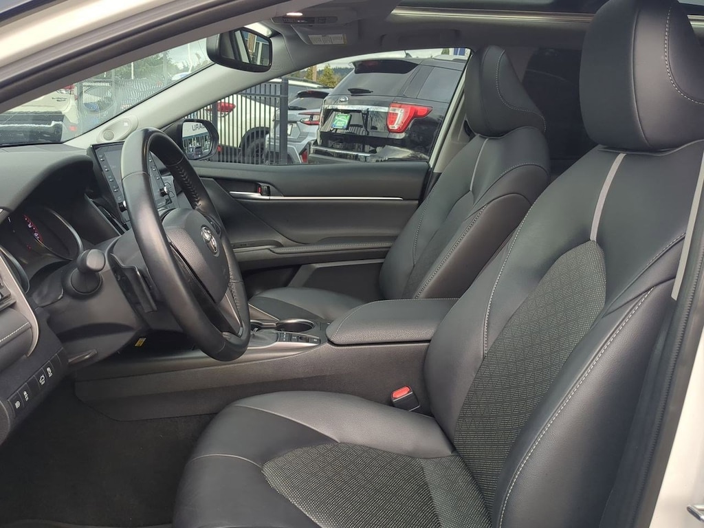 Leather, 4-Wheel Disc Brakes, 9 Speakers, ABS brakes, Air Conditioning, Alloy wheels, AM/FM radio: SiriusXM, Apple CarPlay/Android Auto, Auto High-beam Headlights, Auto-dimming Rear-View mirror, Automatic temperature control, Brake assist, Bumpers: body-color, Compass, Delay-off headlights, Driver door bin, Driver vanity mirror, Dual front impact airbags, Dual front side impact airbags, Electronic Stability Control, Emergency communication system: Safety Connect (1-year trial), Exterior Parking Camera Rear, Four wheel independent suspension, Front anti-roll bar, Front Bucket Seats, Front Center Armrest, Front dual zone A/C, Front reading lights, Fully automatic headlights, Garage door transmitter: HomeLink, Heads-Up Display, Heated door mirrors, Heated front seats, Illuminated entry, Knee airbag, Leather steering wheel, Low tire pressure warning, Multi-Stage Heated Front Bucket Seats, Occupant sensing airbag, Outside temperature display, Overhead airbag, Overhead console, Panic alarm, Passenger door bin, Passenger vanity mirror, Perforated Leather Seat Trim, Power door mirrors, Power driver seat, Power moonroof, Power passenger seat, Power steering, Power windows, Radio data system, Radio: Audio Plus w/JBL, Rear anti-roll bar, Rear reading lights, Rear seat center armrest, Rear side impact airbag, Rear window defroster, Remote keyless entry, Security system, Speed control, Speed-sensing steering, Split folding rear seat, Spoiler, Steering wheel mounted audio controls, Tachometer, Telescoping steering wheel, Tilt steering wheel, Traction control, Trip computer, Turn signal indicator mirrors, Variably intermittent wipers, Wheels: 8.0J x 19 Alloy, Leather. Pearl 2023 Toyota Camry XSE V6 FWD 8-Speed Automatic 3.5L V6 DOHC 24V