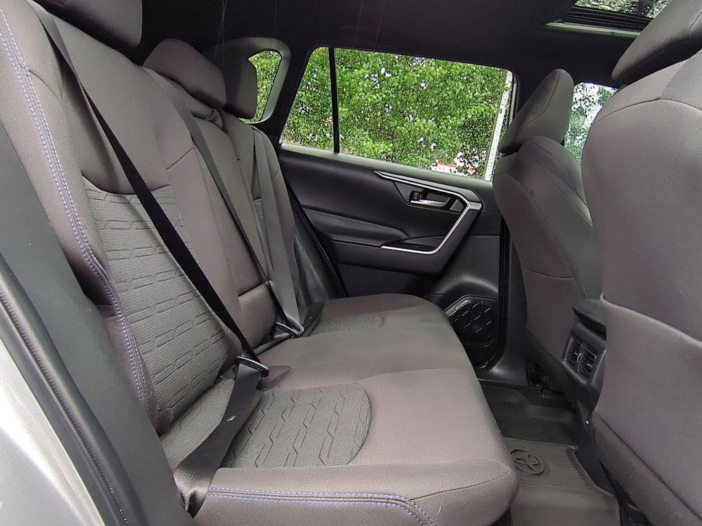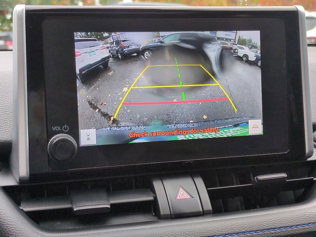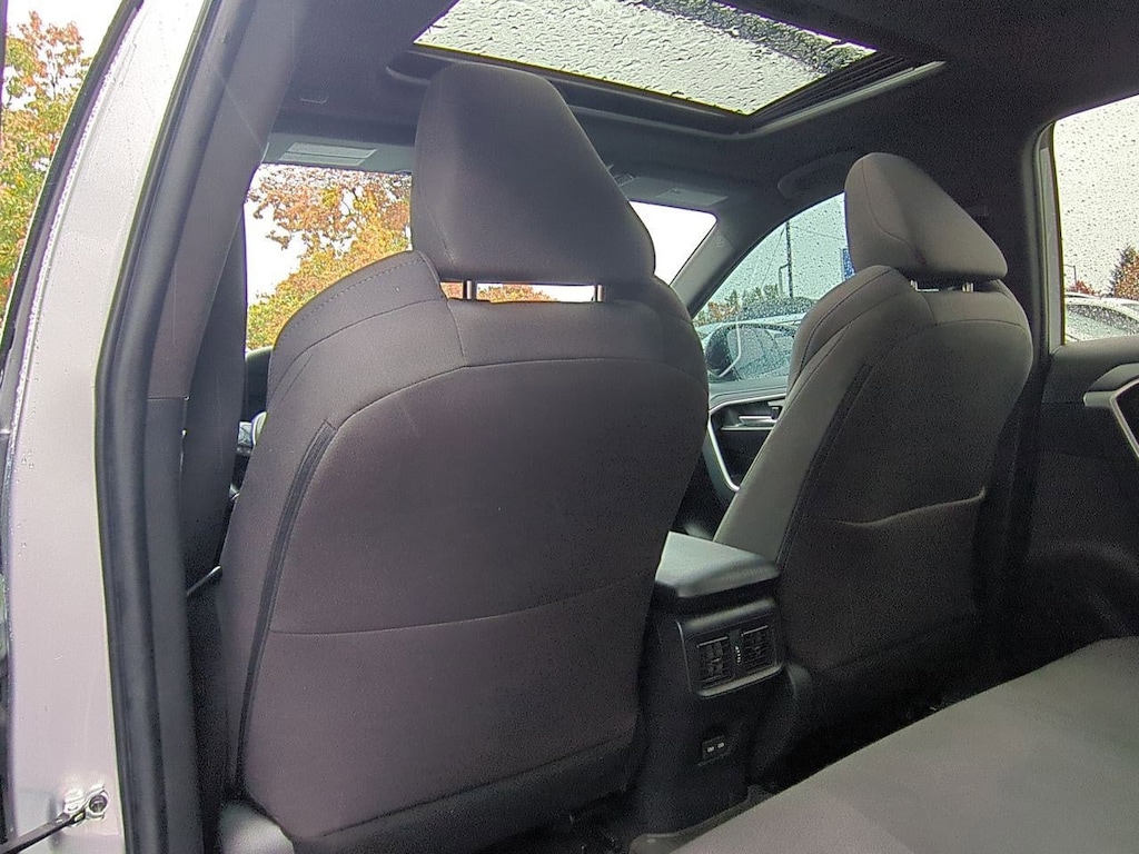 2.5L 4-Cylinder, 4-Wheel Disc Brakes, 6 Speakers, ABS brakes, Air Conditioning, Alloy wheels, AM/FM radio: SiriusXM, Auto High-beam Headlights, Automatic temperature control, Axle Ratio: TBD, Brake assist, Bumpers: body-color, Delay-off headlights, Driver door bin, Driver vanity mirror, Dual front impact airbags, Dual front side impact airbags, Electronic Stability Control, Emergency communication system: Safety Connect (1-year trial), Exterior Parking Camera Rear, Fabric Seat Trim, Four wheel independent suspension, Front anti-roll bar, Front Bucket Seats, Front Center Armrest, Front dual zone A/C, Front reading lights, Front Sport Seats, Fully automatic headlights, Heated door mirrors, Illuminated entry, Knee airbag, Lane Departure Warning System, Leather Shift Knob, Low tire pressure warning, Occupant sensing airbag, Outside temperature display, Overhead airbag, Overhead console, Panic alarm, Passenger door bin, Passenger vanity mirror, Power door mirrors, Power driver seat, Power Liftgate, Power steering, Power windows, Radio data system, Radio: AM/FM/XM Audio System, Rear anti-roll bar, Rear seat center armrest, Rear window defroster, Rear window wiper, Remote keyless entry, Speed control, Speed-sensing steering, Split folding rear seat, Spoiler, Steering wheel mounted audio controls, Telescoping steering wheel, Tilt steering wheel, Traction control, Trip computer, Turn signal indicator mirrors, Variably intermittent wipers, Wheels: 18 x 7.0J Silver Aluminum Alloy, 2.5L 4-Cylinder. 2023 Toyota RAV4 Hybrid SE AWD eCVT 2.5L 4-Cylinder