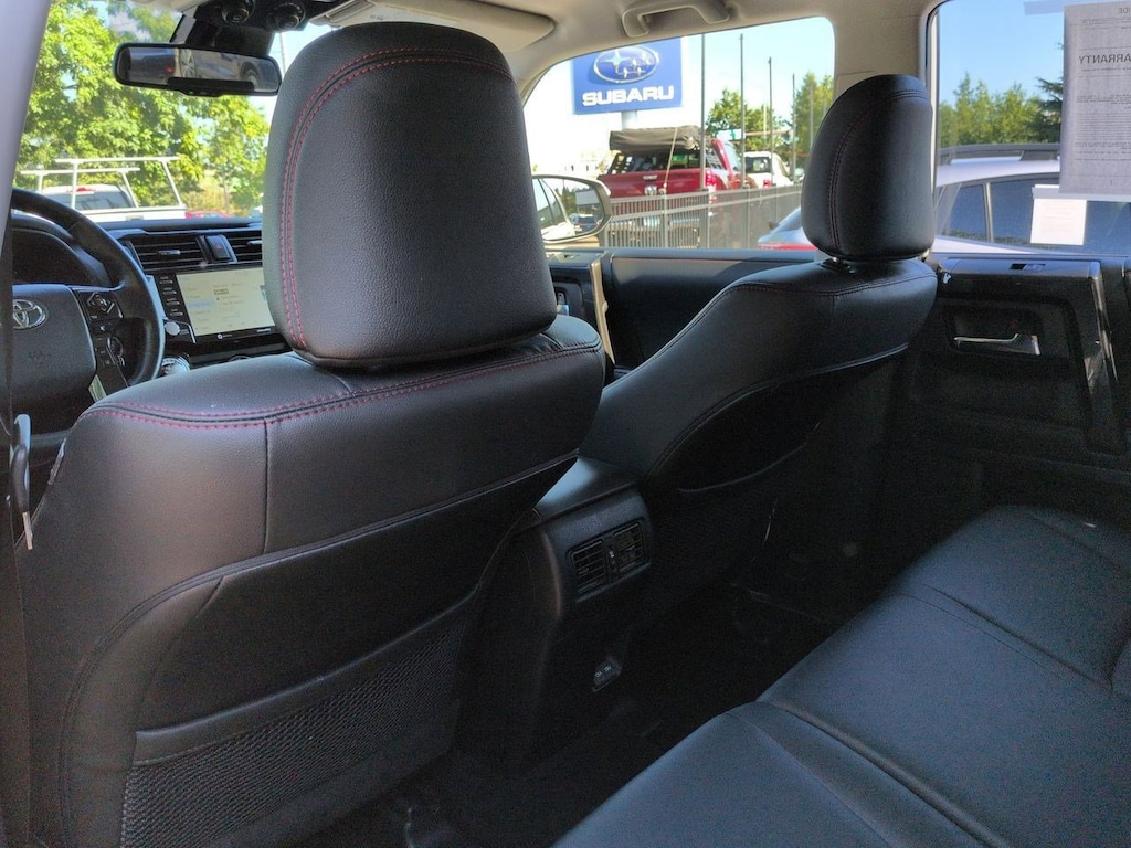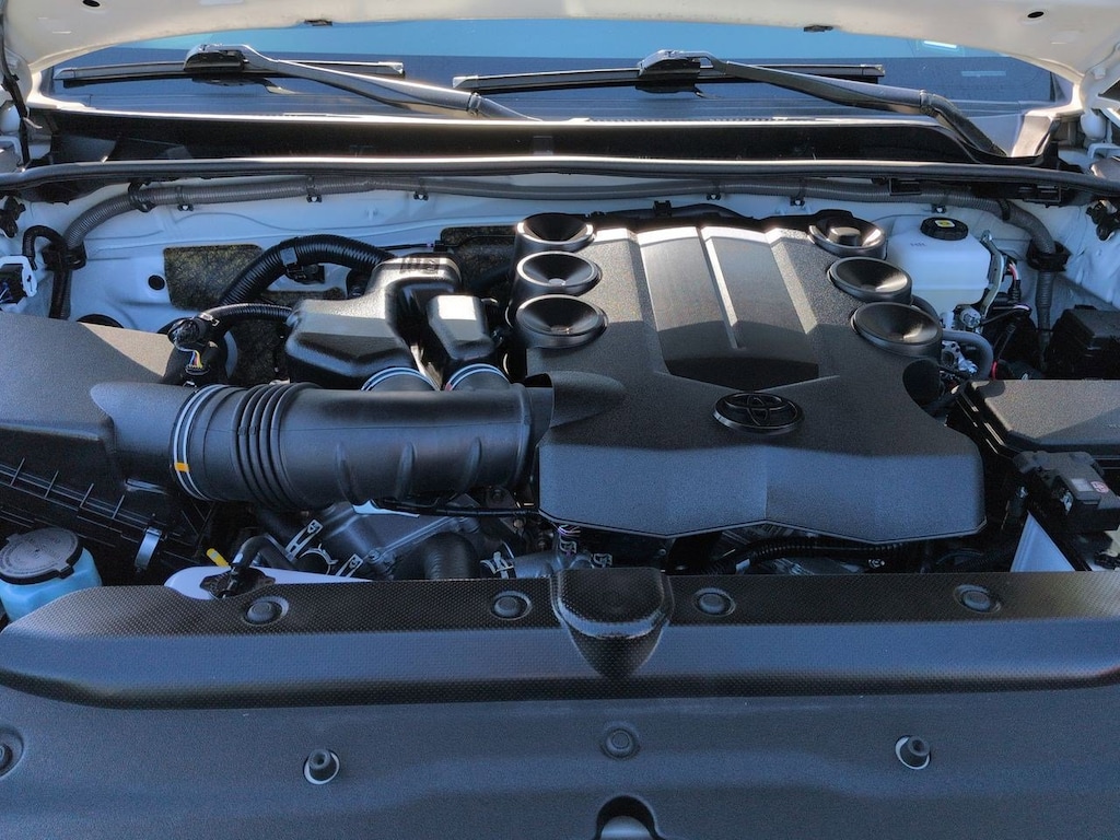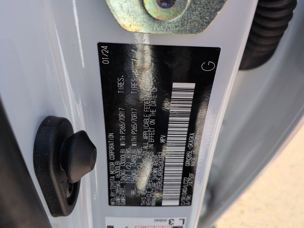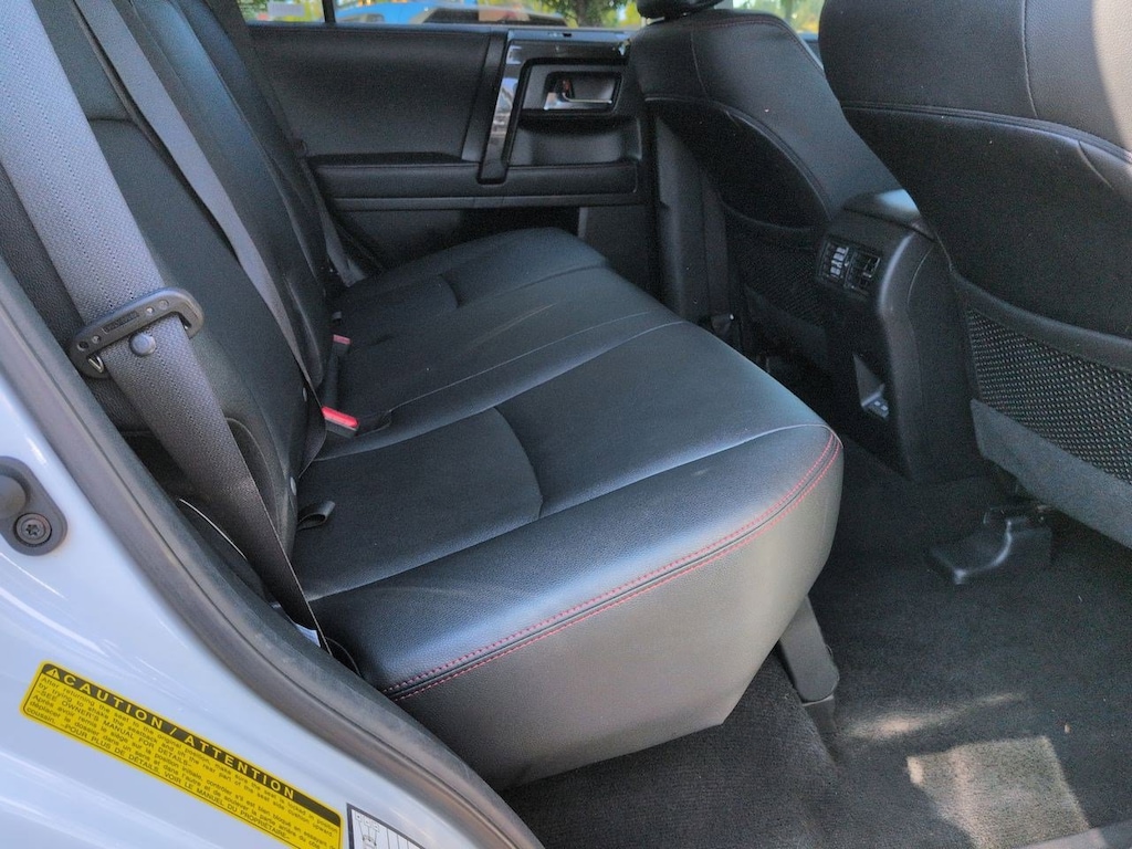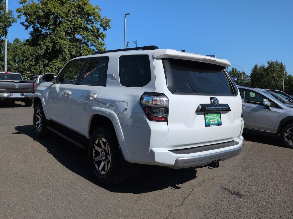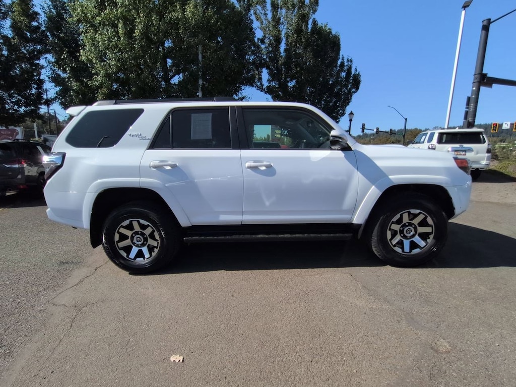4WD, 3.727 Axle Ratio, 4-Wheel Disc Brakes, 8 Speakers, ABS brakes, Air Conditioning, Alloy wheels, AM/FM radio: SiriusXM, Anti-whiplash front head restraints, Apple CarPlay/Android Auto, Auto High-beam Headlights, Auto-dimming Rear-View mirror, Black Roof Rails, Brake assist, Bumpers: body-color, Compass, Driver door bin, Driver vanity mirror, Dual front impact airbags, Dual front side impact airbags, Electronic Stability Control, Emergency communication system: Safety Connect (1-year trial), Exterior Parking Camera Rear, Front anti-roll bar, Front Bucket Seats, Front Center Armrest, Front fog lights, Front reading lights, Front wheel independent suspension, Garage Door Opener, Garage door transmitter: HomeLink, Heated door mirrors, Heated Front Bucket Seats, Heated front seats, Heated Outside Rear-View Mirrors, Heated steering wheel, Illuminated entry, Knee airbag, Leather Shift Knob, Low tire pressure warning, Navigation System, Occupant sensing airbag, Outside temperature display, Overhead airbag, Overhead console, Panic alarm, Passenger door bin, Passenger vanity mirror, Power door mirrors, Power driver seat, Power passenger seat, Power steering, Power windows, Radio: Premium Audio, Rear anti-roll bar, Rear seat center armrest, Rear window defroster, Rear window wiper, Remote keyless entry, Security system, SofTex Seat Trim, Speed control, Speed-sensing steering, Split folding rear seat, Spoiler, Steering wheel mounted audio controls, Tachometer, Telescoping steering wheel, Tilt steering wheel, Traction control, Trip computer, Turn signal indicator mirrors, Variably intermittent wipers, Wheels: 17 Unique 7-Spoke Off-Road Alloy, 4WD. White 2024 Toyota 4Runner TRD Off-Road Premium 4WD 5-Speed with ECT 4.0L V6 DOHC 24V