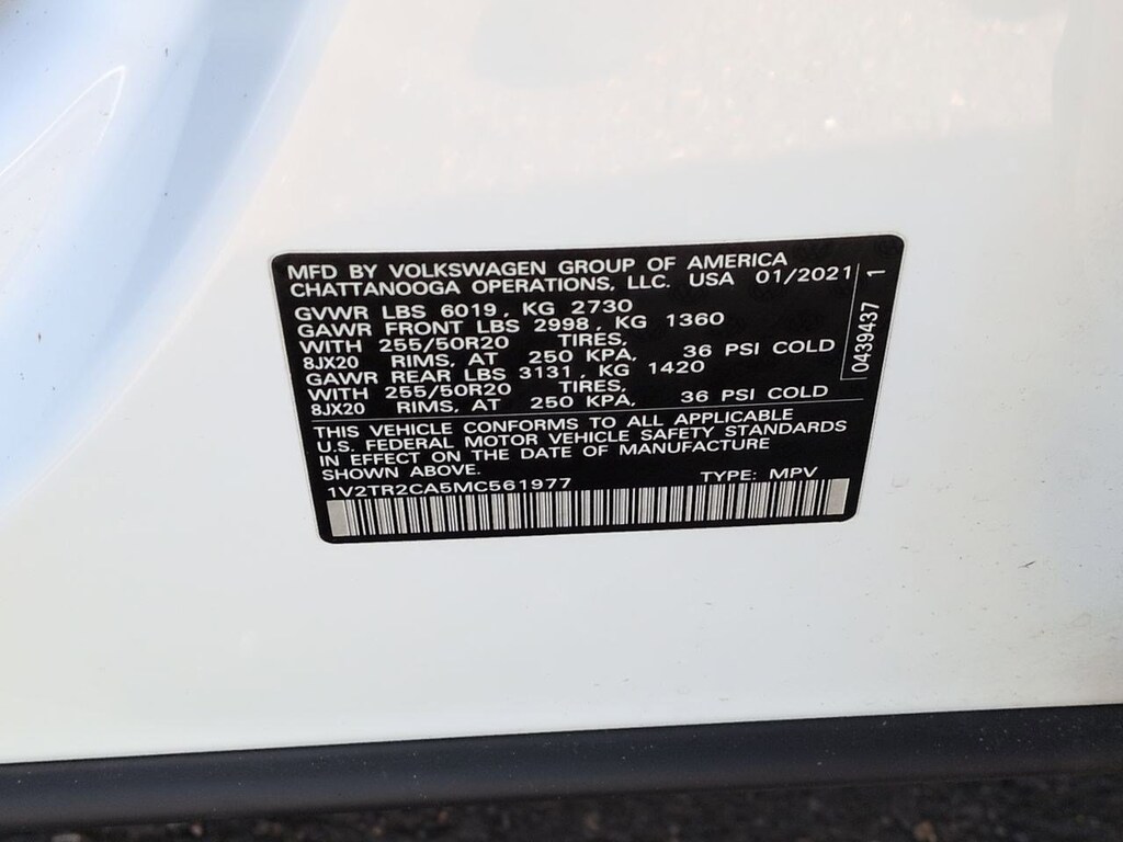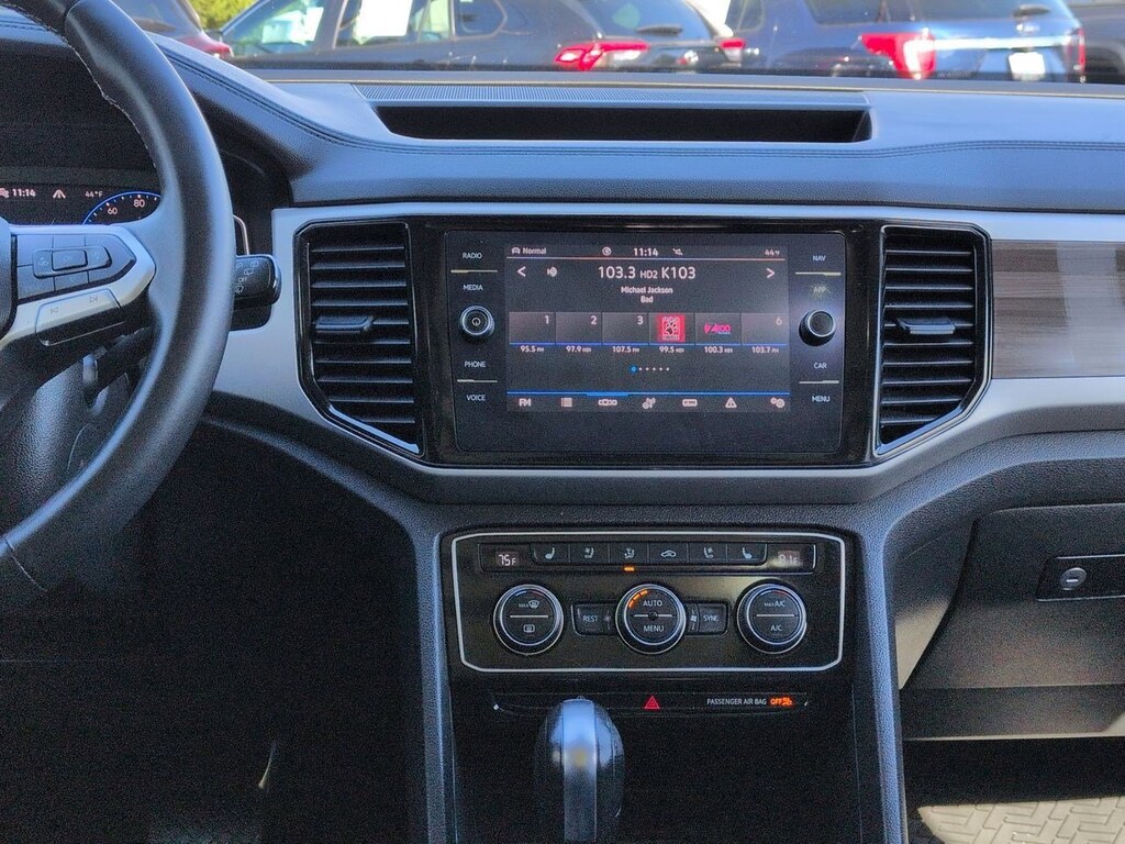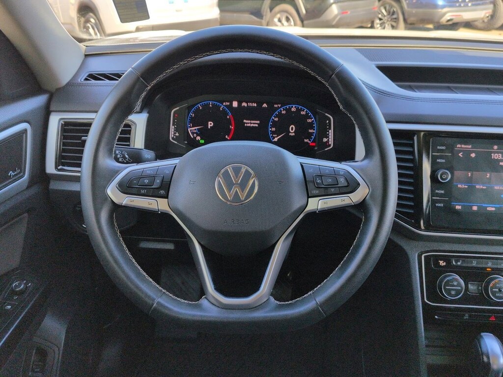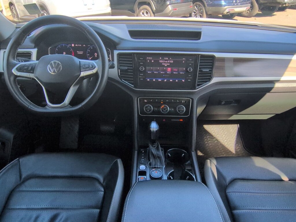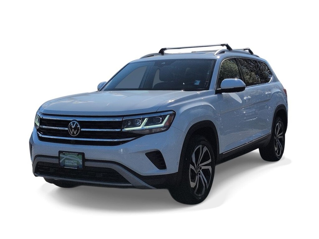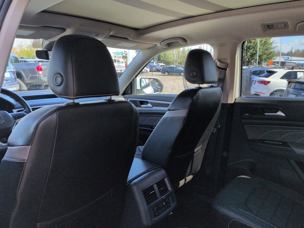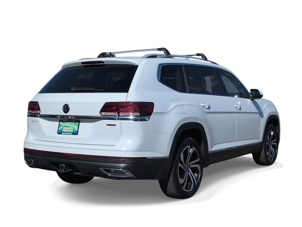 12 Speakers, 2nd-Row Dual Captains Chairs, 3.60 Axle Ratio, 3rd row seats: split-bench, 4-Wheel Disc Brakes, ABS brakes, Air Conditioning, Alloy wheels, Auto High-beam Headlights, Auto-dimming Rear-View mirror, Automatic temperature control, Brake assist, Bumpers: body-color, Compass, Delay-off headlights, Driver door bin, Driver vanity mirror, Dual front impact airbags, Dual front side impact airbags, Electronic Stability Control, Emergency communication system: VW Car-Net services (capabilities require enrollment or subscription), First Aid Kit, Four wheel independent suspension, Front anti-roll bar, Front Bucket Seats, Front Center Armrest, Front dual zone A/C, Front fog lights, Front reading lights, Fully automatic headlights, Heated door mirrors, Heated front seats, Heated rear seats, Heated steering wheel, Heavy Duty Trunk Liner w/VW CarGo Blocks, Htd/Actively Ventilated Comfort Front Sport Seats, Illuminated entry, Leather Shift Knob, Low tire pressure warning, Memory seat, Navigation System, Occupant sensing airbag, Outside temperature display, Overhead airbag, Overhead console, Panic alarm, Passenger door bin, Passenger vanity mirror, Perforated Vienna Leather Seating Surfaces, Power door mirrors, Power driver seat, Power Liftgate, Power moonroof, Power passenger seat, Power steering, Power windows, Privacy Cover, Radio data system, Rain sensing wipers, Rear air conditioning, Rear anti-roll bar, Rear audio controls, Rear reading lights, Rear seat center armrest, Rear window defroster, Rear window wiper, Remote keyless entry, Roadside Assistance Kit, Roof rack: rails only, Rubber Mats Kit - Captains Chairs, Security system, Speed control, Speed-sensing steering, Split folding rear seat, Spoiler, Standard Suspension, Steering wheel mounted audio controls, Tachometer, Telescoping steering wheel, Tilt steering wheel, Traction control, Trip computer, Turn signal indicator mirrors, Variably intermittent wipers, Ventilated front seats, Volkswagen Logo Puddle Lights, Wheels: 20 5-Spoke 2-Tone Machined Alloy. Pure White 2021 Volkswagen Atlas SEL Premium AWD 8-Speed Automatic with Tiptronic 3.6L V6